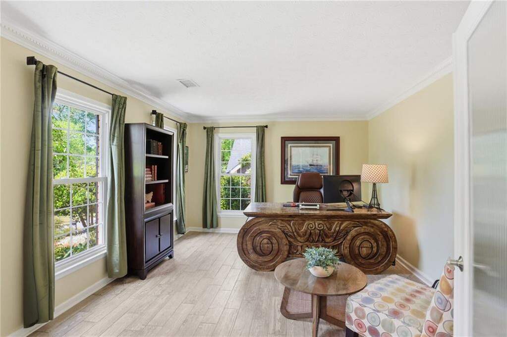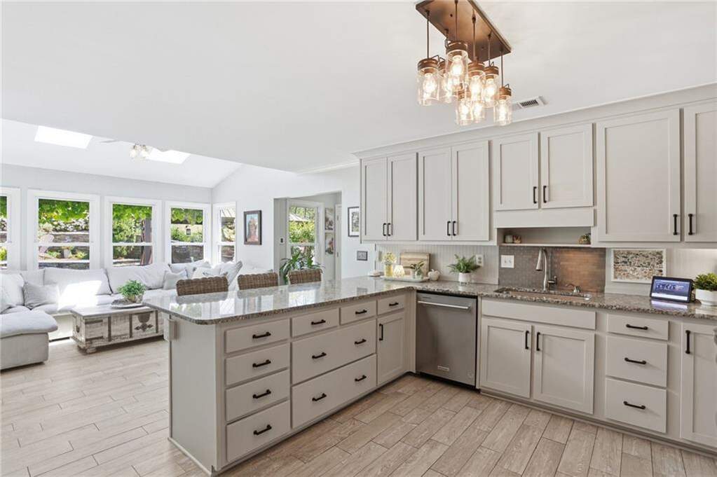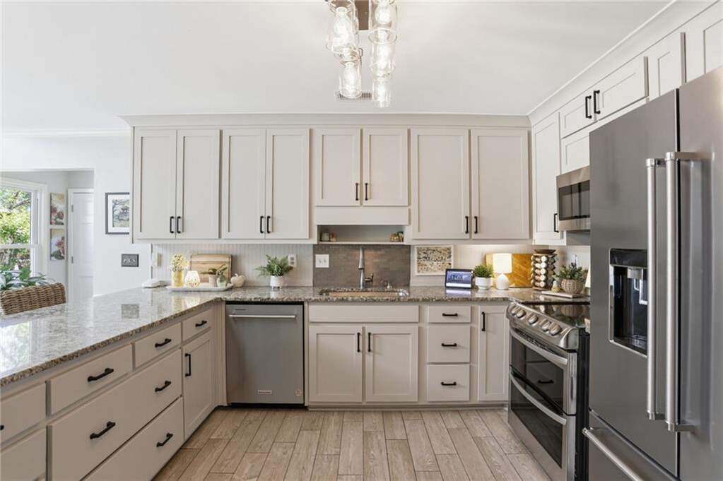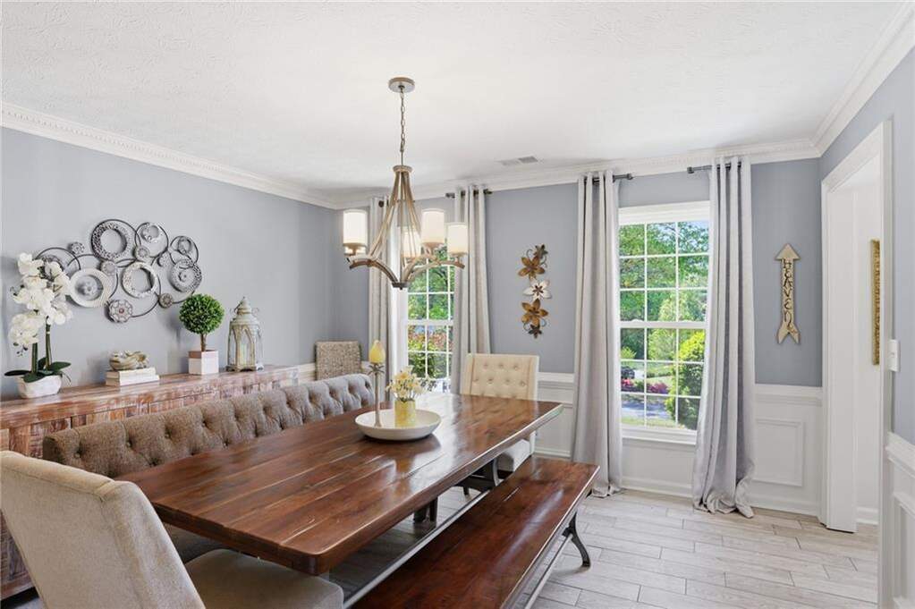 Welcome to this beautifully updated home with a resort-style backyard with heated saltwater pool in coveted Princeton Mill. Blending timeless charm with thoughtful upgrades, this home is designed for both everyday living and entertaining. Inside, you'll find a light-filled layout featuring a bright, updated kitchen with granite countertops, a vaulted skylit breakfast room, and walls of windows. The warm, fully paneled family room with fireplace creates an inviting space to gather. The home offers four spacious bedrooms, including a generous primary suite with tray ceiling and a sun-filled, spa-like bath with vaulted ceilings and a garden tub. A large bonus room or optional fifth bedroom provides flexibility, and a private rear staircase adds convenience. Step outside to a truly exceptional, park-like backyard with a stunning pool and spa-your own private oasis. The lush, fenced yard also features a gardener's dream: strawberry patch, blueberries, fig trees, muscadine and grape vines, plus peach and nectarine trees. Extensive upgrades include saltwater pool conversion, new pool heater and equipment, AquaLink system, new windows throughout, updated electrical panel, air purification system, added attic insulation, new flooring, kitchen cabinet refacing, remodeled bathroom with Kohler shower, new front/garage/back doors, French office doors, Sonos outdoor sound, professional landscaping with drainage and hardscaping, new driveway and walkway, irrigation system, outdoor lighting, and gazebo. Located in a top-rated school district including Wheeler High School, home to a renowned STEM magnet program offering advanced coursework and a Center for Advanced Studies, and within an active swim/tennis community with updated amenities, this move-in ready home offers an incredible East Cobb lifestyle.