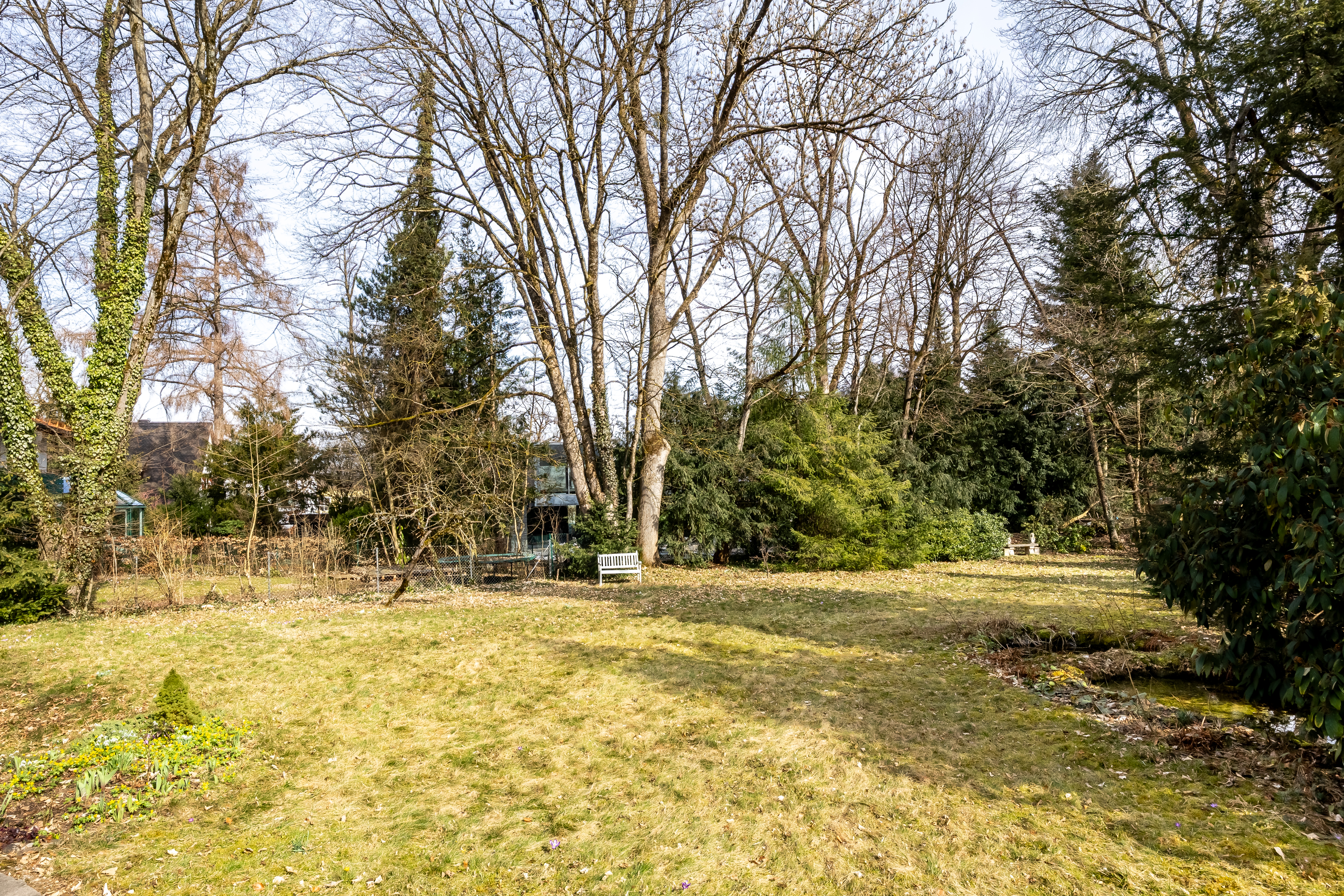 Adjacent to the south of Gräfelfing and only a few minutes away from the edge of a forest in an extensive landscape conservation area, this property is situated in an exceptionally quiet location close to nature. The mature surroundings are characterized by stylish detached houses, modern architecture and lovingly landscaped gardens, underlining the upmarket character of this residential address. There is currently a vacant old building on the plot, which is not worth preserving and opens up space for a contemporary new development.The spacious garden impresses with its expansiveness and mature, green character. Lawns, an idyllic garden pond and various terraces and seating areas offer the perfect retreat at any time of day. Whether sunny or shady under mature trees such as an imposing beech, a maple or other mature trees, an exceptional quality of life with plenty of privacy is on offer here. A pool can also be harmoniously integrated. The natural planting not only creates a pleasant atmosphere, but also a noticeably good microclimate. Quiet ambient noise and the proximity to nature give the property a special quality of living.As part of a new development, a spacious detached house with a living space of around 333 m² can be built on the approx. 1,150 m² plot.333 m² can be realized. It offers ideal conditions for a modern family home that combines comfort, spaciousness and privacy.