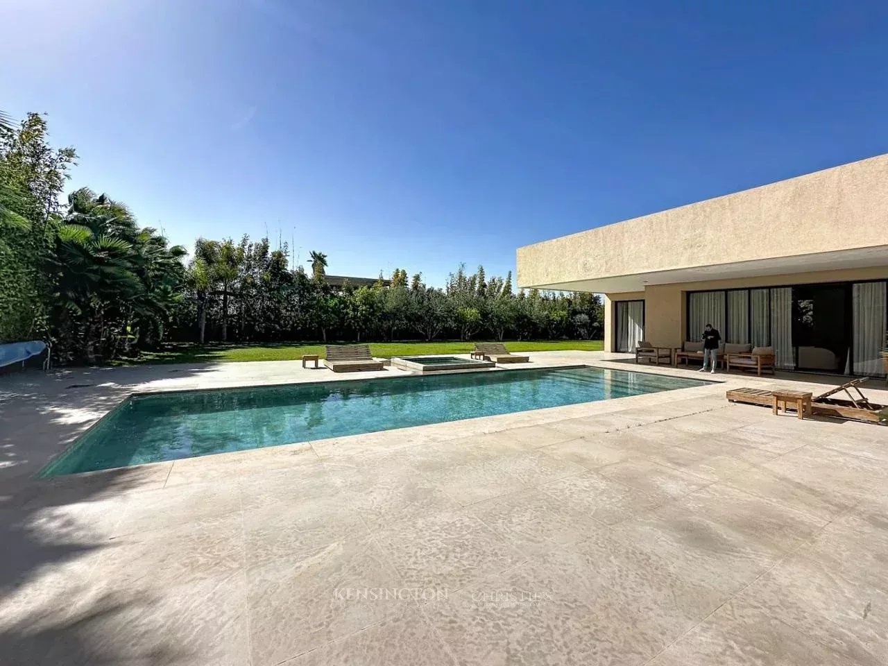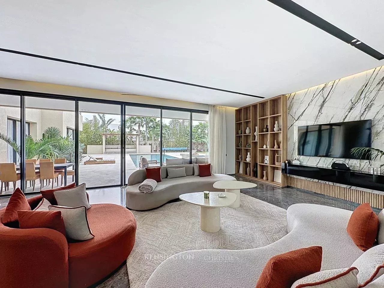 Built on a generous 2,200 m² lot, the villa features approximately 400 m² of living space, perfectly laid out to offer spacious rooms and a seamless flow between the living areas and the outdoors. The large windows allow you to fully enjoy the natural light and unobstructed views of the Atlas Mountains.