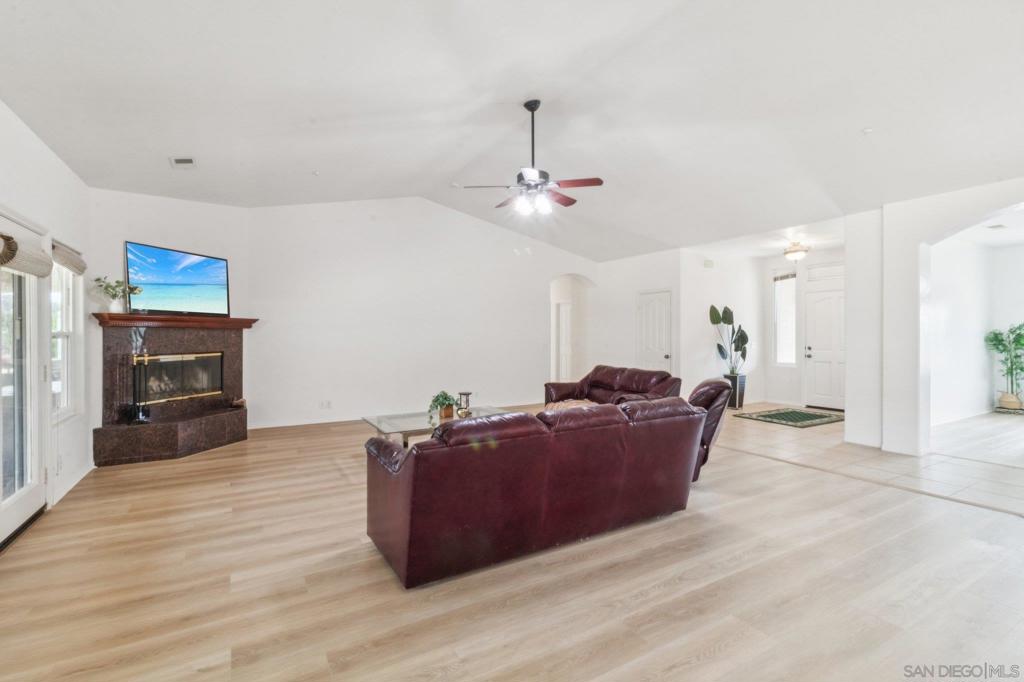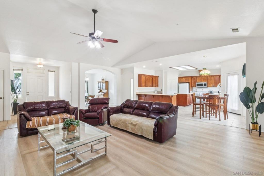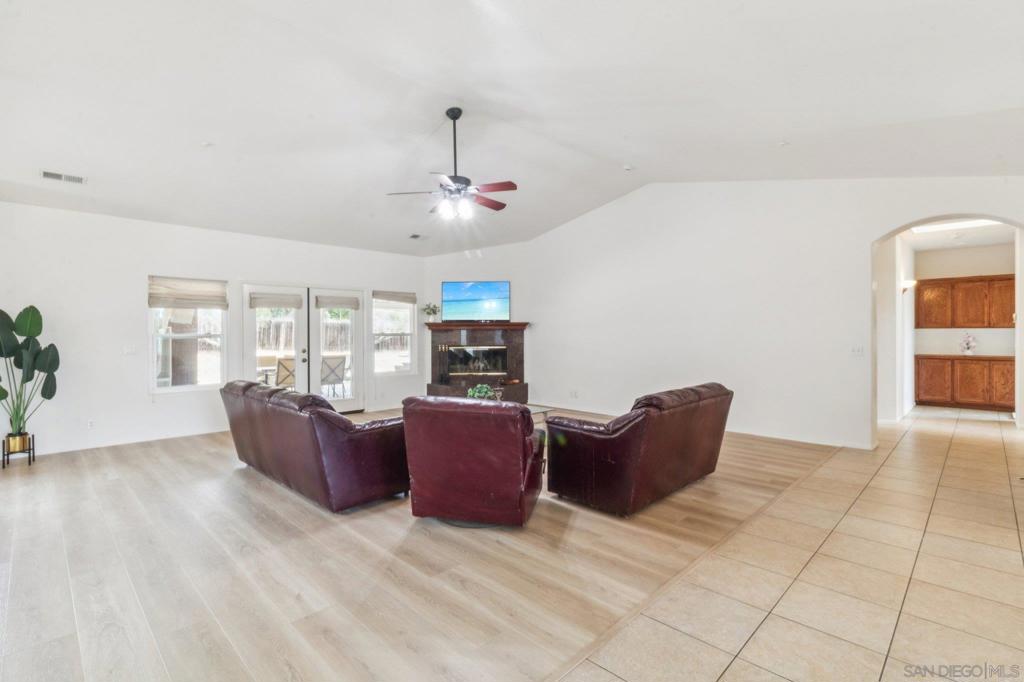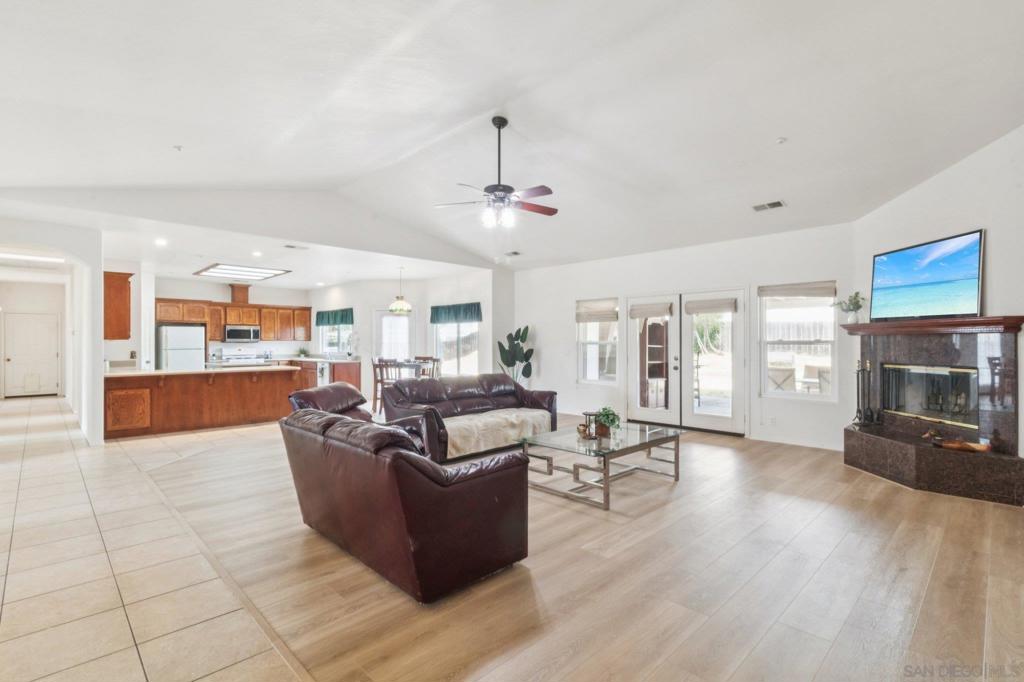 Single-level 4 spaceous bedrooms plus a large office/game toom 3 bath, 3,008 sq ft home on 2.25 acres of flat, usable land with peaceful mountain views. Quality construction throughout with wide doors, bullnose corners, curved archways, 9 ft ceilings, skylights, recessed lighting, and four ceiling fans. Spacious island kitchen with Corian counters top, walk-in pantry, and breakfast bar. Large great room with fireplace and French doors leading to the back patio. Primary suite includes French doors, walk-in closet, cultured marble tub and sinks, and a spacious bedroom layout. Additional bedrooms are generously sized. Wide 4-ft hallway with sconces, dedicated office, and full laundry room. Finished, insulated 3-car garage with storage shelves. Property offers room for horses, chickens, RV parking, and additional uses, subject to local guidelines. Quiet, serene setting with open, usable land. Enjoy your everyday beautiful setting inside, and out side mountain views. Single-level home with wide doors and spacious bedrooms on 2.25 acres of flat, usable land. Quality construction with 9 ft ceilings, skylights, curved archways, and a large island kitchen. Finished 3-car garage with storage and room for RV parking. Property offers open land suitable for horses, animals, gardens, or future improvements, buyer to verify all uses with County of San Diego. Septic, and all systems maintained by long-term owners. Quiet, private setting with mountain views and easy access to town. All information deemed reliable but not guaranteed; buyer and buyer's agent to verify all before COE.