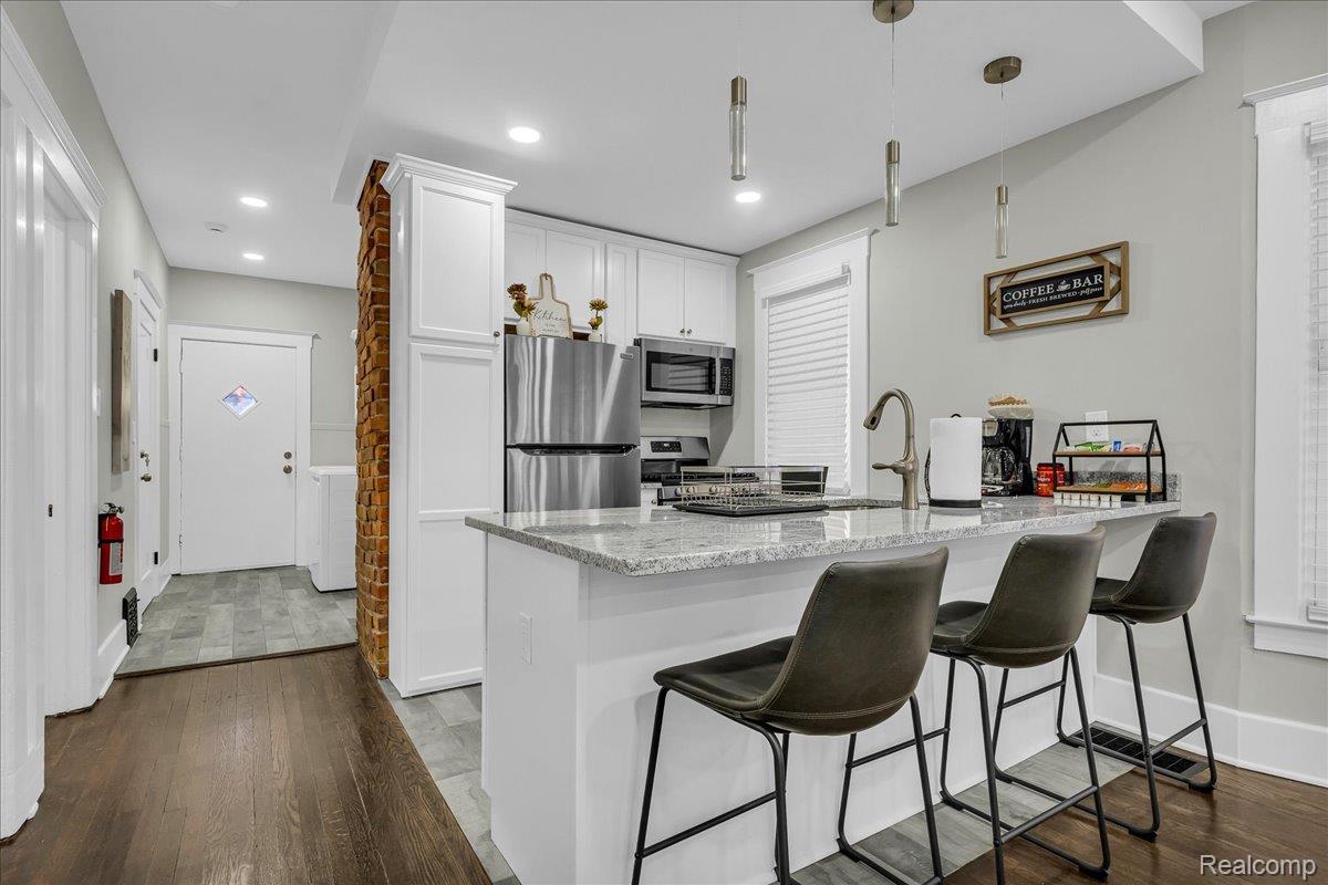 MOVE RIGHT IN! THIS STUNNING LOWER FLAT IS READY! This beautiful, fully renovated and fully furnished lower duplex features modern living with the elegance of historic charm and has 1200sf and features 3 bedrooms 1 bath, with a modern open concept kitchen, in-unit laundry, radiant with natural light, and original trim and hardwood floors. A great location with an easy walk to neighborhood restaurants and entertainment, and to the Wayne State Campus and Midtown. Excellent expressway access for getting around the Metro region. The best of urban living in the Woodbridge Neighborhood of Detroit! Come see this amazing duplex!