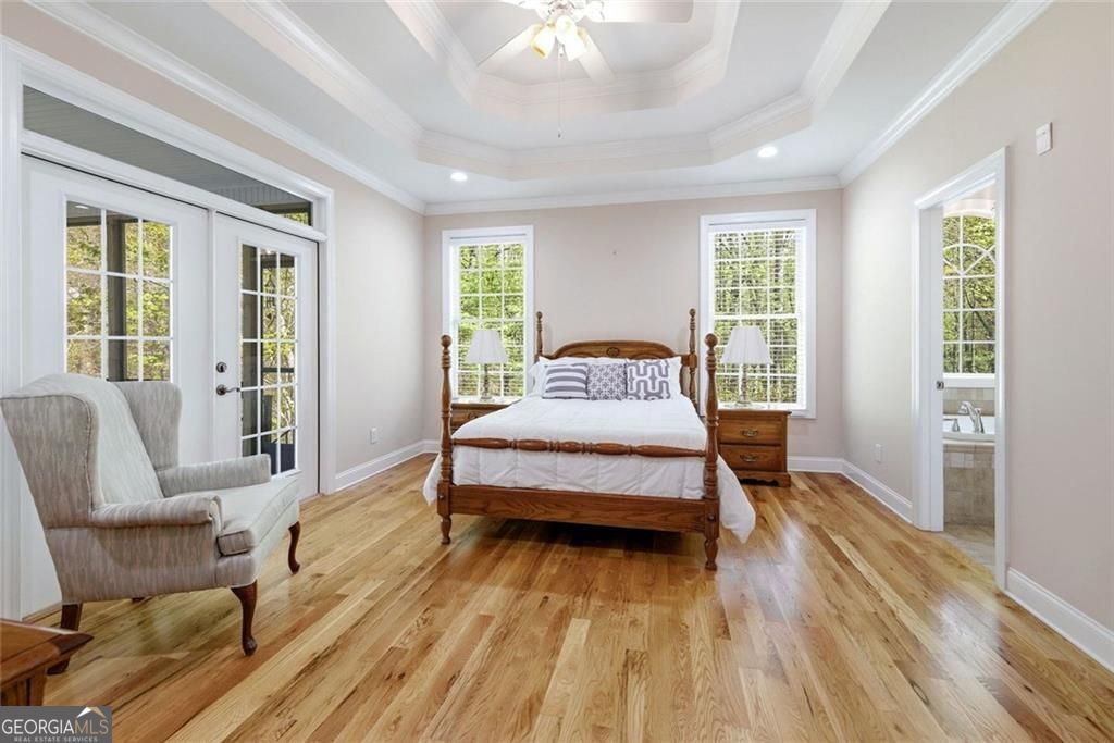 Creekfront property in the heart of North Georgia, this stunning mountain home sits on 3.78 private acres, offering the rare combination of water frontage, usable land, and peaceful privacy. This North Georgia mountain home is RV-friendly with space for a full-size RV just steps from the home-an uncommon and highly desirable feature. Tucked away on a wooded lot, this beautifully crafted 4-sided brick home features a spacious split bedroom floor plan with an open concept layout, additionally, coffered ceiling in the great room, formal dining area with tray ceilings, and a large covered deck that is both screened and open-air-perfect for enjoying the sights and sounds of Turner Branch, a year-round creek that runs along the entire back of the property and Turners Creek runs through the property on the left The kitchen offers cherry wood cabinetry, granite countertops, and premium appliances including double ovens, warming drawer, electric range with vent hood, dishwasher, disposal, and trash compactor. There is ample space for both a full-size dining table and additional seating at the peninsula. The primary suite features tray ceilings, private access to the deck, and a spacious ensuite with double vanities, soaking tub, separate shower, and walk-in closet. The unfinished basement (over 2,100 sq ft) includes a finished full bath, fireplace, and two separate entrances-one with direct access to parking-making it ideal for future expansion, multi-generational living, or a private guest suite. With 12-foot ceilings, the space is perfectly suited for a game room, home gym, or even a golf simulator. Additional highlights include a brand new roof, whole-home air purification system, workshop area, abundant storage, and a private path leading to the creek. Located just minutes from downtown Cleveland, local wineries, and U.S. National Forest access, this property offers the perfect balance of privacy, functionality, and North Georgia mountain lifestyle. Opportunities like this are rare.