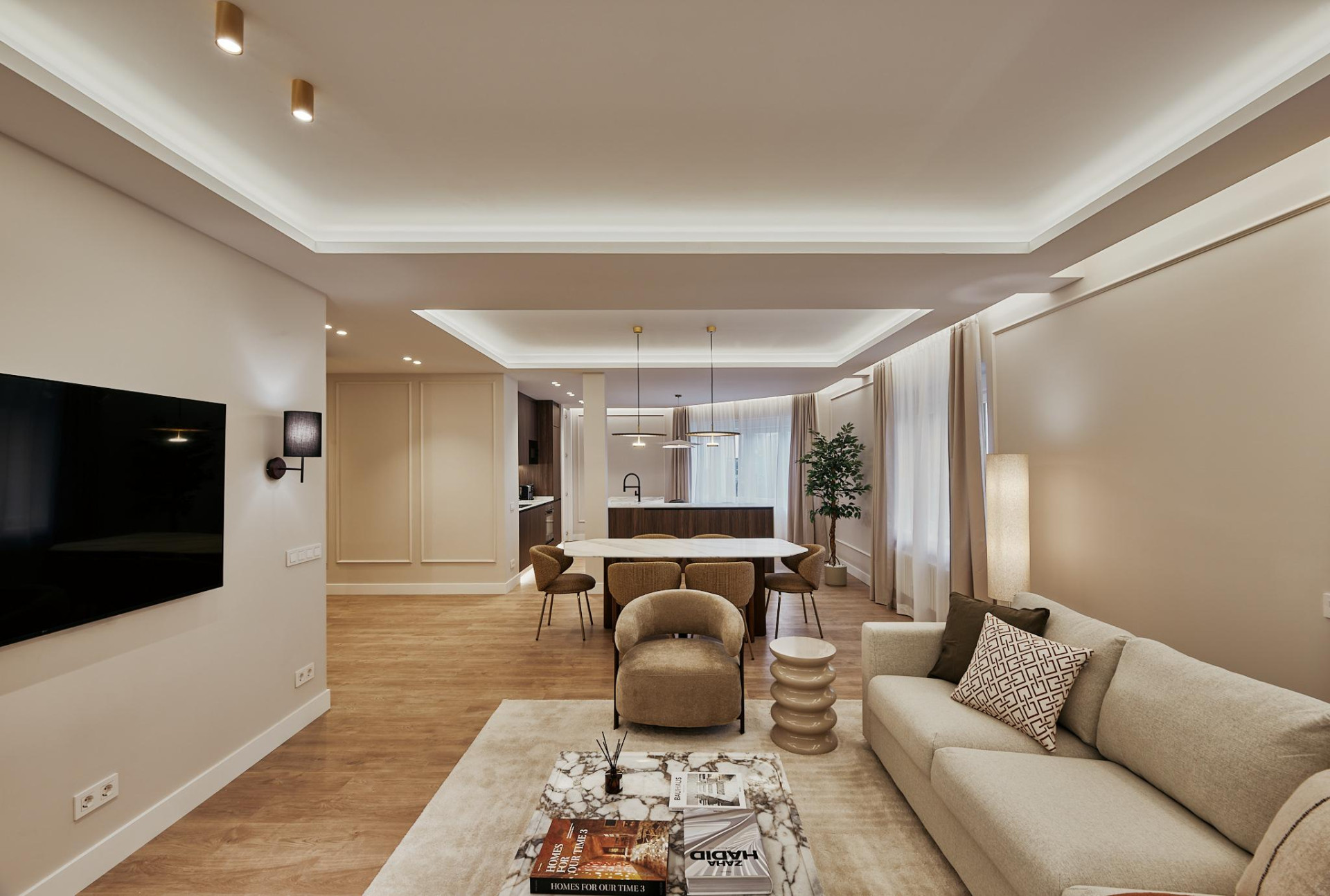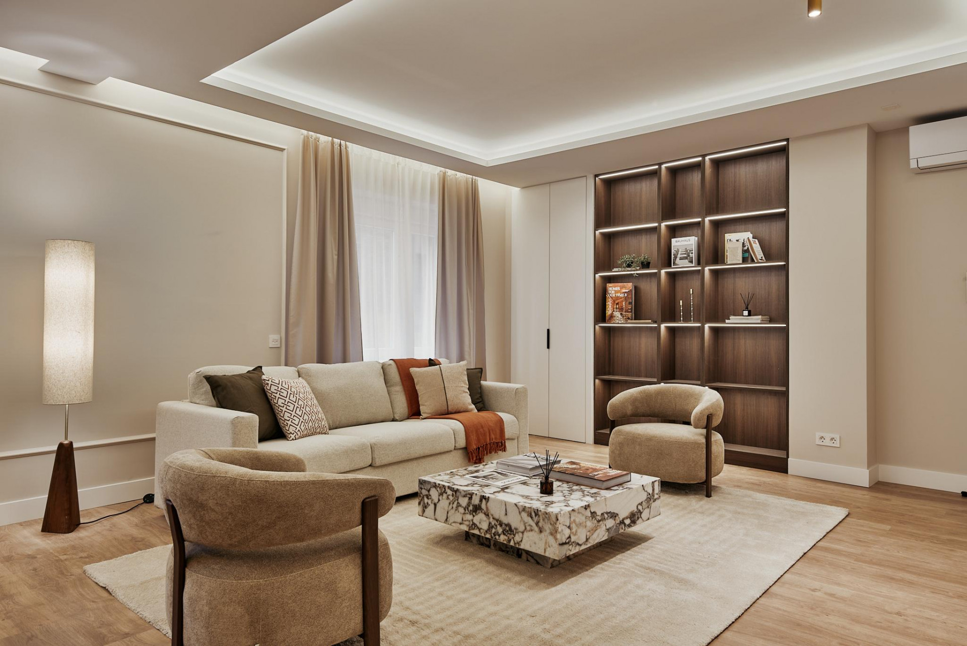 Exterior 145 sqm residence located in the Goya neighborhood, within the Salamanca district—one of Madrid's most established and sought-after areas. Fully renovated, the property features a contemporary style where quality materials and a well-considered layout create bright, open, and comfortable living spaces.The main living area flows into a spacious lounge with an open-plan, fully equipped kitchen, designed to offer both everyday comfort and an inviting setting for social living. The property includes three bedrooms and three full bathrooms, along with a separate laundry area that adds practicality without disrupting the overall harmony of the home.It is equipped with central heating, split air conditioning, a lift, and concierge service. The property is sold fully furnished, ready to move in.A home that balances light, space, and location in one of the most distinctive areas of Salamanca.
