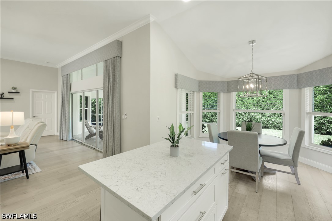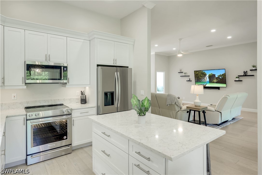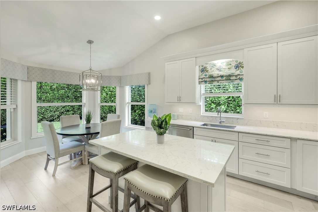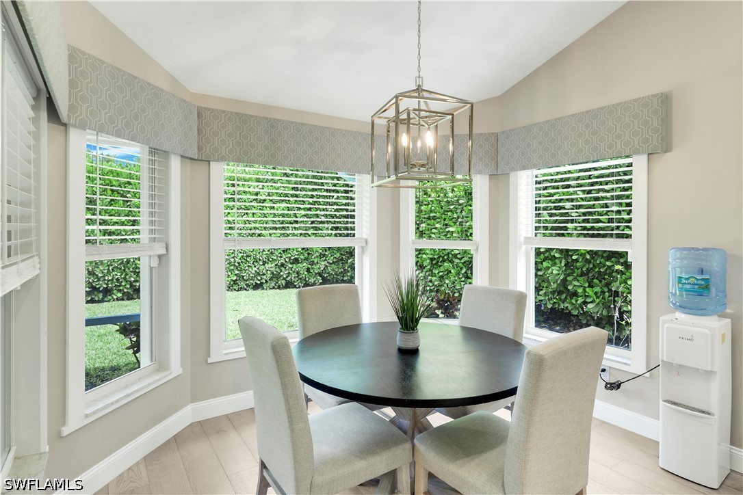 Beautifully updated and ideally located within the highly sought-after Monterey community, this 2+den residence offers a rare opportunity to enjoy one of Naples' premier neighborhoods. New Roof and fresh exterior paint, this home delivers immediate peace of mind and a clean, move-in-ready feel. Inside, you'll find wood-look plank flooring throughout, complemented by shaker-style white cabinetry, quartz countertops, and a spacious center island. The kitchen is outfitted with stainless steel KitchenAid appliances, and new LG refrigerator and spacious dining area. The primary suite features a thoughtfully updated bath with dual vanities and a large walk-in shower, while additional upgrades include a newer AC system, water heater, designer lighting, and custom window treatments. Both primary and guest bedroom have walk-in closets. The guest hallway has a hidden pocket door that can be closed to create a guest suite with complete privacy. The laundry room offers ample storage with 2 storage closets. The generous lanai opens to a spacious and private backyard with room for a pool. Monterey is a 24-hour guard-gated community known for its vibrant lifestyle and top-tier amenities, including a renovated clubhouse, fitness center, resort-style heated pool with lap lanes with cabanas, Har-Tru tennis and pickleball courts, playground, and an active social calendar. Beautiful mature landscaping. Located just minutes from the Gulf beaches and the upscale dining, shopping, and nightlife of Mercato, Pelican Bay, and 5th Ave., this home combines location, lifestyle, and value in one of Naples' most desirable school districts. Available furnished with a few exclusions.
