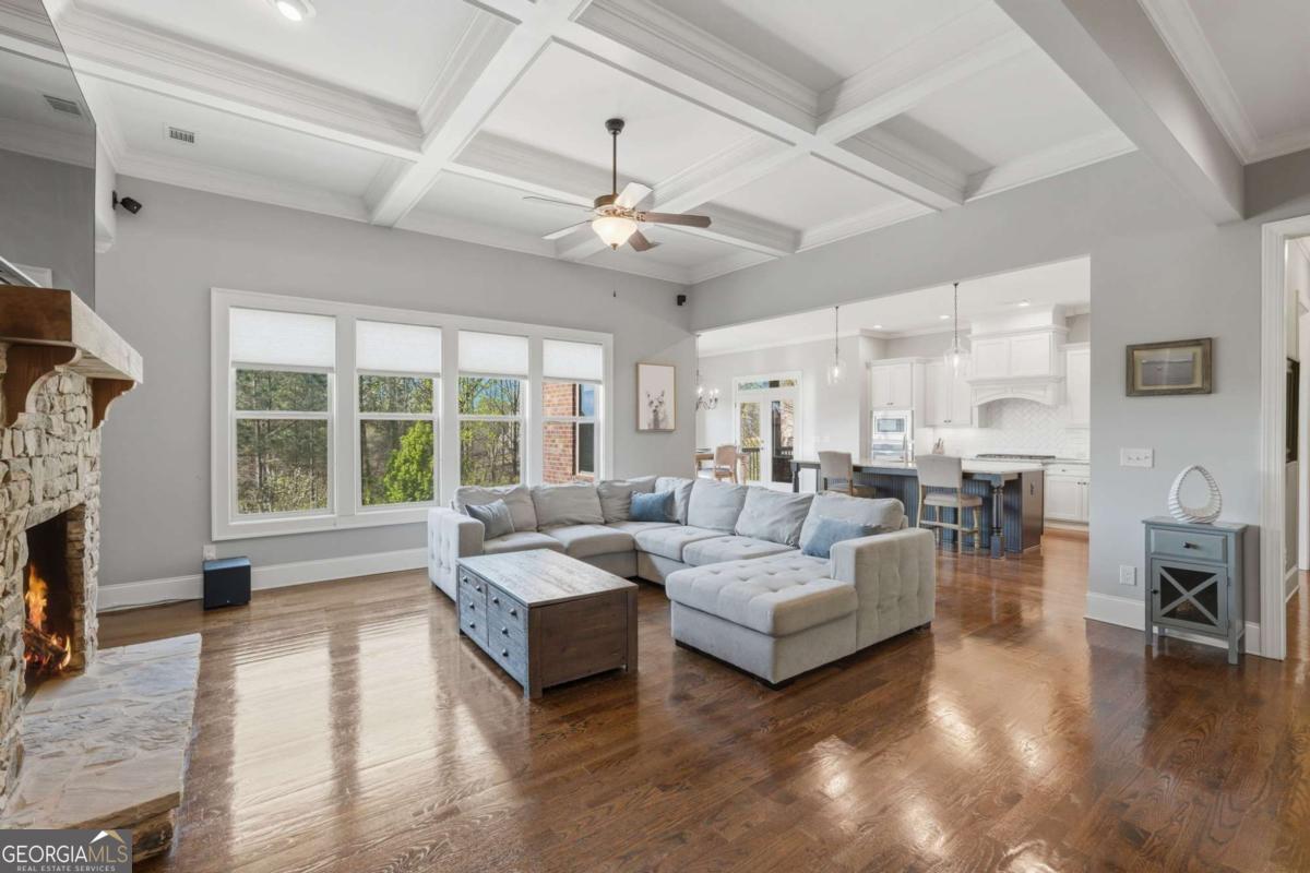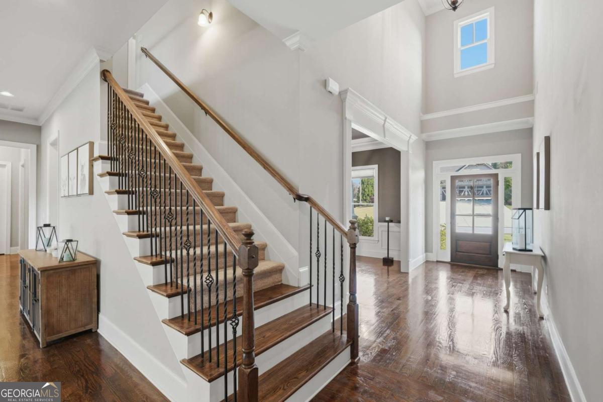 Welcome to this stunning four-sided brick luxury home tucked inside a sought-after gated community, where comfort meets effortless entertaining. Thoughtfully designed for gathering with friends and family, this home features a fully finished basement-perfect for game nights, movie marathons, or hosting guests-and the convenience of two laundry rooms for added functionality. Step outside to your private backyard oasis, complete with a heated, saltwater Gunite pool and spa. Elegant water features and a striking gas torch accent create a true resort-style experience, perfect for unforgettable evenings. In addition, enjoy two private outdoor living spaces with fireplaces, ideal for year-round entertaining or relaxing in a cozy setting. With a WiFi-enabled remote system, you can easily manage pool settings with ease year-round. Whether you're hosting summer pool parties, holiday celebrations, or quiet nights under the stars, this home was made for bringing people together and creating lasting memories. Seamlessly blending timeless construction, modern upgrades, and exceptional indoor-outdoor living, this is truly a rare offering. All of this conveniently located near schools, shopping, restaurants, Lake Lanier, golf courses, and I-85!