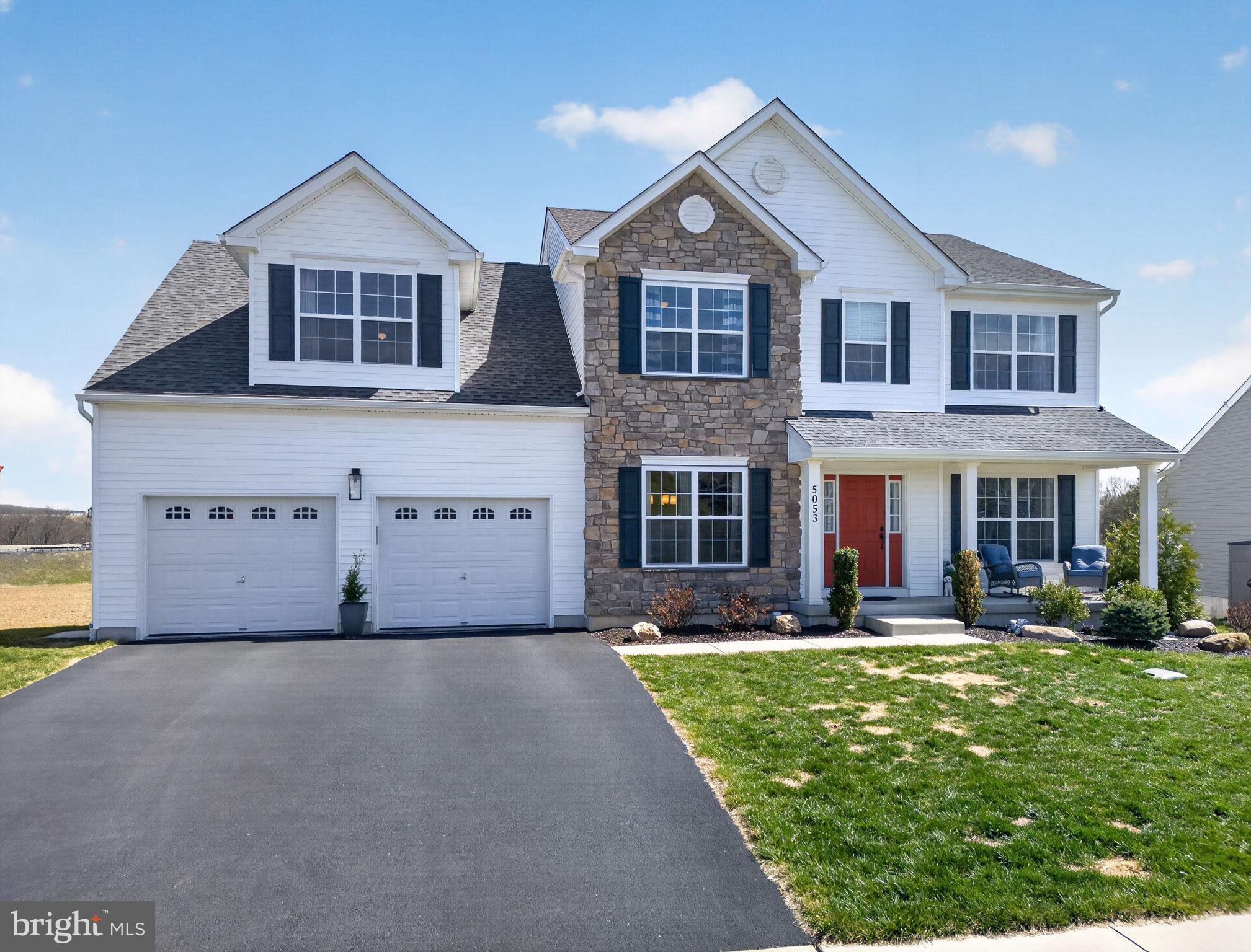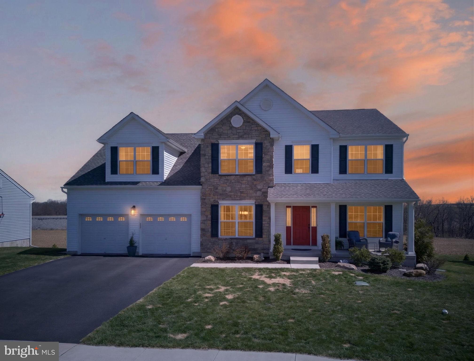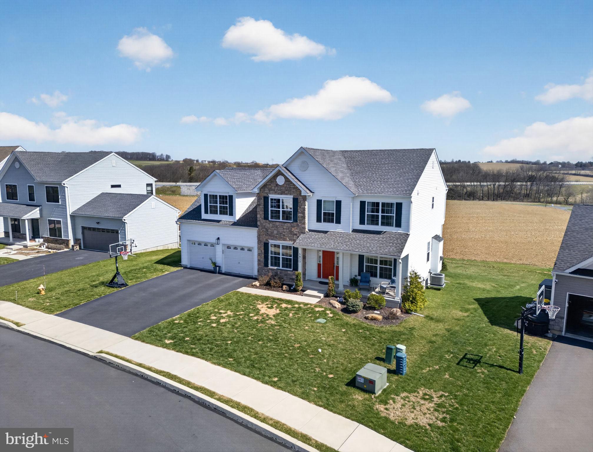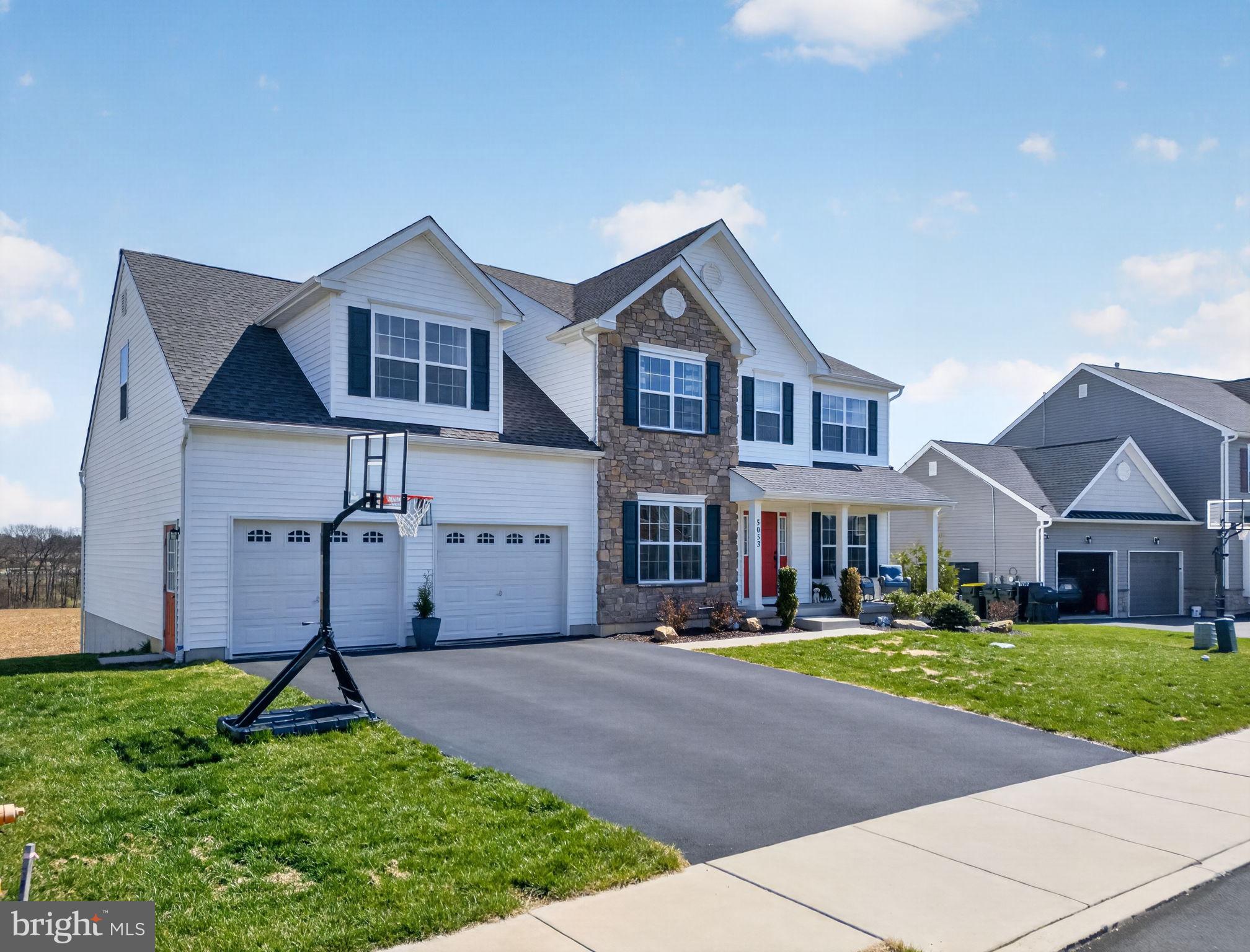 Discover over 3,000 square feet of beautifully CUSTOMIZED living in this exceptional 5-YEAR-OLD home, designed with UPGRADES that perfectly fit today's MODERN FAMILY LIFESTYLE. This spacious residence features 4 BEDROOMS, 2.5 BATHS, and an additional 588 sq. ft. BONUS that can serve as a fifth bedroom, office, or versatile flex space. The open-concept floor plan connects the living room, kitchen, and breakfast area, offering the ideal setting for casual dining, family gatherings, homework time, or entertaining. The kitchen has been thoughtfully upgraded with a LARGER ISLAND , EXTRA COUNTER SPACE featuring DEEP STORAGE DRAWERS, two pantries - including a big WALK-IN PANTRY - a separate DROP ZONE AREA off the garage, and a separate laundry room with an EXTRA closet. The living room's cozy GAS FIRE PLACE is flanked by upgraded windows that fill the space with natural light, while the formal dining room provides a perfect setting for more elegant occasions. Completing the first floor is a stylish half bath and a DEDICATED OFFICE, offering convenience for work-from-home professionals. Upstairs, the beautiful PRIMARY SUITE features a spacious walk-in closet and a SPA-LIKE BATH with floor-to-ceiling tile in the walk-in shower, COMFORT HEIGHT VANITY, and soothing finishes. The secondary bedrooms are generously sized, one with an over sized layout and another with a walk-in closet, while the main bath includes double sinks and plenty of room for busy mornings. The BONUS ROOM over the garage includes a closet, giving you flexibility to use it as a fifth bedroom, playroom, or studio. The ENHANCED GARAGE offers an EXTRA AREA perfect for storage, hobbies, or an additional vehicle, plus a side entrance for easy access. Outside, the home enjoys a wonderful setting with space for recreation, NEARBY schools and parks, and access to COMMUNITY FAVORITES like a local pool club and a charming farm creamery. This exceptional property combines country comfort with modern convenience - an ideal place to call home.**CLICK REEL TO VIEW VIDEO**