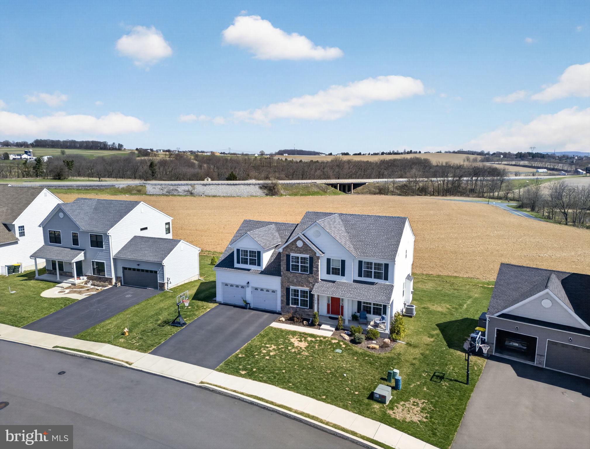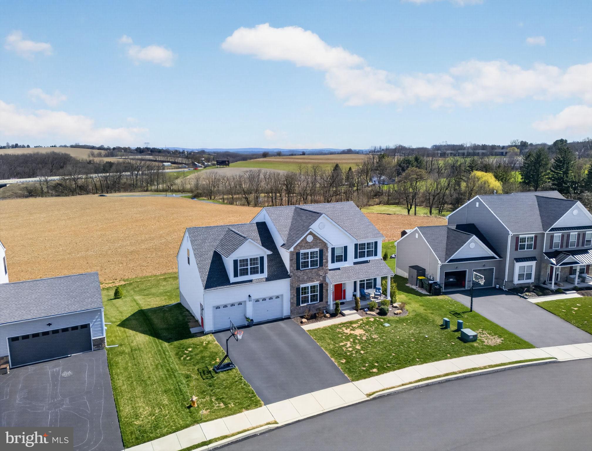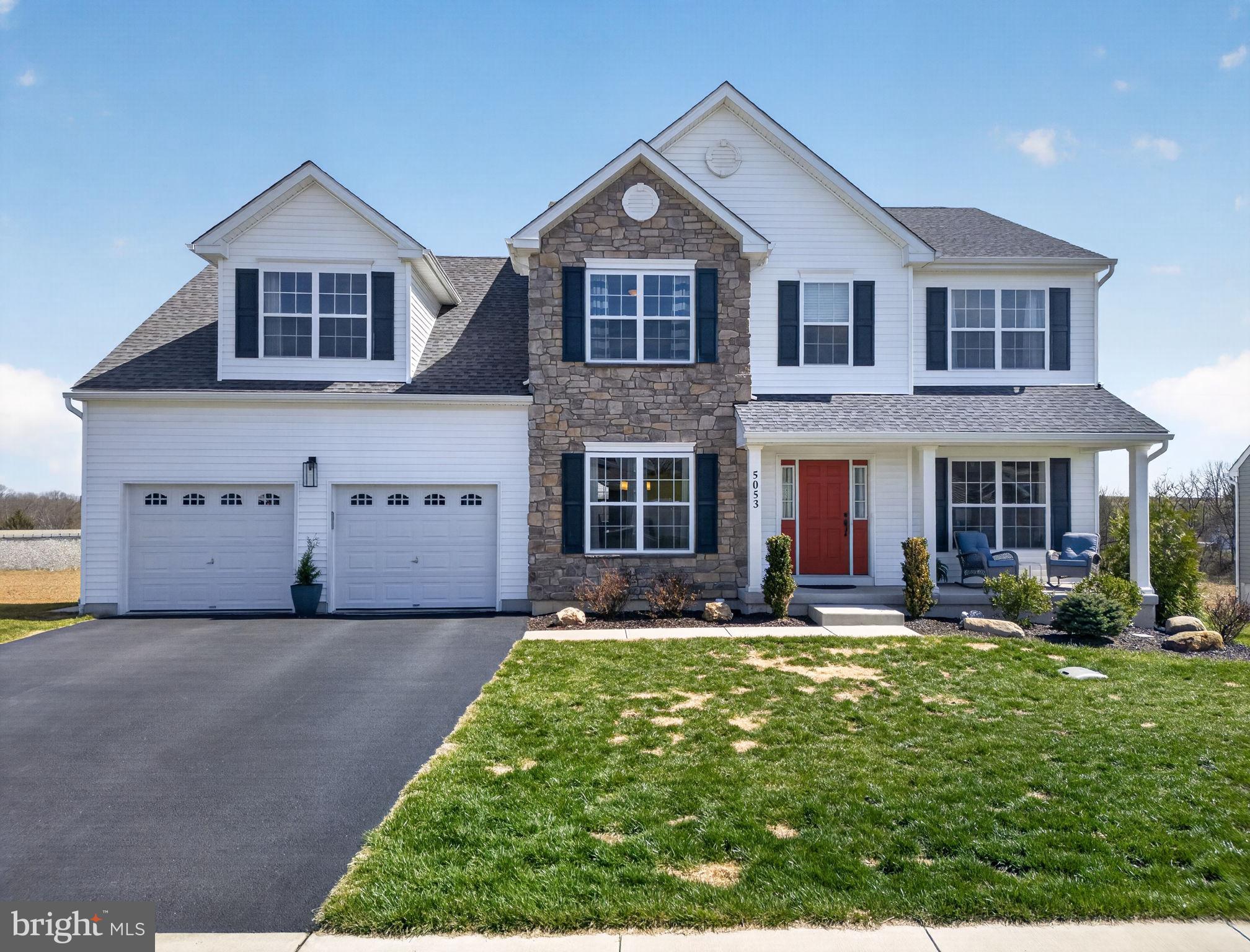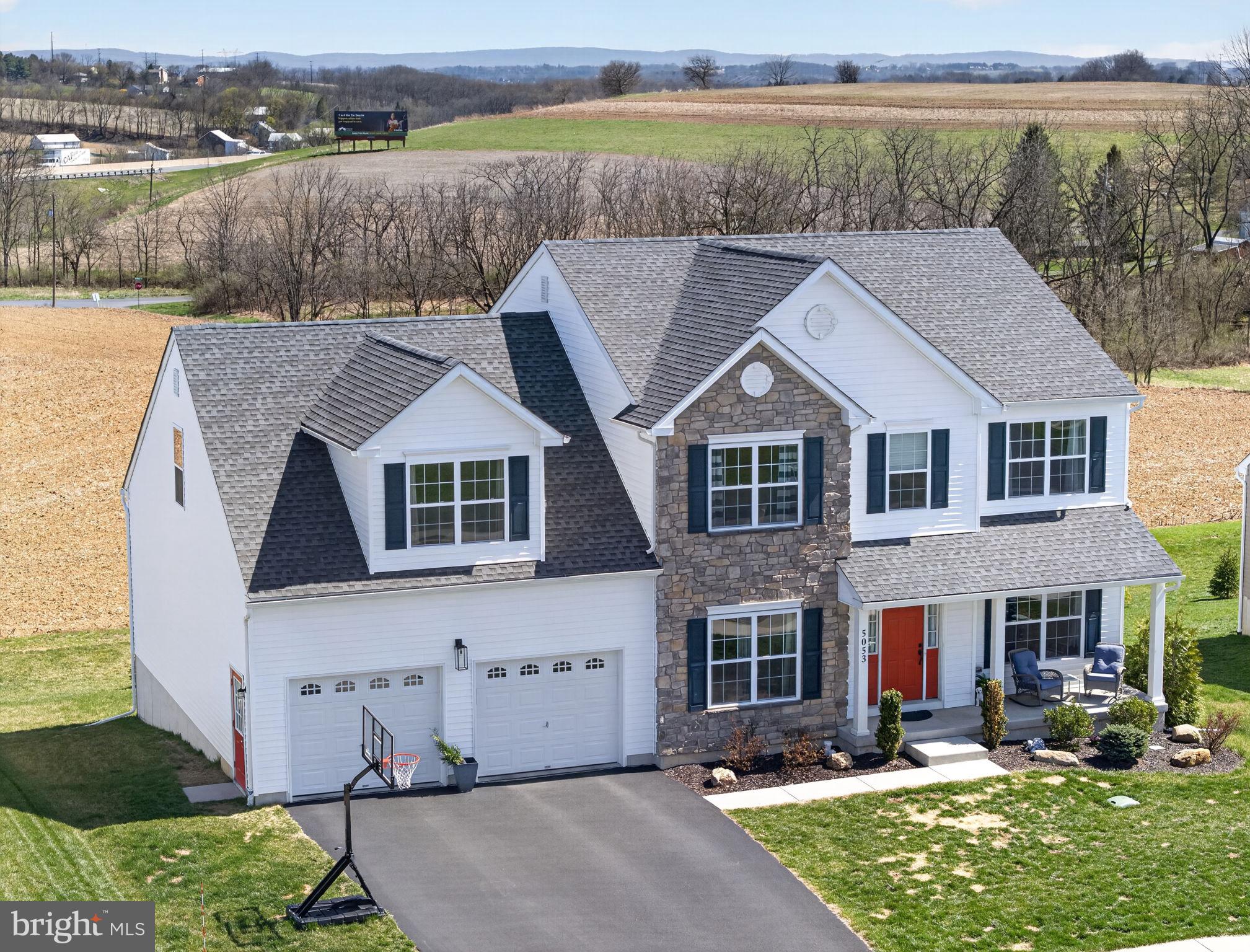 Discover over 3,000 square feet of beautifully CUSTOMIZED living in this exceptional 5-YEAR-OLD home, designed with UPGRADES that perfectly fit today's MODERN FAMILY LIFESTYLE. This spacious residence features 4 BEDROOMS, 2.5 BATHS, and an additional 588 sq. ft. BONUS that can serve as a fifth bedroom, office, or versatile flex space. The open-concept floor plan connects the living room, kitchen, and breakfast area, offering the ideal setting for casual dining, family gatherings, homework time, or entertaining. The kitchen has been thoughtfully upgraded with a LARGER ISLAND , EXTRA COUNTER SPACE featuring DEEP STORAGE DRAWERS, two pantries - including a big WALK-IN PANTRY - a separate DROP ZONE AREA off the garage, and a separate laundry room with an EXTRA closet. The living room's cozy GAS FIRE PLACE is flanked by upgraded windows that fill the space with natural light, while the formal dining room provides a perfect setting for more elegant occasions. Completing the first floor is a stylish half bath and a DEDICATED OFFICE, offering convenience for work-from-home professionals. Upstairs, the beautiful PRIMARY SUITE features a spacious walk-in closet and a SPA-LIKE BATH with floor-to-ceiling tile in the walk-in shower, COMFORT HEIGHT VANITY, and soothing finishes. The secondary bedrooms are generously sized, one with an over sized layout and another with a walk-in closet, while the main bath includes double sinks and plenty of room for busy mornings. The BONUS ROOM over the garage includes a closet, giving you flexibility to use it as a fifth bedroom, playroom, or studio. The ENHANCED GARAGE offers an EXTRA AREA perfect for storage, hobbies, or an additional vehicle, plus a side entrance for easy access. Outside, the home enjoys a wonderful setting with space for recreation, NEARBY schools and parks, and access to COMMUNITY FAVORITES like a local pool club and a charming farm creamery. This exceptional property combines country comfort with modern convenience - an ideal place to call home.**CLICK REEL TO VIEW VIDEO**