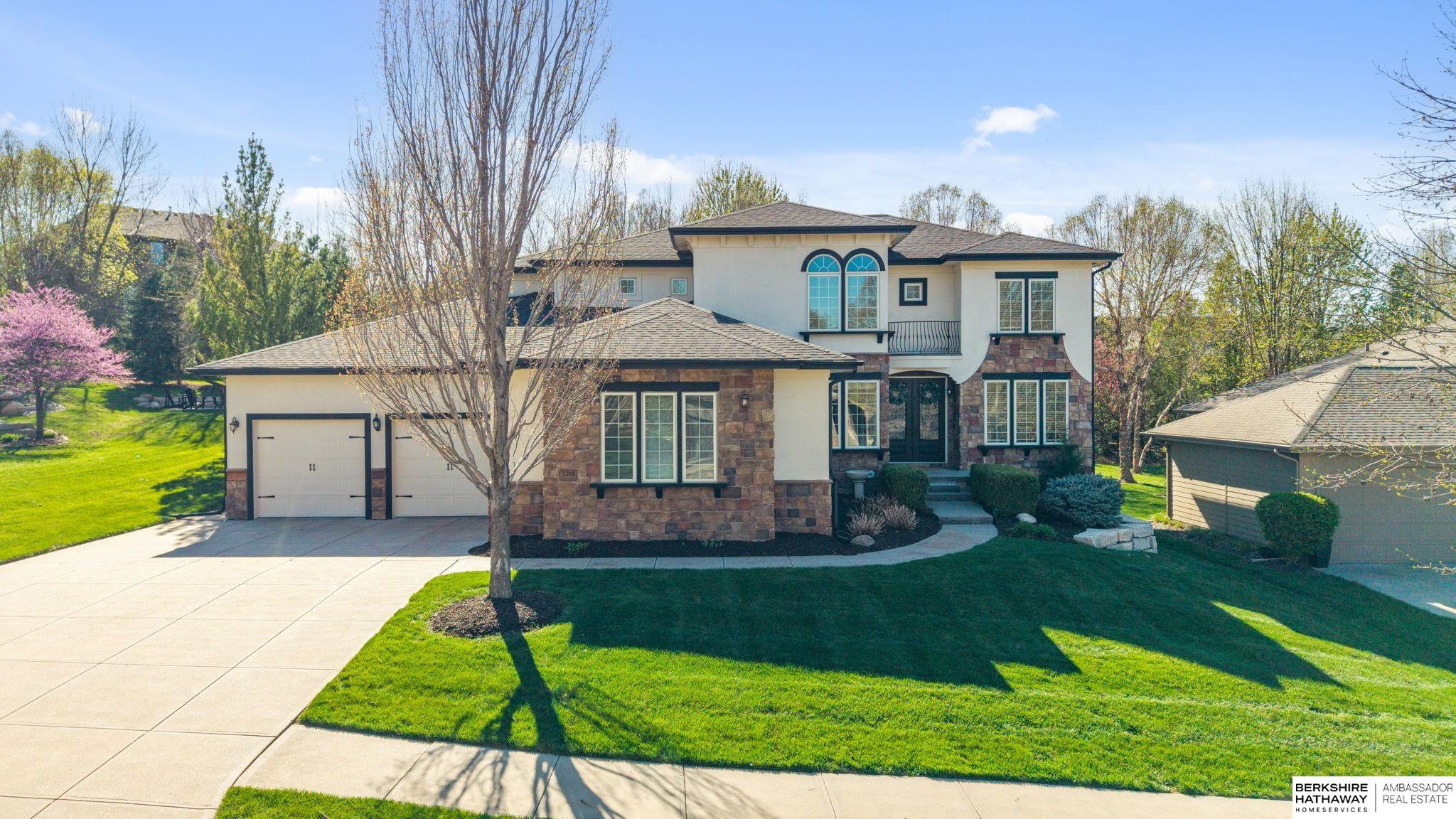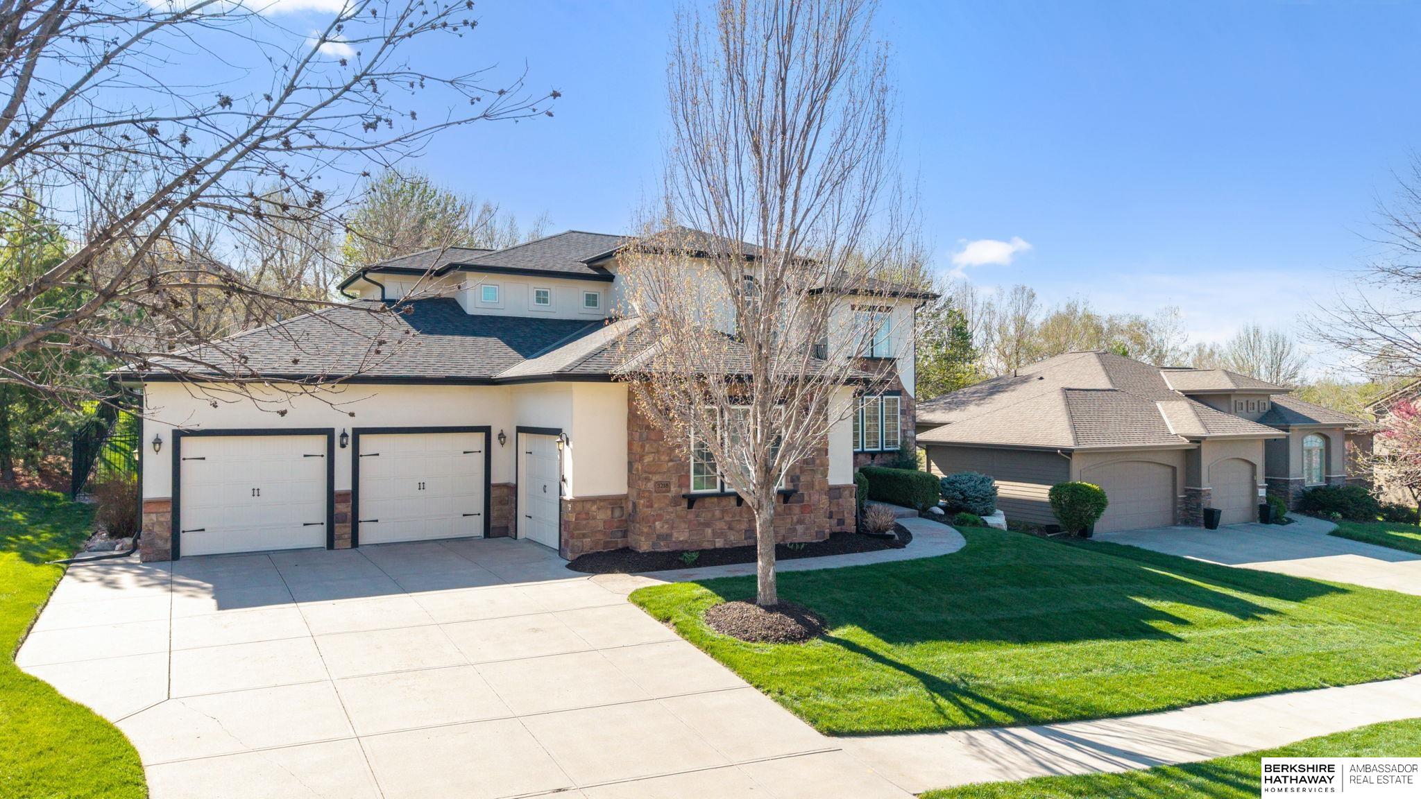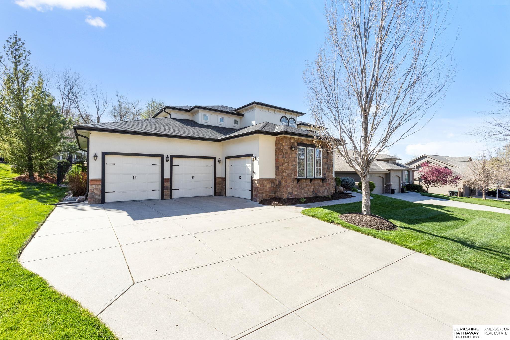 Stunning 2-story home in West Bay Woods II with an abundance of space, fresh updates, & luxury details throughout! This 6-bed 5-bath custom home features a soaring entry & grand staircase plus a formal dining room, sitting room, & office that could also serve as a bedroom, all on the main level. The updated kitchen has dual ovens, a large walk-in pantry, & gorgeous granite countertops. Upstairs, the primary suite has a huge closet & bathroom, plus there are 3 more bedrooms & 2 more bathrooms and a large laundry room w/ tons of counter space & storage. The finished basement is truly incredible w/ an oversized rec room complete w/ fireplace & projector screen, a custom wet bar, wine cellar, bedroom & full bathroom, plus a bonus rec space and room for storage too. Outside is a fully fenced backyard w/ covered patio & oversized 3-car garage. A prime location and neighborhood in Elkhorn South Schools & walking distance to West Bay Elementary!