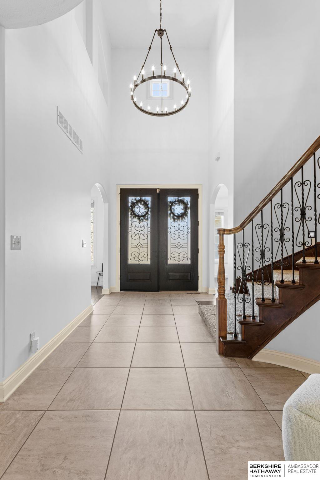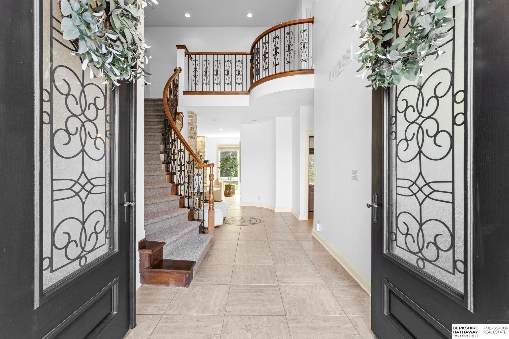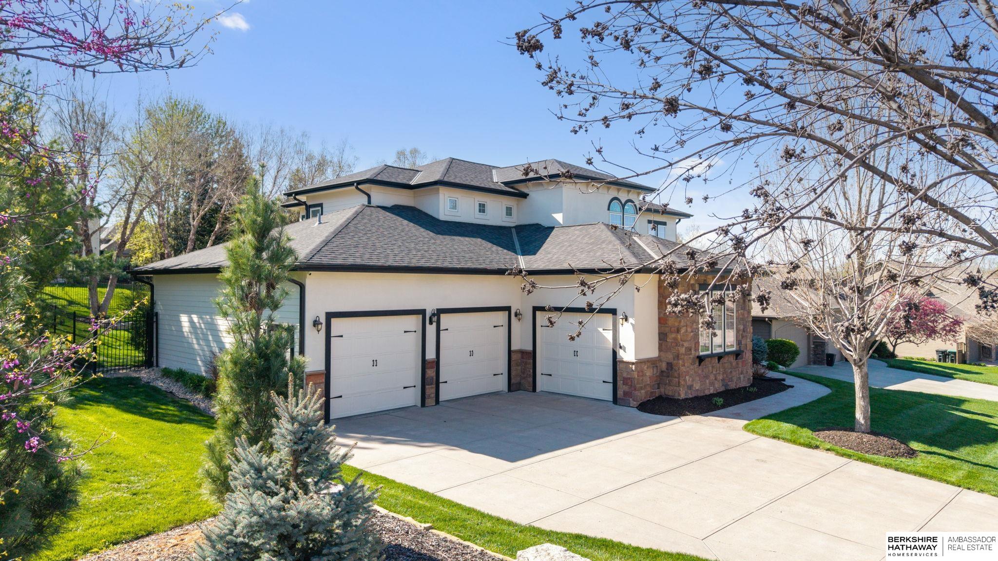 Stunning 2-story home in West Bay Woods II with an abundance of space, fresh updates, & luxury details throughout! This 6-bed 5-bath custom home features a soaring entry & grand staircase plus a formal dining room, sitting room, & office that could also serve as a bedroom, all on the main level. The updated kitchen has dual ovens, a large walk-in pantry, & gorgeous granite countertops. Upstairs, the primary suite has a huge closet & bathroom, plus there are 3 more bedrooms & 2 more bathrooms and a large laundry room w/ tons of counter space & storage. The finished basement is truly incredible w/ an oversized rec room complete w/ fireplace & projector screen, a custom wet bar, wine cellar, bedroom & full bathroom, plus a bonus rec space and room for storage too. Outside is a fully fenced backyard w/ covered patio & oversized 3-car garage. A prime location and neighborhood in Elkhorn South Schools & walking distance to West Bay Elementary!