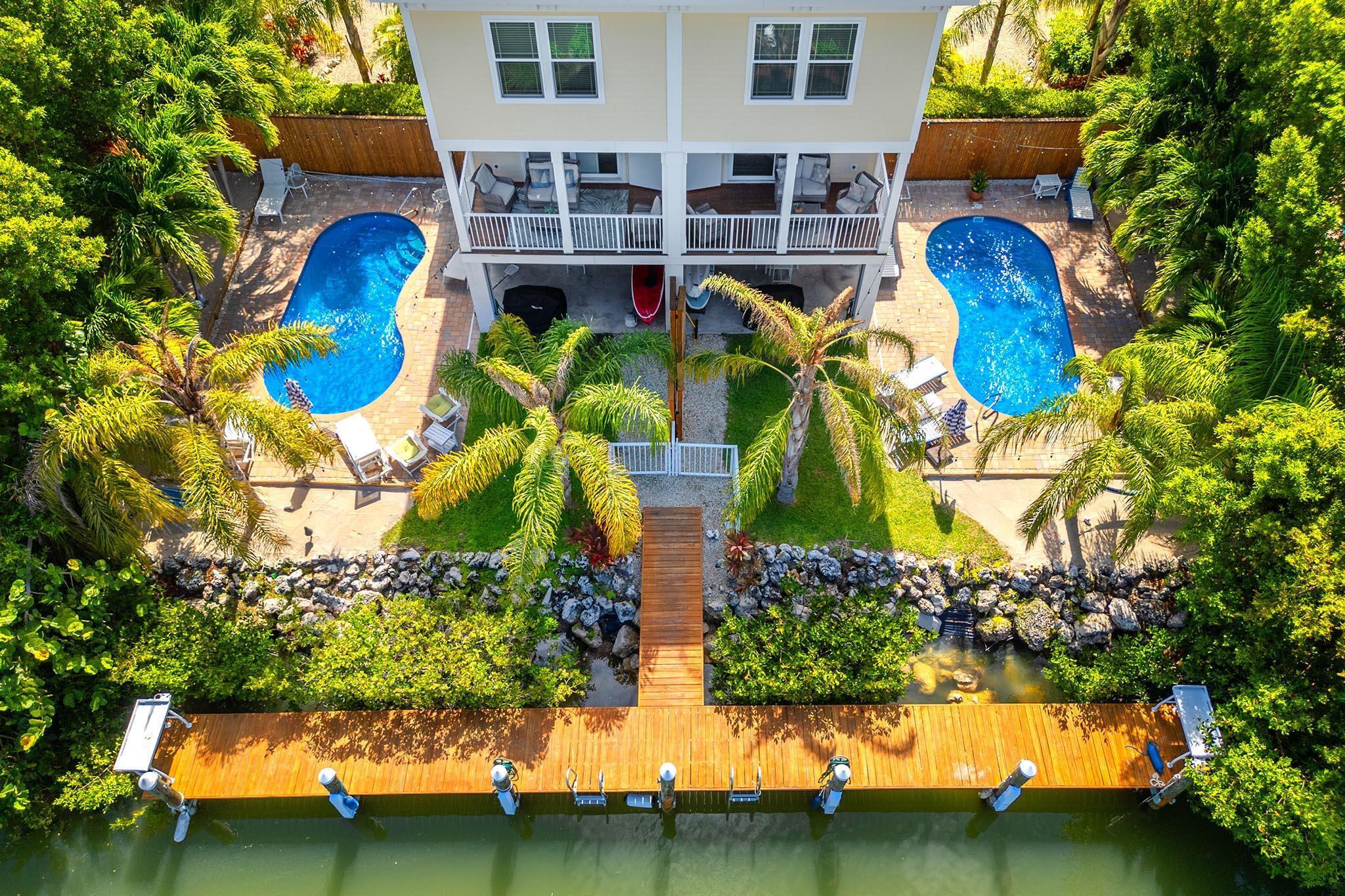 Incredible Income-Producing Full Duplex 8 Bedrooms 6 Bathrooms 4 Bedrooms 3 Bathrooms per Unit 2 Pools 40' Dock Rare opportunity to own a highly desirable, newer construction duplex offering exceptional income potential and resort-style amenities. This property features a total of 8 bedrooms and 6 bathrooms, with each side boasting 4 beds and 3 baths, private entrances, and separate utilities--ideal for investors, vacation rental operators, or owner-occupants seeking rental income. Both units have been well maintained and offer spacious, open floor plans with updated kitchens, ample natural light, and modern finishes. Each side opens to its own private pool--perfect for guests or personal use. The tropical landscaping, fenced yard, and multiple lounging areas create a true retreat atmosphere. A 40-foot dock provides direct water access, making this a boater's dream with potential for added rental income from dock usage. Just minutes from open water with a 4' control depth, this property is a rare find in today's market. Additional features include: Separate laundry for each unit Ample parking Turnkey rental-ready with proven rental history Zoned multifamily Potential for short-term rental (verify with municipality) Centrally located near beaches, dining, shopping, and top local attractions, this duplex delivers strong year-round rental demand. A perfect blend of luxury living and passive income potential. Financials available upon request to qualified buyers. Call to schedule your private showing today.