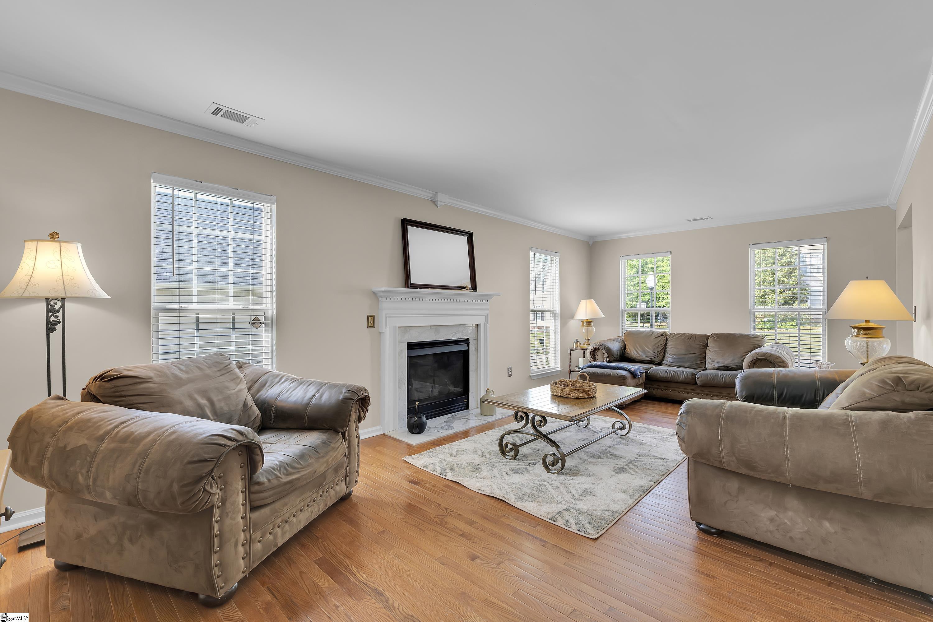 Charming and classic, this traditional two-story white home with black shutters checks every box on your list and then some. Tucked into one of Fountain Inn's most walkable, golf-cart-friendly neighborhoods, 415 Scarlet Oak isn't just a home it's a whole vibe.Step inside to oak hardwood floors that flow through the dining and living rooms, anchored by a cozy gas log fireplace built for those cool South Carolina evenings. The open kitchen overlooks a sunroom and a fenced backyard retreat complete with an above-ground pool and beyond the fence? The Swamp Rabbit Trail and a straight shot into the heart of downtown Fountain Inn. Like, for real, it's right there. Entertain in style on the oversized back deck, fire up the grill, and enjoy the kind of summer evenings people talk about all winter. When festival season hits downtown, you're practically already there. Upstairs, the primary suite delivers with a garden tub, separate shower, and walk-in closet. Two additional guest bedrooms plus a flexible fourth bedroom (yep, has a closet), perfect as a bonus room, home office, or playroom. Hallmark-movie neighborhood. Trail access out the back gate. Downtown within a golf cart ride. This one's special.