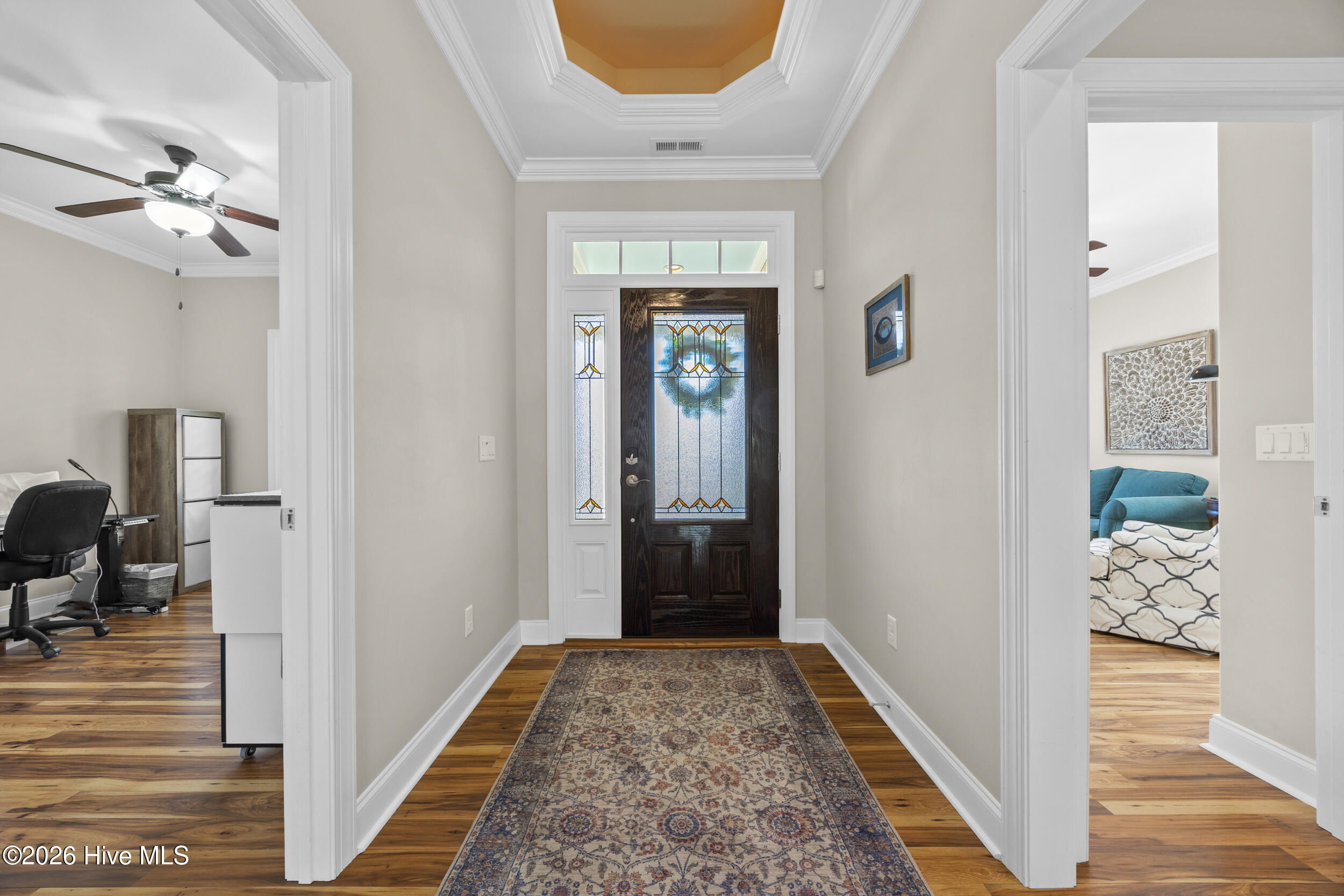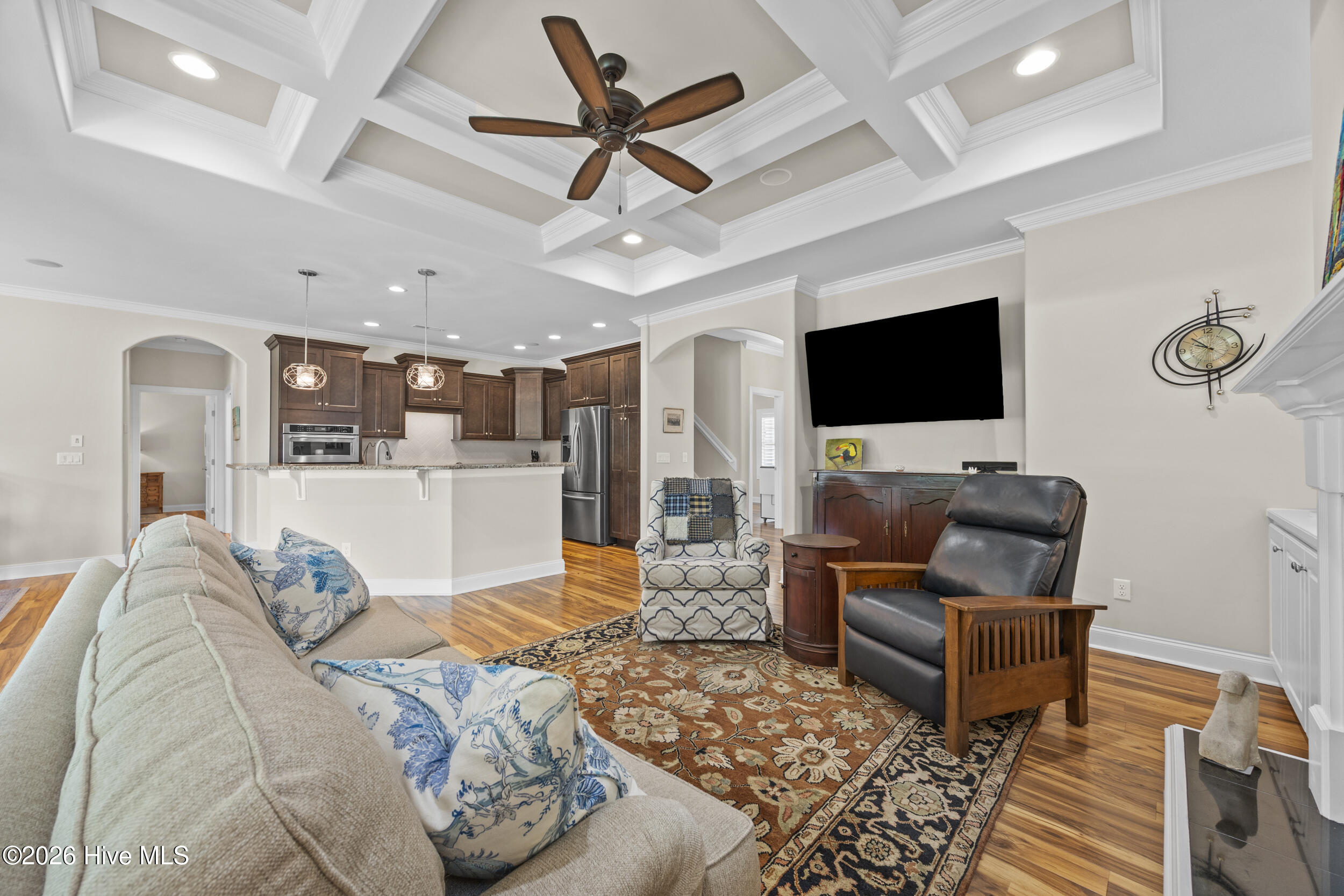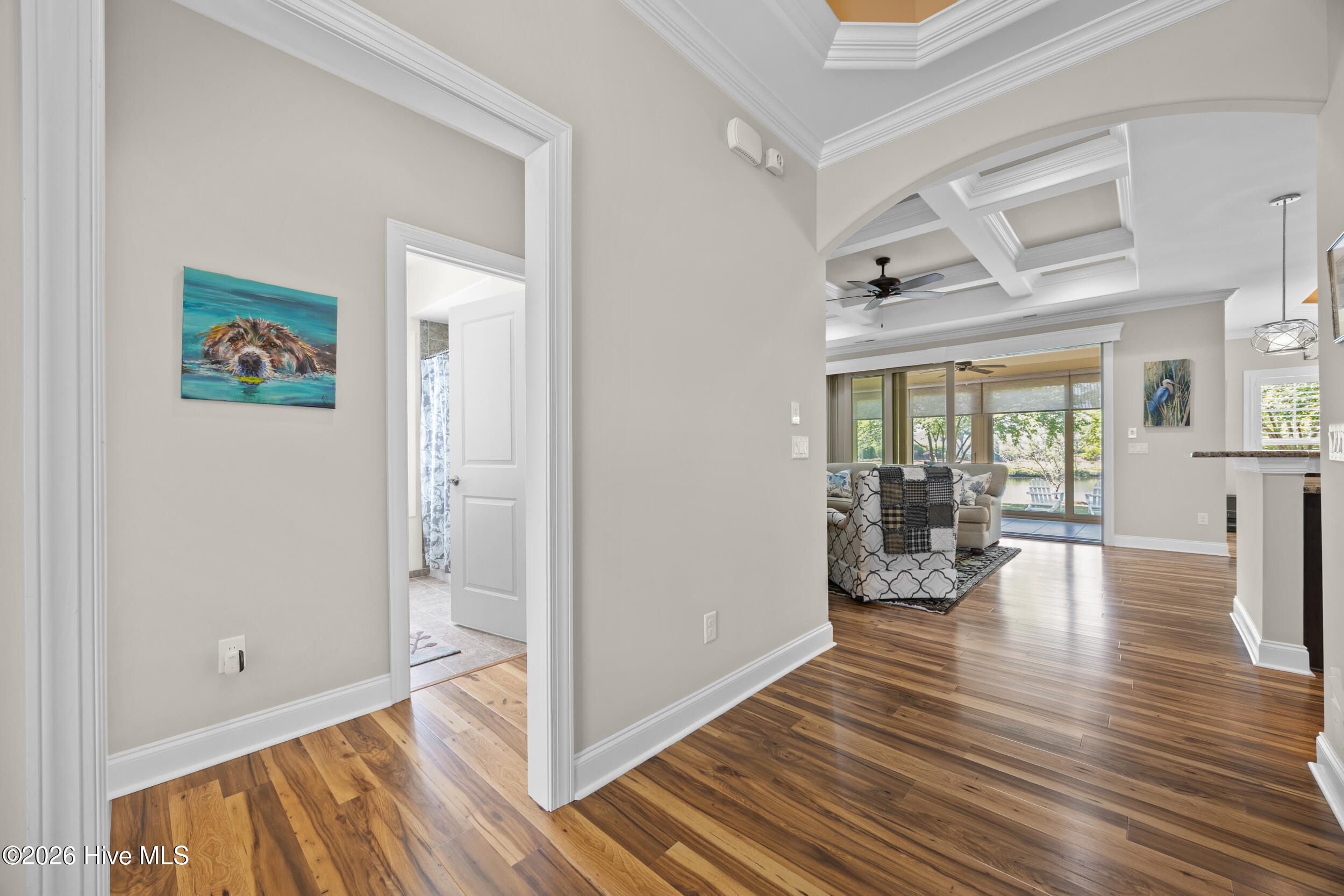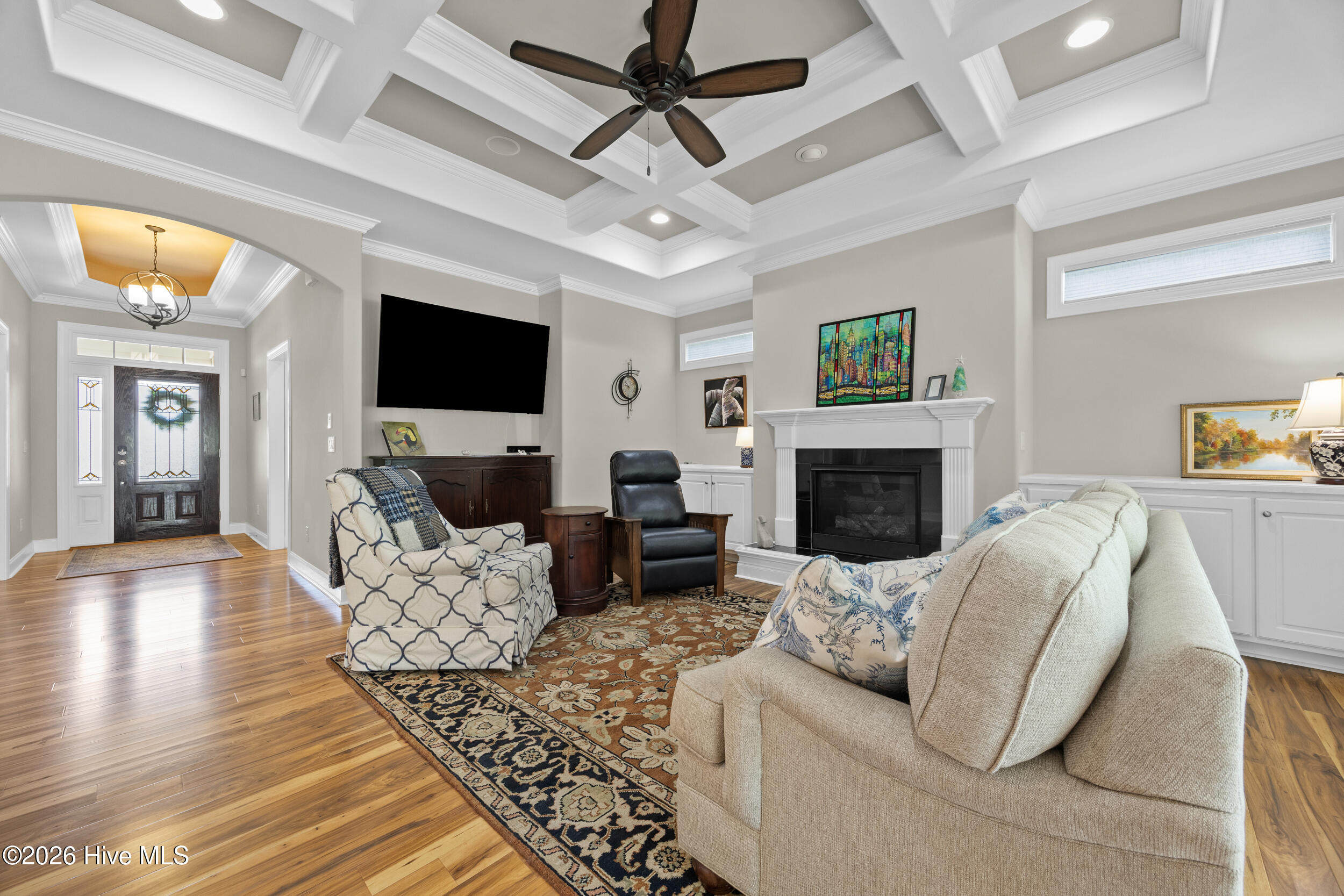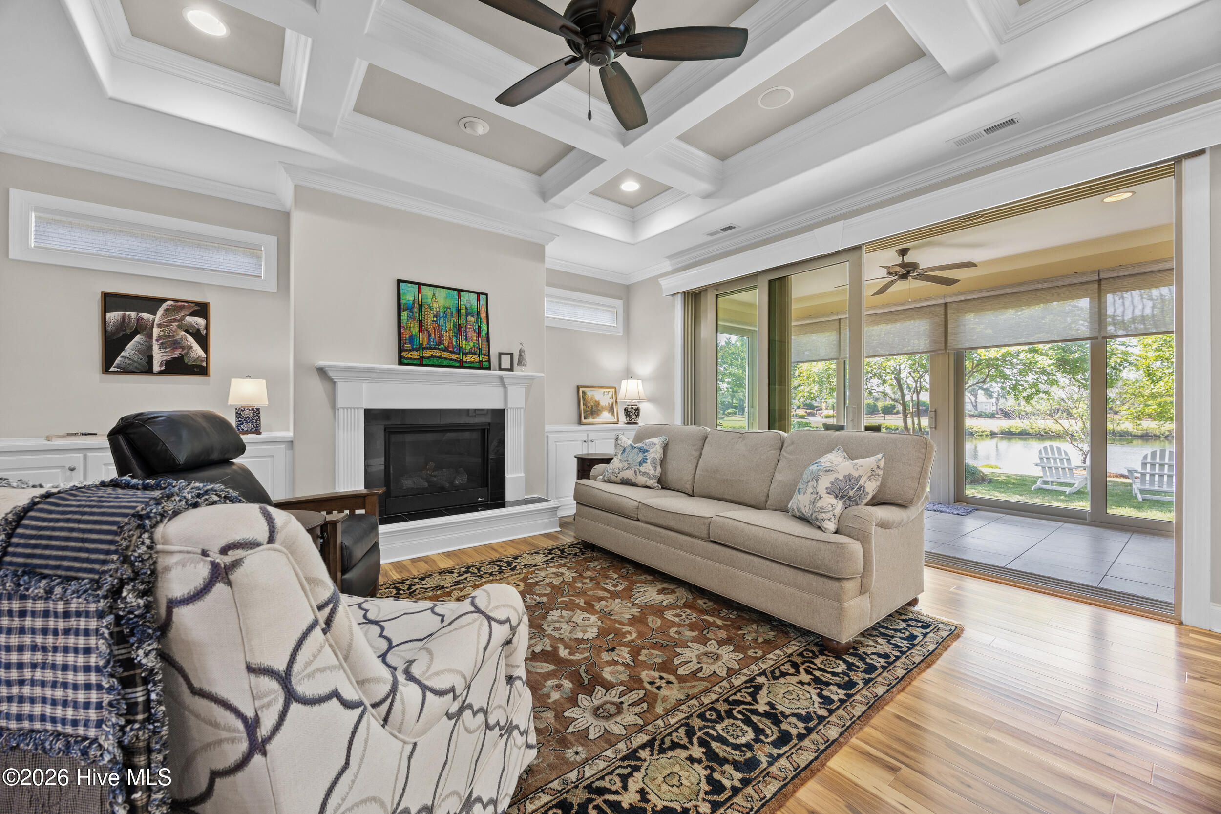 Built in 2017, this home offers the advantage of newer construction within a mature section of the gated community of Waterford of the Carolinas, with updated finishes throughout including coffered and tray ceilings, tiled walk-in showers, granite countertops and more. The open-concept main living area features a gas fireplace with built-ins and flows into a flexible dining or breakfast space. The kitchen is well-positioned for both everyday living and entertaining, complete with a gas stove and seamless connection to the main living areas. A bright, tiled sunroom with expansive triple sliding doors extends the living area and invites in natural light, while overlooking the pond and mature trees that create a peaceful outdoor backdrop. The primary suite is conveniently located on the first floor and features tray ceilings, along with a spacious en-suite with a tiled walk-in shower and walk-in closet. Upstairs, a large bonus room with a full bath offers flexible space for a guest suite, second living area, or private retreat. Ideally situated near the heart of Leland, this home provides convenient access to shopping, dining, and everyday amenities, while also offering a variety of neighborhood amenities including a clubhouse, pool, tennis, pickleball, bocce, volleyball and basketball courts, kayak launch, and playground. Don't miss this opportunity, schedule your private showing today!