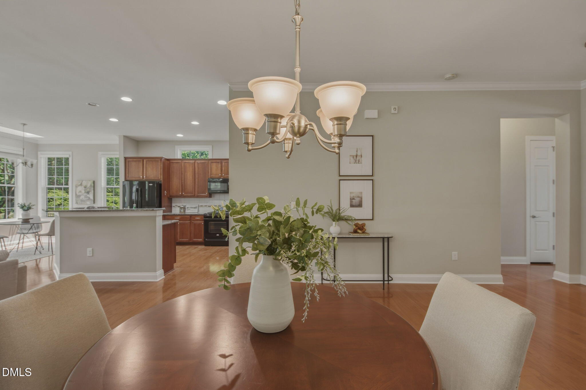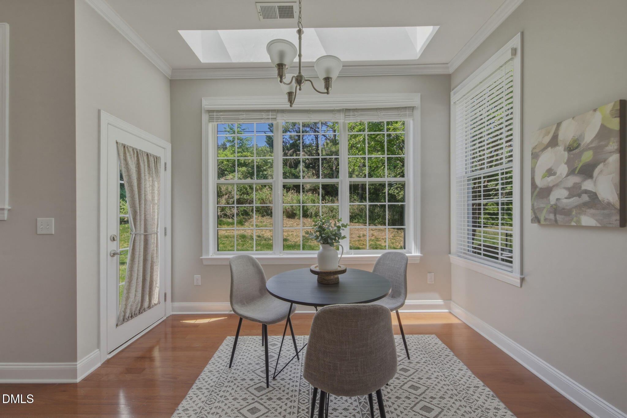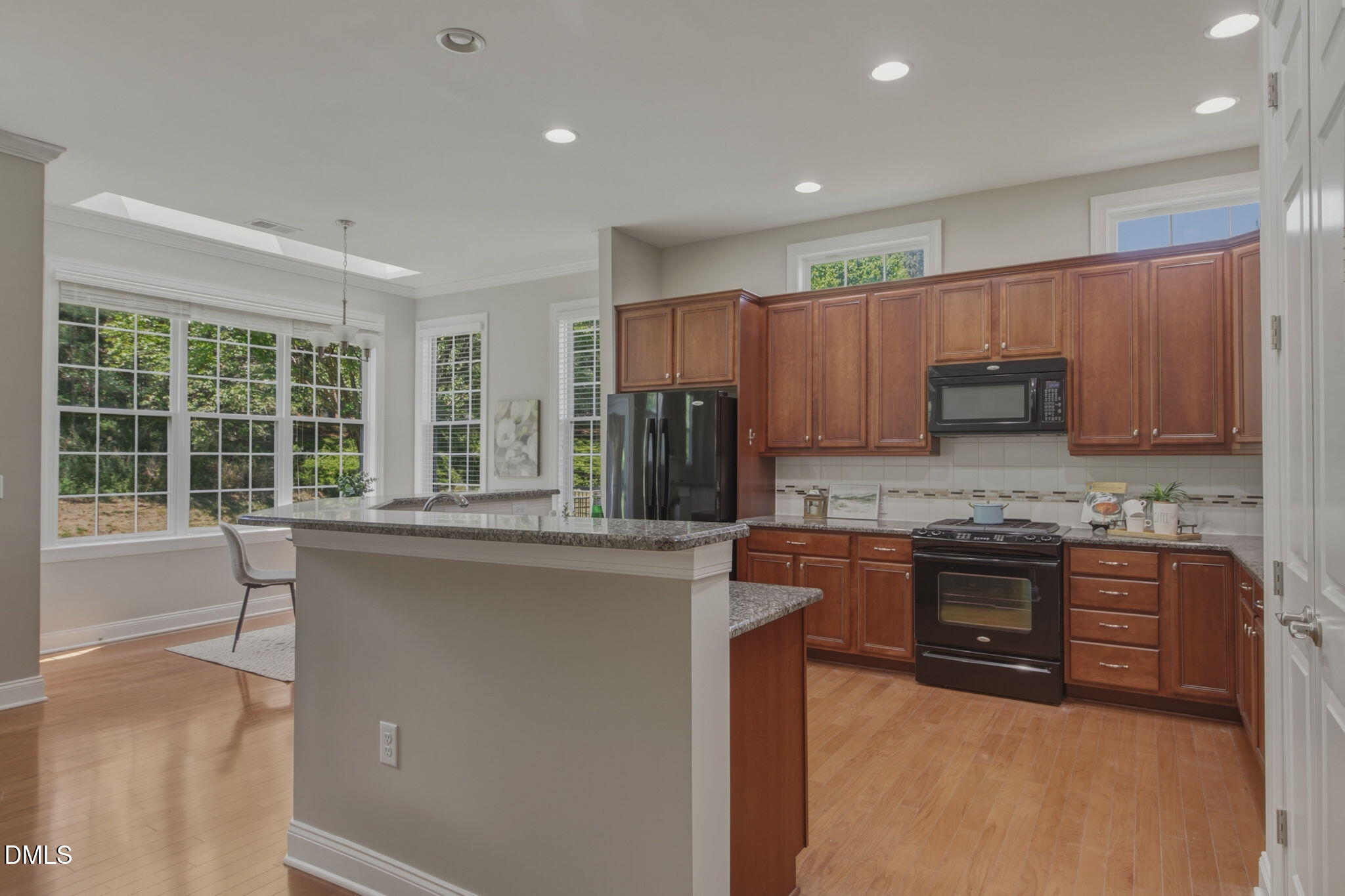 Tucked into Regency at Brier Creek Country Club, 9805 Carlyle Hills Way offers easy one-level living with a layout that feels both open and comfortable. With 3 bedrooms and 2 full baths, the home is filled with natural light--thanks to thoughtfully placed skylights, 10-foot ceilings, and an easy flow that makes everyday living feel effortless. Hardwood floors and a gas fireplace anchor the main living space with warmth and character. The kitchen is designed for both daily life and entertaining, featuring granite countertops, cherry cabinetry, under-cabinet lighting, a tile backsplash, and pantry storage. A full appliance package--including washer, dryer, and refrigerator--adds to the home's move-in-ready appeal. The primary suite offers a tray ceiling and a peaceful, private retreat, while the screened porch extends your living space outdoors--perfect for morning coffee or a relaxed evening unwind. Fresh interior paint gives the home a clean, updated feel, and practical features like walk-up attic storage, spray foam insulation, an irrigation system, and a 2-car garage add everyday convenience. All of this just minutes from RTP, RDU, and the shopping and dining at Brier Creek Commons--bringing together comfort, light-filled living, and an unbeatable Northwest Raleigh location.