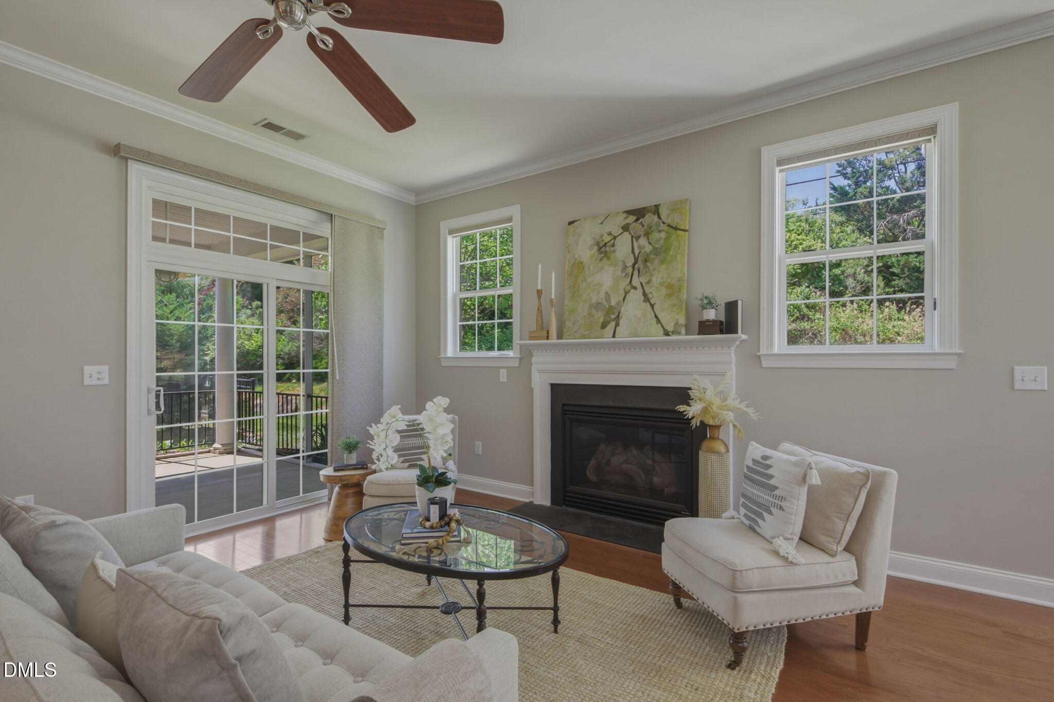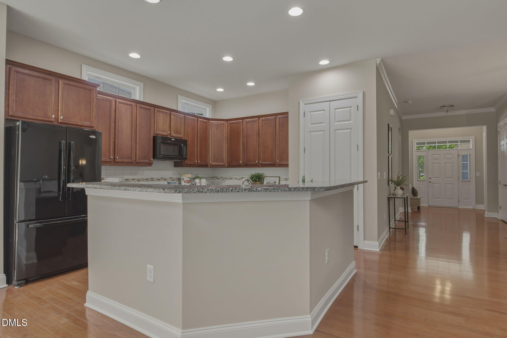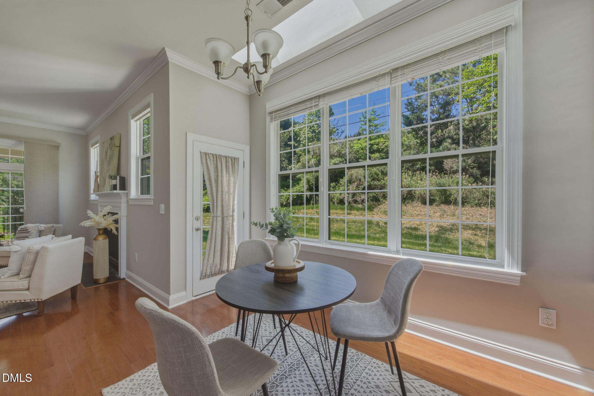 Tucked into Regency at Brier Creek Country Club, 9805 Carlyle Hills Way offers easy one-level living with a layout that feels both open and comfortable. With 3 bedrooms and 2 full baths, the home is filled with natural light--thanks to thoughtfully placed skylights, 10-foot ceilings, and an easy flow that makes everyday living feel effortless. Hardwood floors and a gas fireplace anchor the main living space with warmth and character. The kitchen is designed for both daily life and entertaining, featuring granite countertops, cherry cabinetry, under-cabinet lighting, a tile backsplash, and pantry storage. A full appliance package--including washer, dryer, and refrigerator--adds to the home's move-in-ready appeal. The primary suite offers a tray ceiling and a peaceful, private retreat, while the screened porch extends your living space outdoors--perfect for morning coffee or a relaxed evening unwind. Fresh interior paint gives the home a clean, updated feel, and practical features like walk-up attic storage, spray foam insulation, an irrigation system, and a 2-car garage add everyday convenience. All of this just minutes from RTP, RDU, and the shopping and dining at Brier Creek Commons--bringing together comfort, light-filled living, and an unbeatable Northwest Raleigh location.