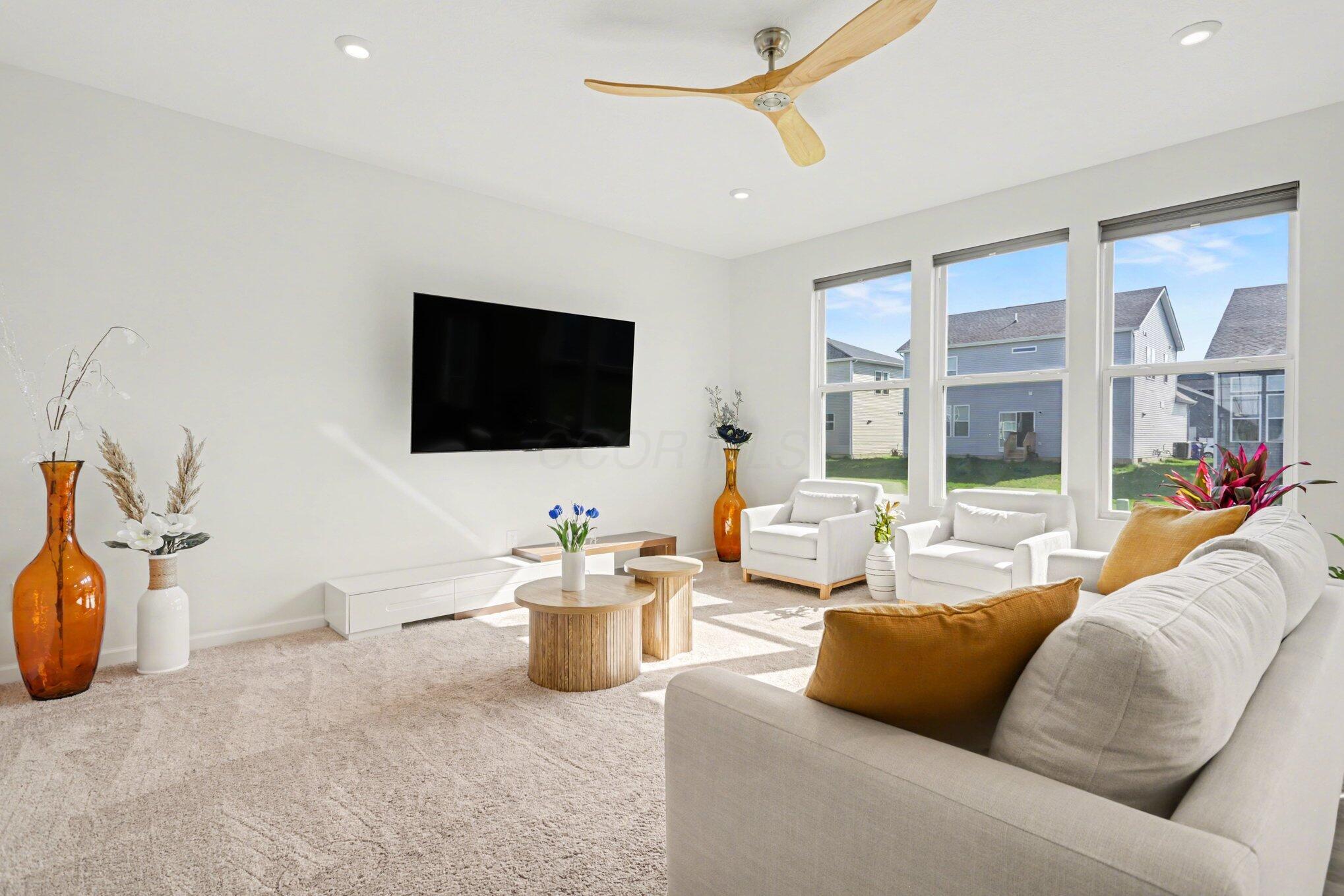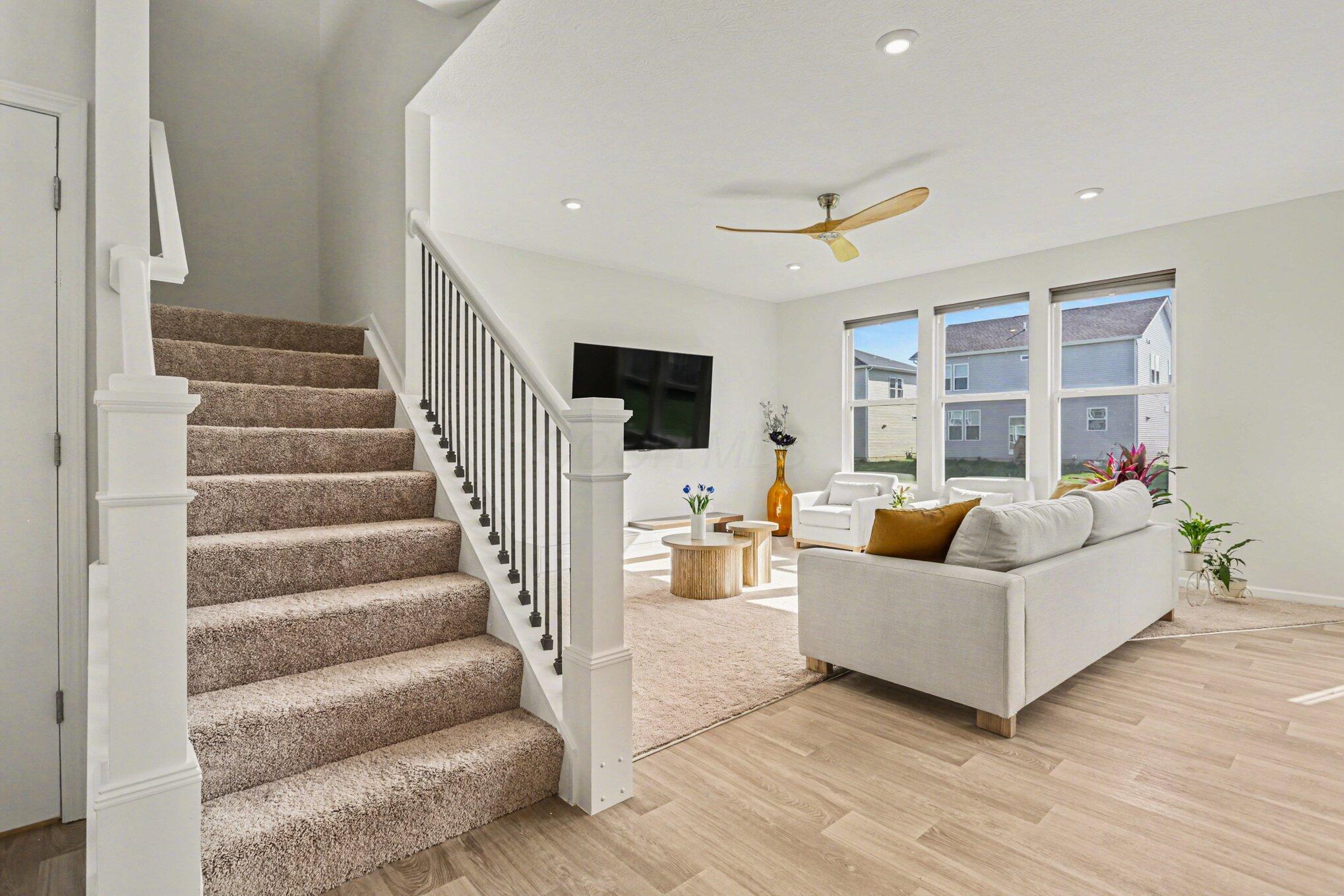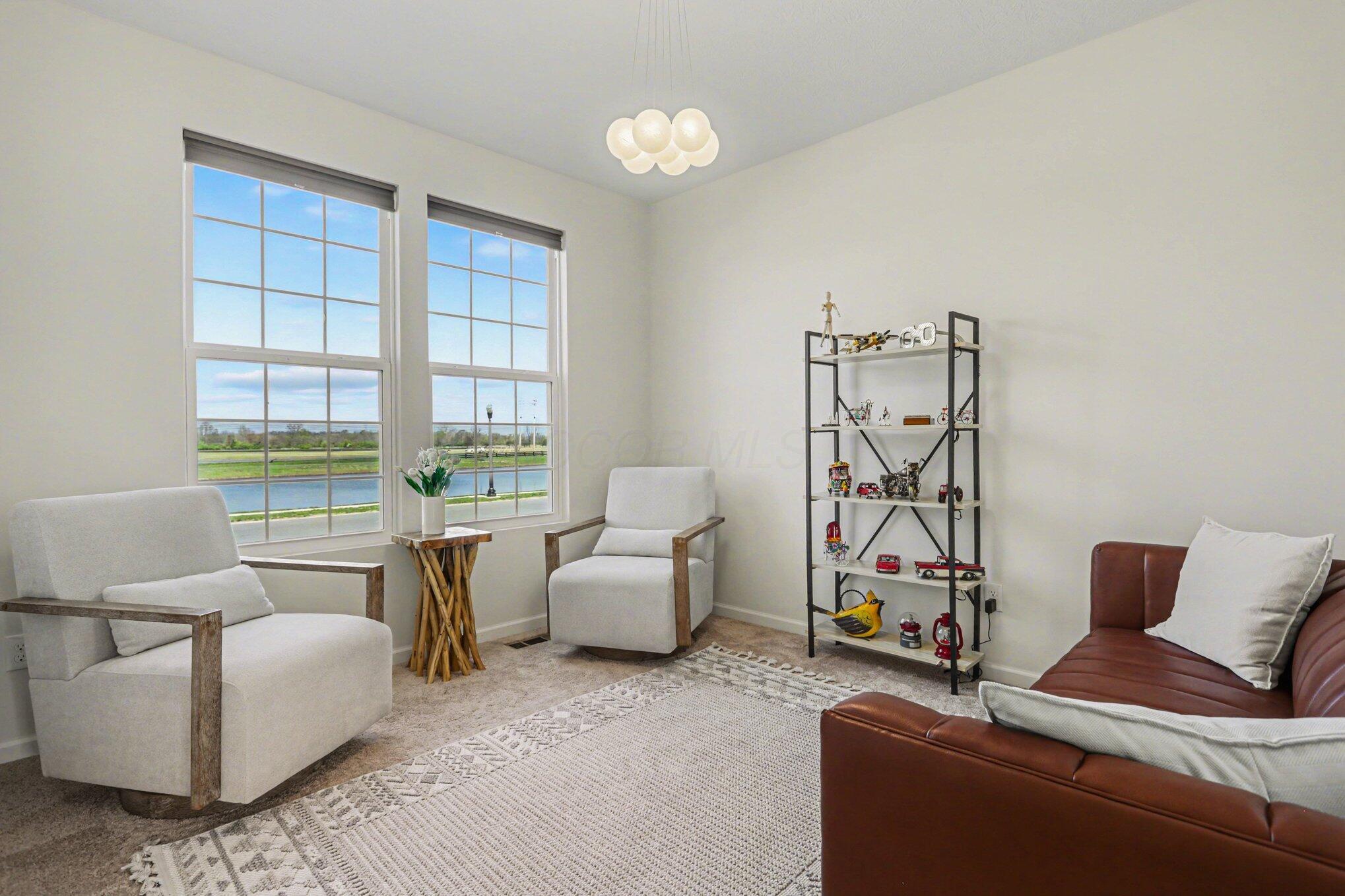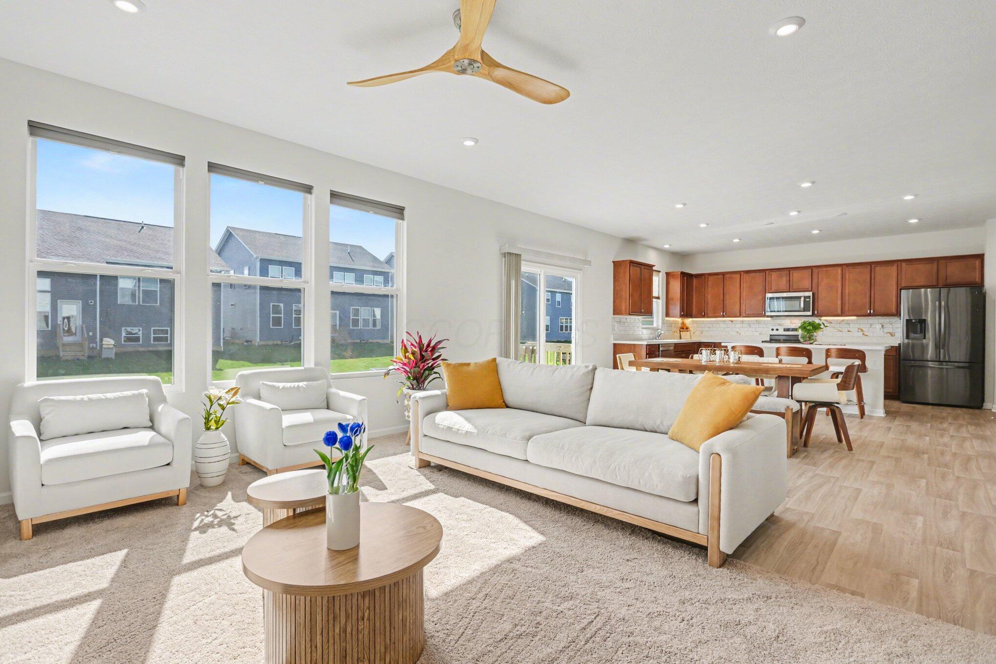 OPEN HOUSE SAT 4/18 12P-2P. Why wait for new construction to be completed when this 1.5-year-old home is ready now?! Additionally, the Sellers are offering a $5K credit at closing! Located in the Hilliard School District (Columbus taxes), this gently lived-in two-story home is in pristine condition. The main level features an open-concept kitchen and living area, along with a dedicated home office/den and a half bath. The kitchen is equipped with stainless steel appliances, beautiful cabinetry, and a large island with seating. Upstairs, you'll find two guest bedrooms, a versatile loft, a full bathroom, convenient second-floor laundry, and a spacious primary suite featuring a walk-in closet and private en-suite bathroom. The full basement currently serves as a home gym and storage area, but with its egress window and roughed-in bathroom plumbing, it could easily be finished to add more living space. Enjoy pond views, a network of paths, a community playground, and nearby parks. Nearly 50% of the community is dedicated to open reserve space. Move in and get settled over the summer! High-speed Internet and TV is included in the HOA fees.
