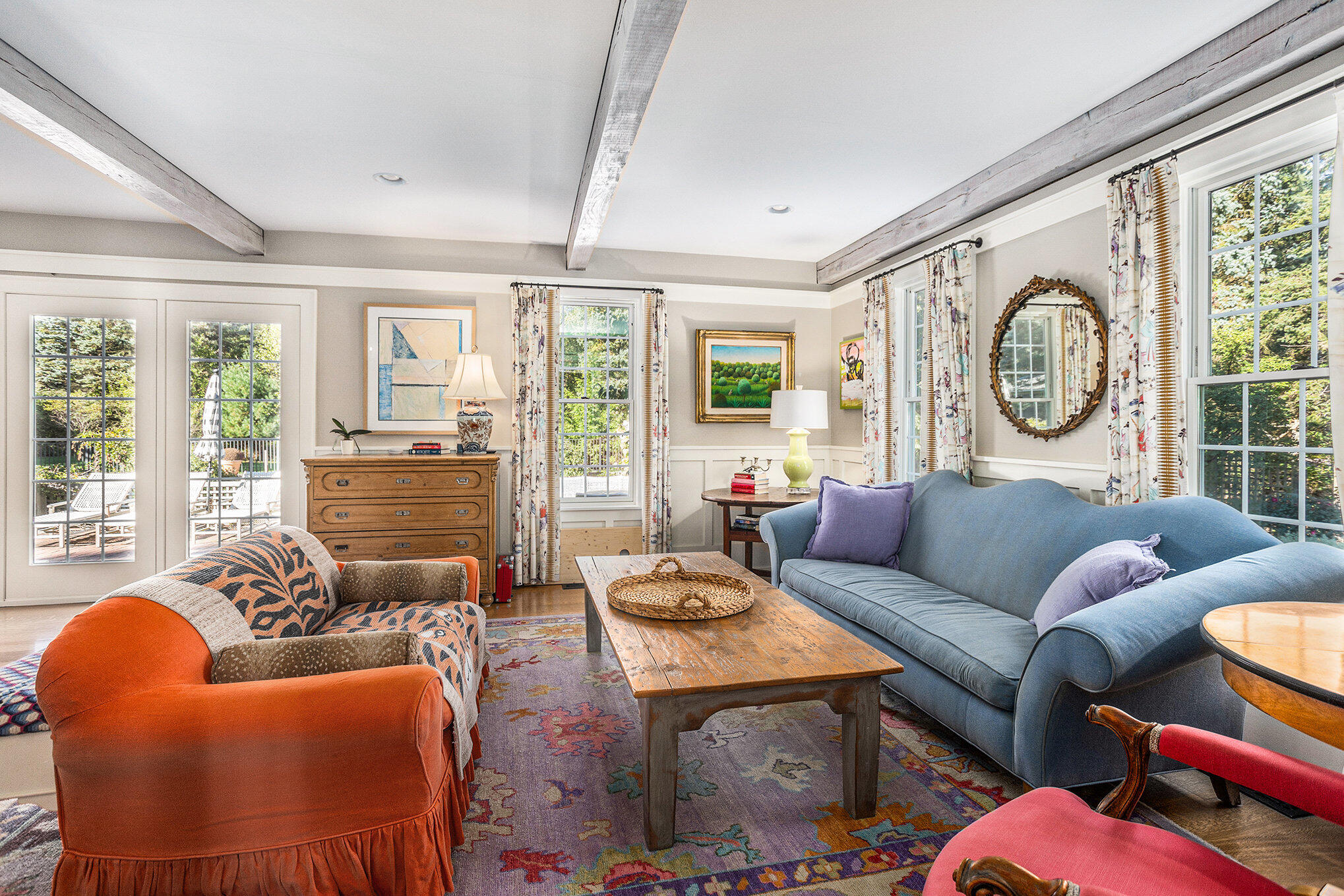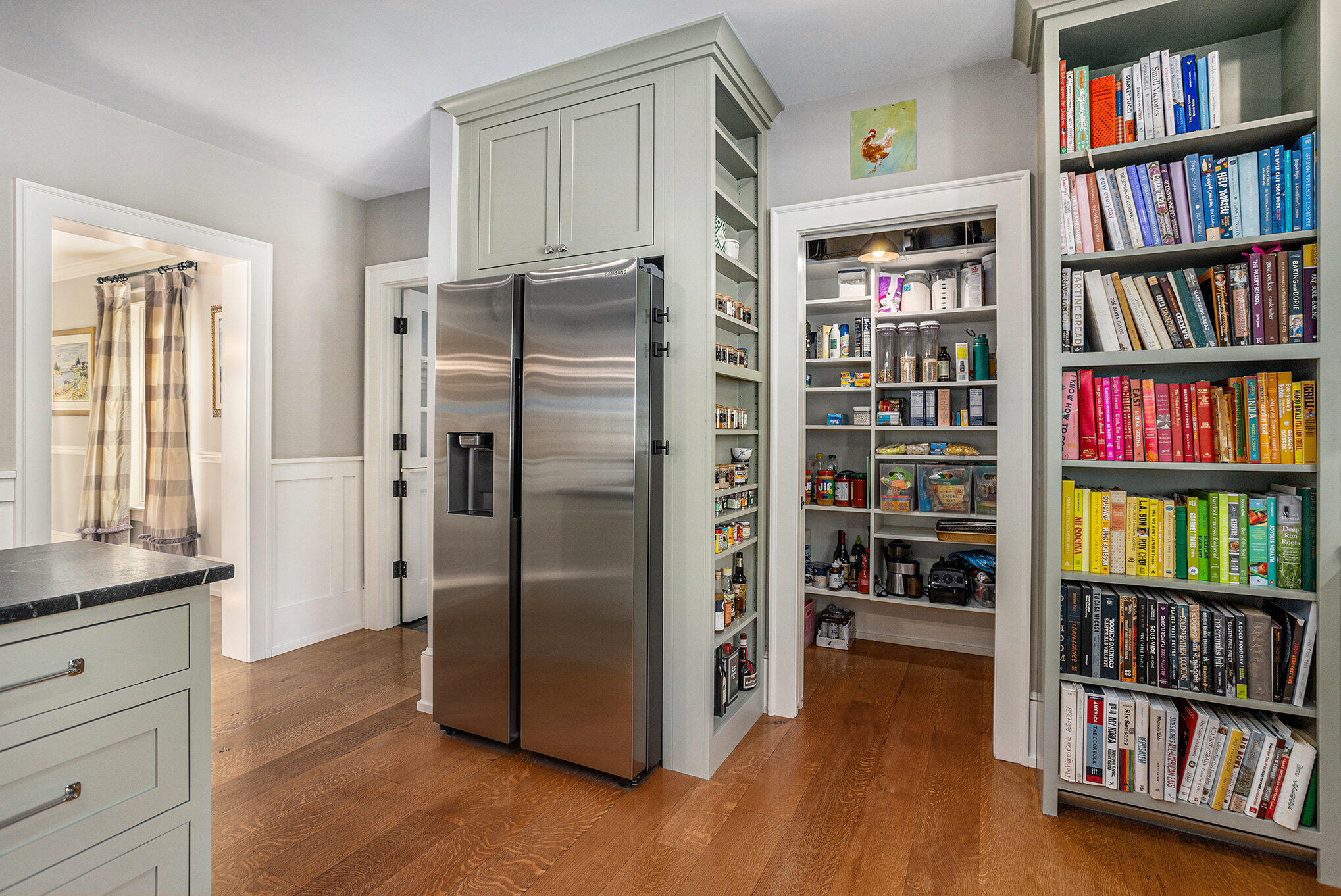 Welcome to this outstanding custom-built and thoughtfully designed home, nestled amidst five wooded acres and just a short drive to Portage and Kalamazoo. Constructed by Blok Builders, this beautiful traditional residence offers six bedrooms and five bathrooms, including an en-suite primary bedroom plus private and separate guest quarters. Enjoy classic quarter-sawn oak flooring, beamed ceilings, and multiple built-in bookcases throughout this charming home. Abundant natural light highlights the mature landscaping surrounding this expansive 5,500 sq. ft. home. The open-concept eat-in kitchen and family room are centered by a marbled black granite wood-burning fireplace, perfect for gatherings of any size. Every modern cook's convenience is available, including a six-burner plus griddle Five Star gas range with electric double ovens, a large walk-in pantry with bookcase, black soapstone countertops, and a convenient center island/snack bar.