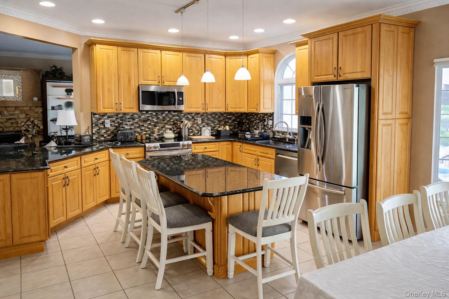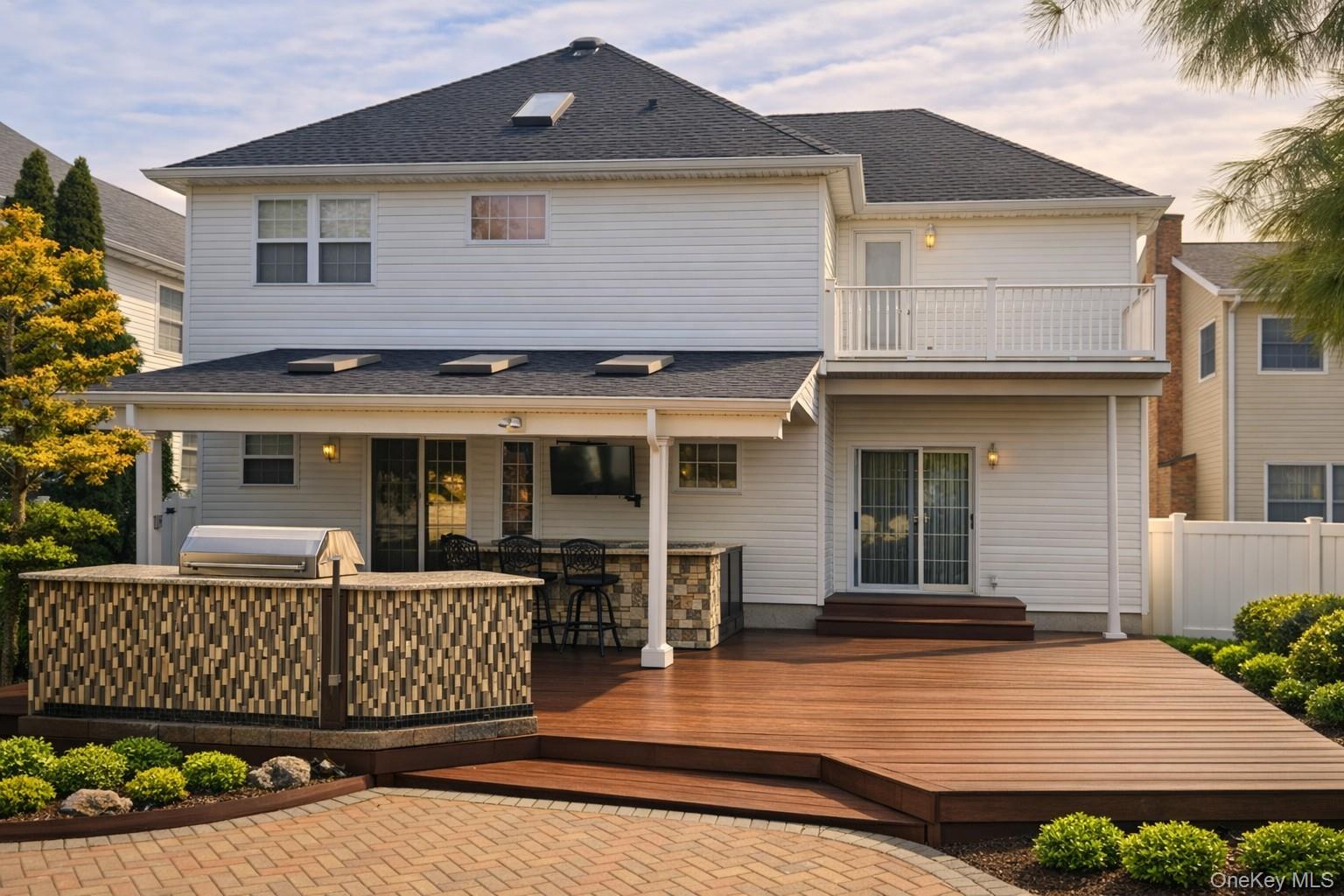 Perfectly maintained 3,000 sq ft residence on an oversized .37-acre property featuring an inground heated pool and expansive outdoor entertaining space. The home offers 4-5 large bedrooms and 3.5 bathrooms, including a primary suite with vaulted ceilings, two walk-in closets, a Jacuzzi tub, separate shower, and a private terrace overlooking the yard and pool. Enjoy hardwood floors throughout, a beautifully finished basement with pool table, and multiple gathering spaces - a living room and den, each with gas fireplaces and sliders to the back patio. The covered outdoor area is ideal for year-round entertaining. A spacious eat-in kitchen, formal dining room, and scenic staircase landing complete the elegant layout. Ample storage throughout adds practicality to this exceptional home. Updated Roof, CAC, Utilities.