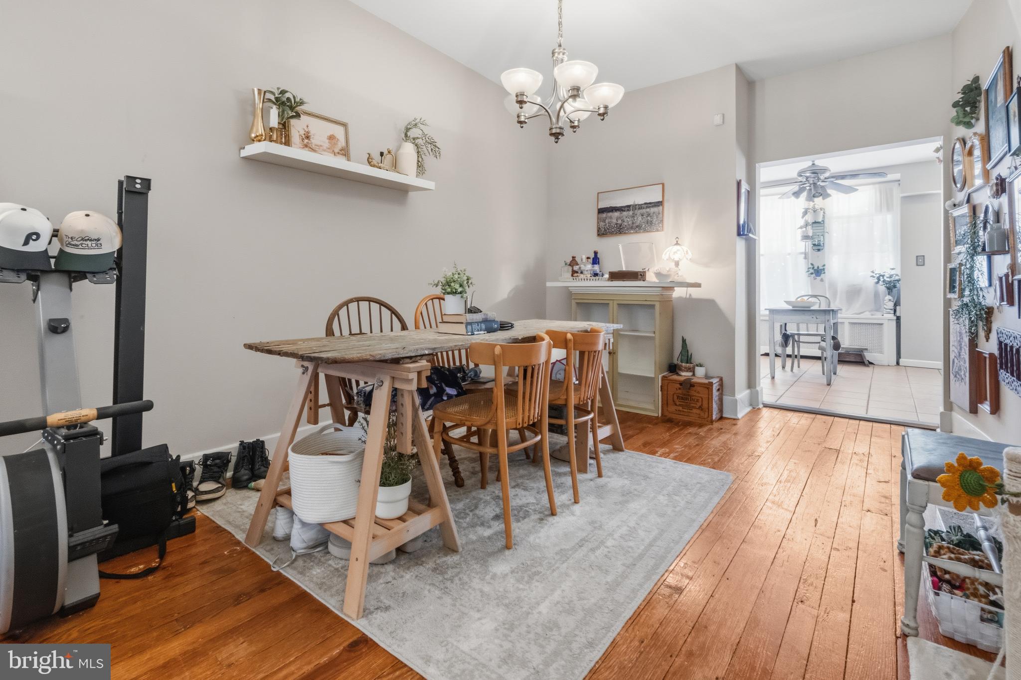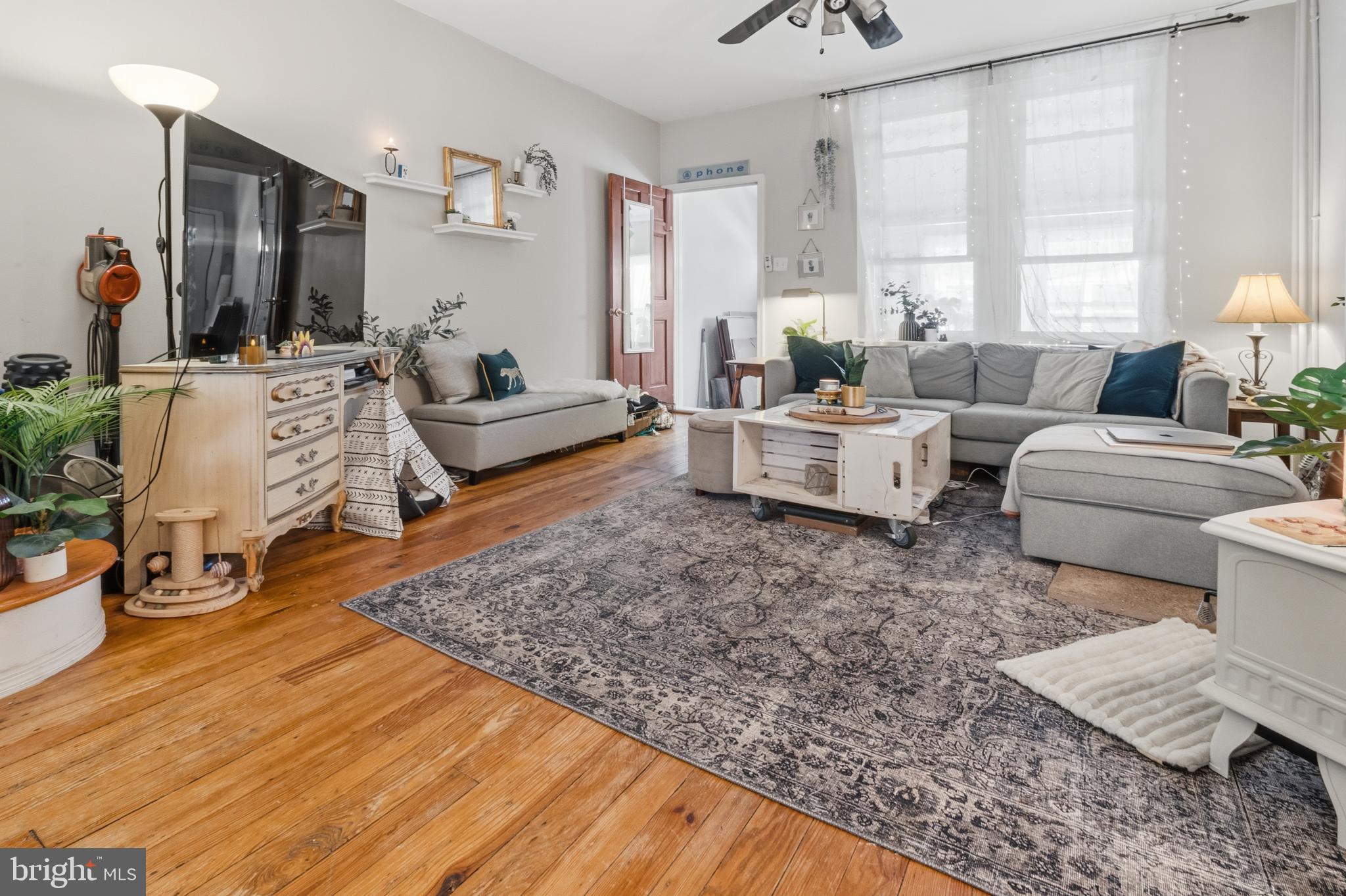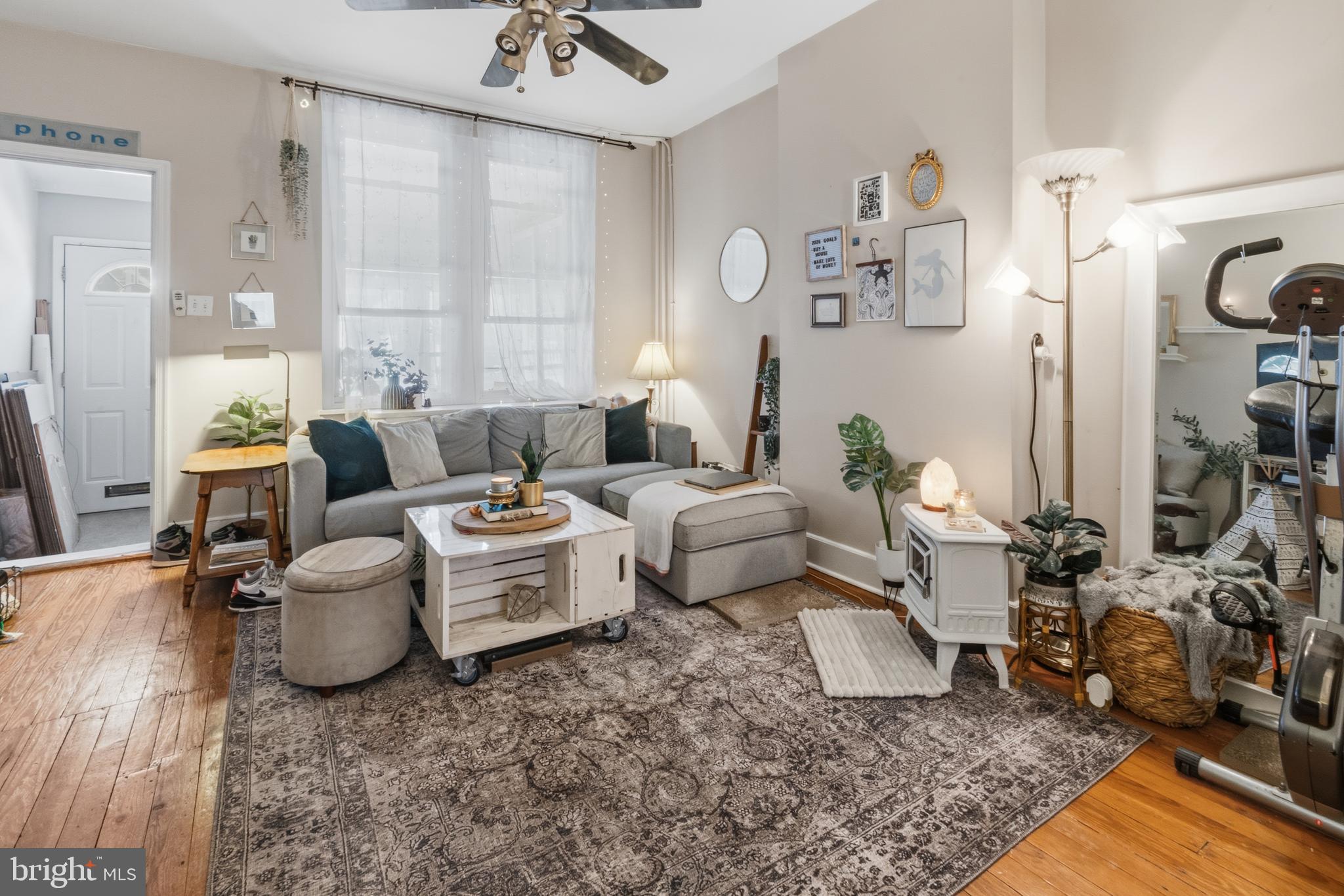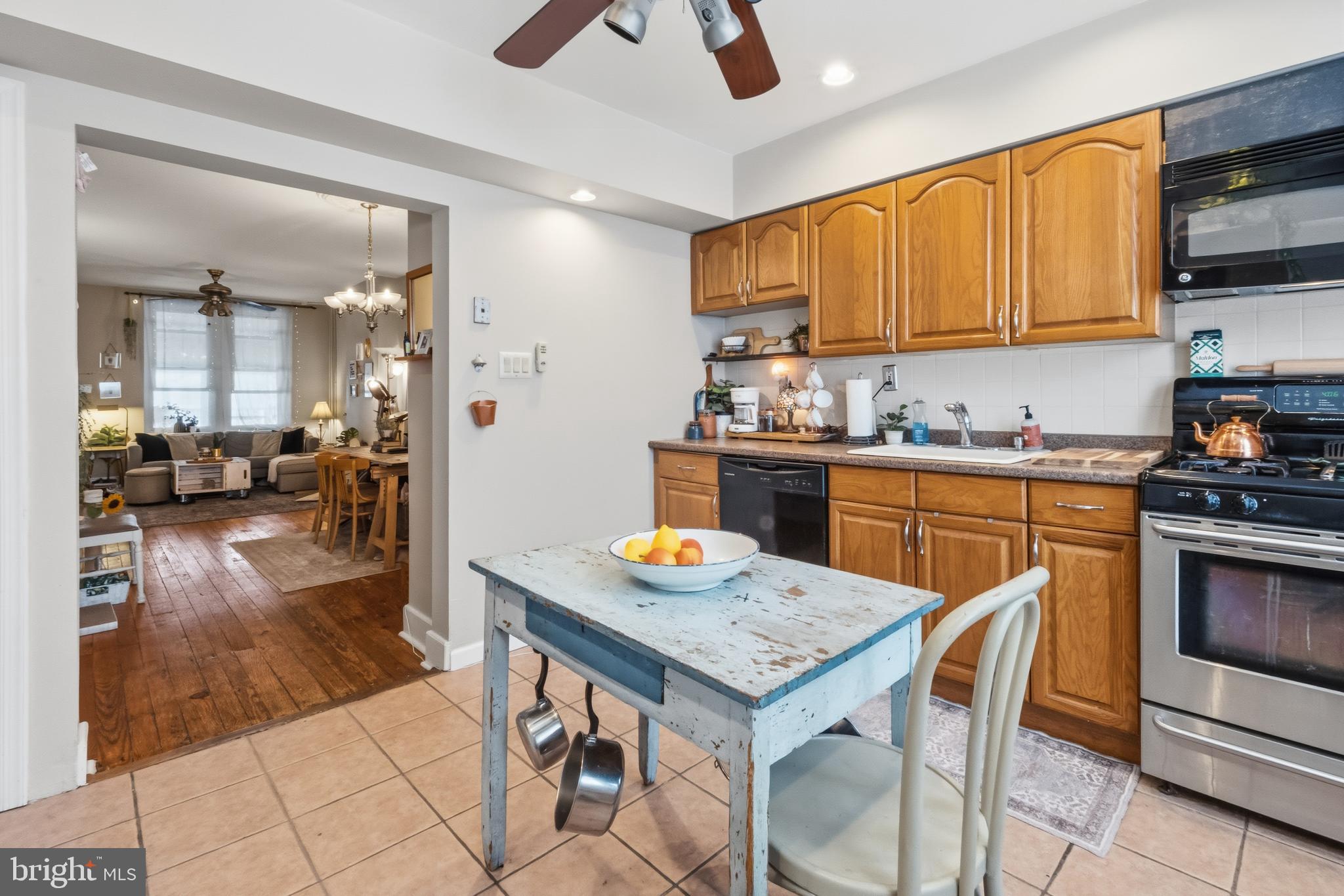 Nestled in the charming East Falls neighborhood, this delightful 3-bedroom, 1-bathroom rowhome exudes warmth and character, making it the perfect place to call home. Step inside to discover an inviting open floor plan that seamlessly connects the living and dining areas, perfect for entertaining or enjoying quiet evenings at home. The rich wood floors add a touch of elegance, while the ceiling fans provide a refreshing breeze throughout the space. The kitchen is a culinary enthusiast's dream, featuring stainless steel appliances, including a built-in microwave, dishwasher, and gas range, ensuring meal preparation is both efficient and enjoyable. Beyond the aesthetic charm, this home offers peace of mind with infrastructure improvements, including updated electrical and a replaced sewer line. The home boasts three spacious bedrooms, each offering ample natural light and comfort. The full bathroom is thoughtfully designed for convenience, catering to your daily routines with ease. For added functionality, the laundry area is conveniently located in the basement, equipped with a front-loading dryer and washer, making laundry day a breeze as well as providing plenty of additional space for storage. Outside, the property features a charming patio, ideal for morning coffee or evening gatherings under the stars. Located less than a mile from a commuter rail station and bus stop, commuting to work or exploring the city is incredibly convenient. This residence is not just a house; it's a place where memories are made, and comfort is found. Whether you're hosting friends, enjoying a quiet evening, or simply unwinding after a long day, this townhouse offers the perfect backdrop for your life's moments. The East Falls community sits along the banks of the Schuylkill River and is surrounded by outdoor recreation, including the Kelly Drive loop, the nine-acre McDevitt Recreation Center, and the open green space of McMichael Park. Local amenities such as the historic Falls of Schuylkill Library and various neighborhood bistros, shops, and cafes are all within walking distance. Don't miss the opportunity to make this charming property your own!
