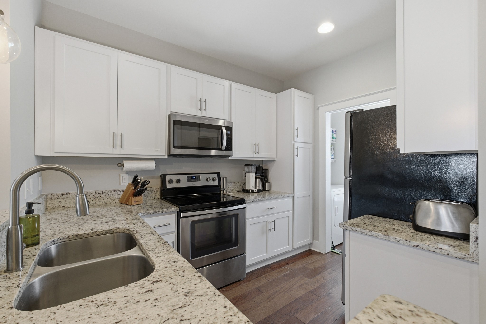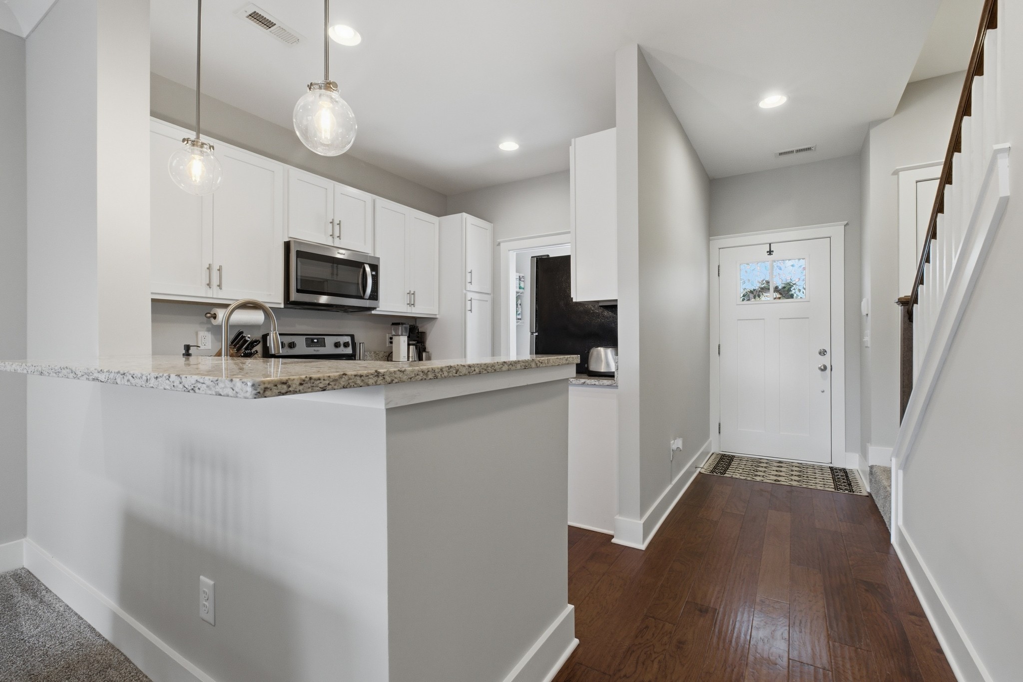 Two bedrooms. Two private en-suite baths. One smart floor plan that most Antioch townhomes at this price point do not offer. That is the story of 928 Governors Court, a one-owner home in Mill Ridge - and once you walk through it, the value becomes obvious. The covered front porch opens into a foyer with rich wood flooring that carries through the main level. Staircase rises to your left, sightline runs clean to the rear patio, and a tucked main-floor half bath handles guests. The kitchen is built to anchor the home. White shaker cabinetry, beautiful counters, a full stainless appliance package, and a peninsula that seats two and doubles as prep space. It opens directly into the combined living and dining room - one continuous entertaining space, not a chain of closed-off rooms. Upstairs, the floor plan earns its price. The primary suite carries a walk-in closet, a dedicated linen closet, and its own en-suite full bath with an extended vanity. The second bedroom is similarly sized with an extra-large closet and its own en-suite full bath. Both baths are finished to the same upgraded counters, white shaker vanities, framed mirrors, fixtures, tile plank flooring, and full tub-showers. Attic storage is built in for real overflow. Out the back door sits your own privately fenced patio - large enough for lounge seating and a grill, with full privacy and access to the common area. Look past the fence and you get real green space, not the back side of another building. The home and community both carry a clean, modern look and meticulous landscaping. The association covers exterior, grounds, insurance, and trash, so ownership stays simple and the budget stays predictable. Mill Ridge delivers a smaller neighborhood feel while keeping shopping, dining, and commuter routes within easy reach. Dual en-suites. Private outdoor space with real green behind it. Move-in ready. Worth seeing in person - schedule your showing.