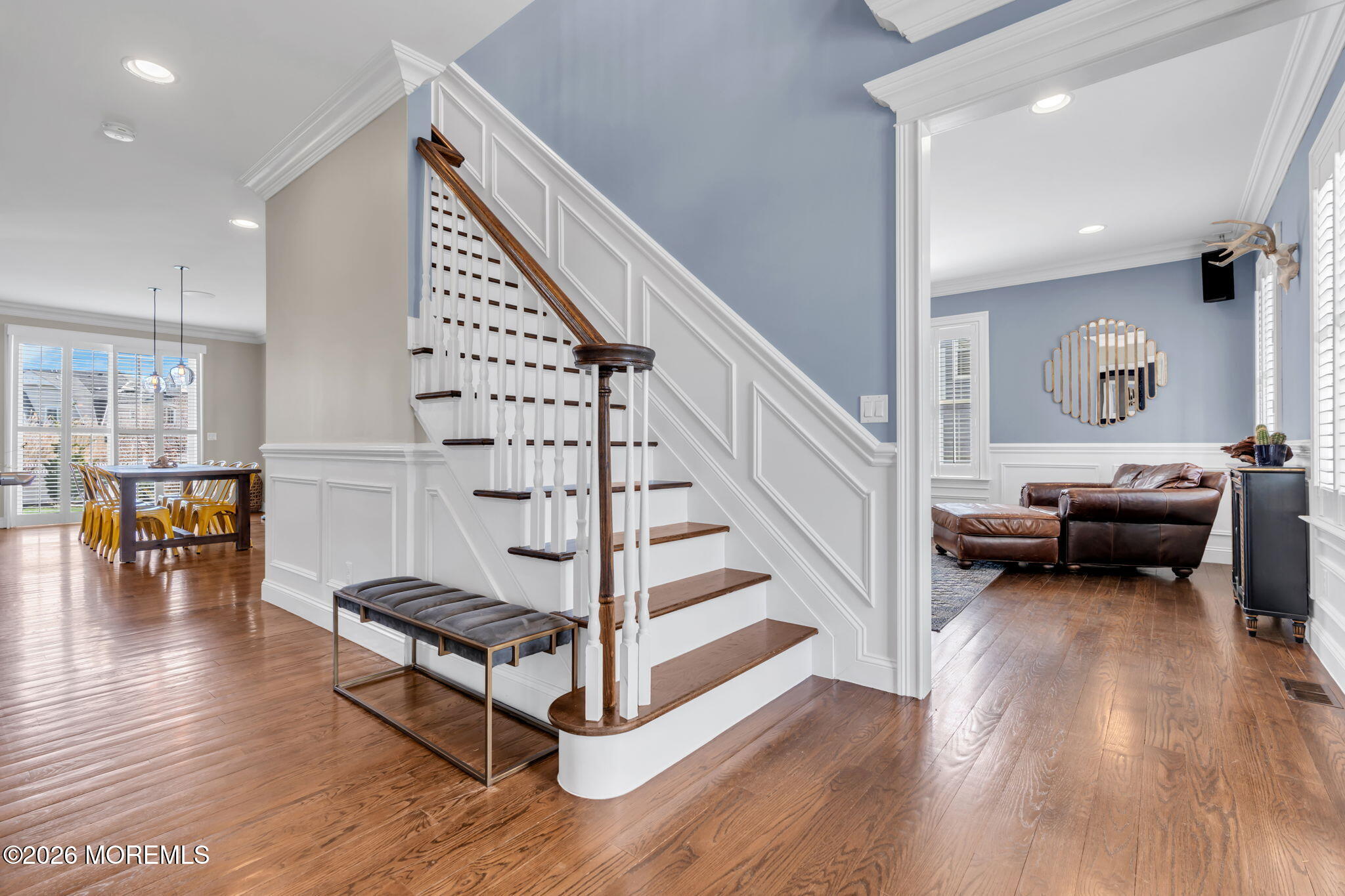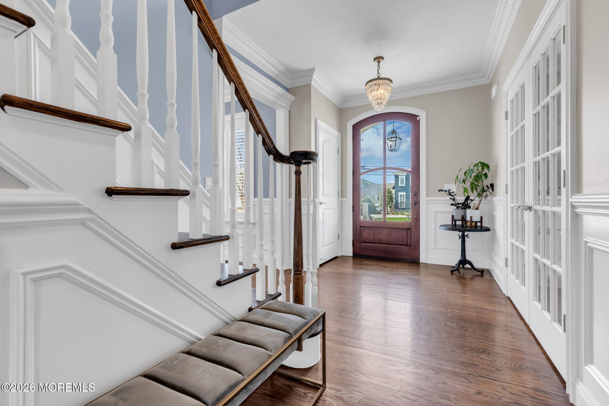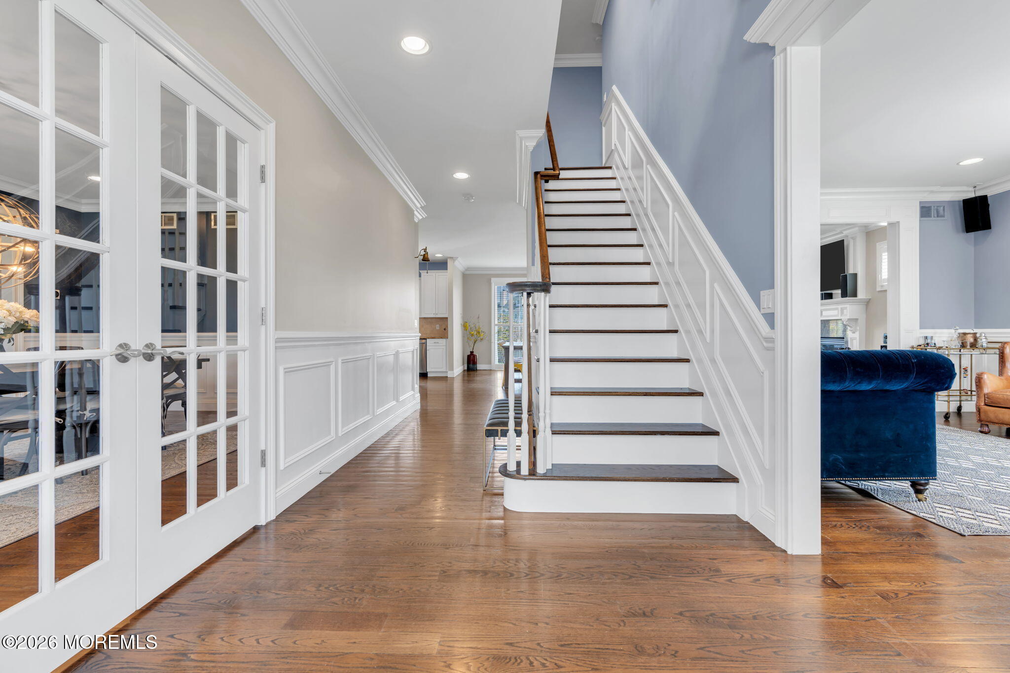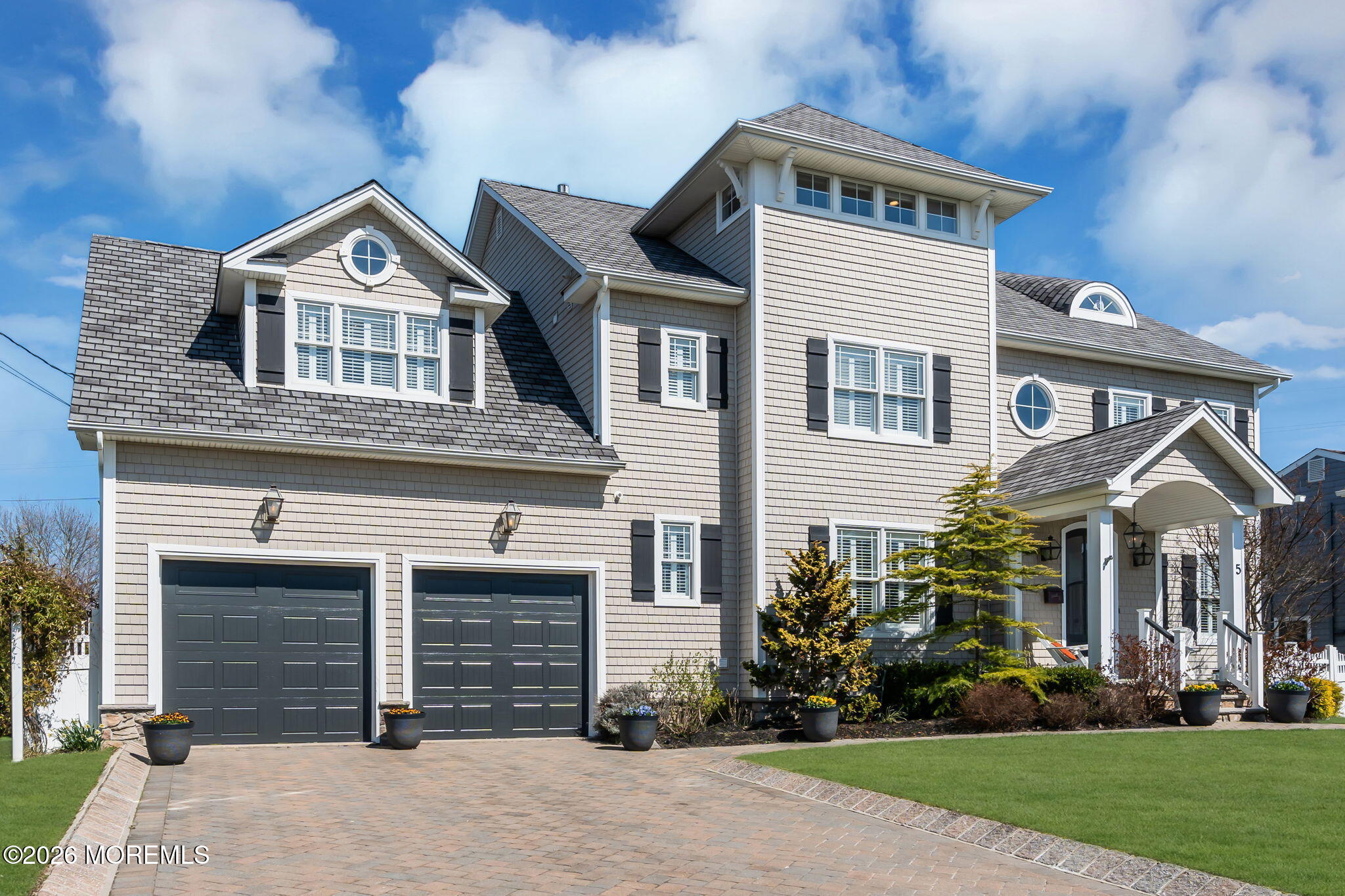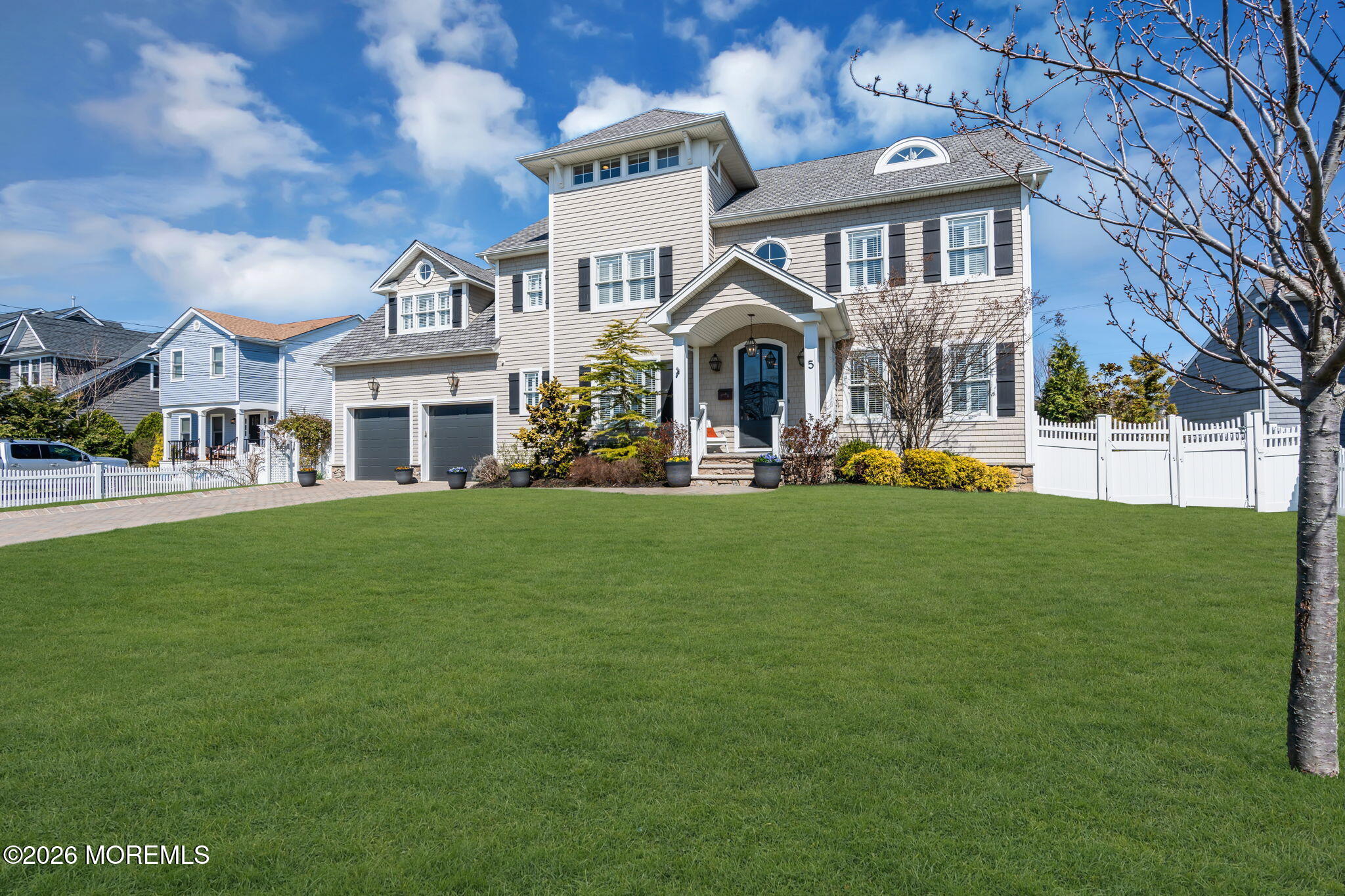 Introducing...5 Riverdale Avenue, a timeless home made for summer days, sun kissed views, & year-round memories, located just one block from the sand & a few blocks to downtown, in the high and dry section of Monmouth Beach. The classic front entry foyer greets you with custom millwork, glass paneled French doors leading you to an elegant elegant dining room and a traditional formal room. Both oversize rooms frame a sweeping staircase & showcase the exquisite hardwood floors found throughout the first & second floors. Ideal for entertaining, the eat-in kitchen flows seamlessly into the living room, offering 9' ceilings, gas fireplace and an abundance of natural light. As the central gathering space of the home, the chef's kitchen shines with an oversized center island and stainless steel appliances, including large double Liebherr refrigerators, 3 ovens, a Bertazzoni stove, and a wine fridge. Off the kitchen, tucked away with its own private staircase you will find a second floor game room which could easily double as an office or be transformed into another bedroom suite. The four second-floor bedrooms are thoughtfully arranged for comfortable everyday living. The primary suite feels like its own private retreat, complete with a balcony, wet bar, and two walk-in closets complete with a second set of washer/dryer. The bathroom includes an oversized soaking tub, double vanity, and a spacious shower. The additional 3 bedrooms, all w/ custom fitted walk in closet systems, are generously sized with 2 connected by a beautifully updated Jack and Jill bathroom. The 3rd bedroom, also an en-suite, offers a generous walk-in closet and plenty of natural light from the oversize windows. The third floor offers ample living space that can be utilized as a playroom, game room or made into extra bedrooms-with balcony access and beautiful sunset and water views. Step into the exceptionally large backyard and feel the true size of the property. With plenty of room for expansion, it is framed with mature trees, lined with lush green grass and accented with a firepit perfect for relaxing on cool nights or breezy summer evenings. A 2-car garage with high ceilings adds extra space for storage, bikes, and all your beach gear. Whether you're looking for a full-time home or the perfect summer escape, 5 Riverdale is a place where you can truly enjoy everything Monmouth Beach has to offer.