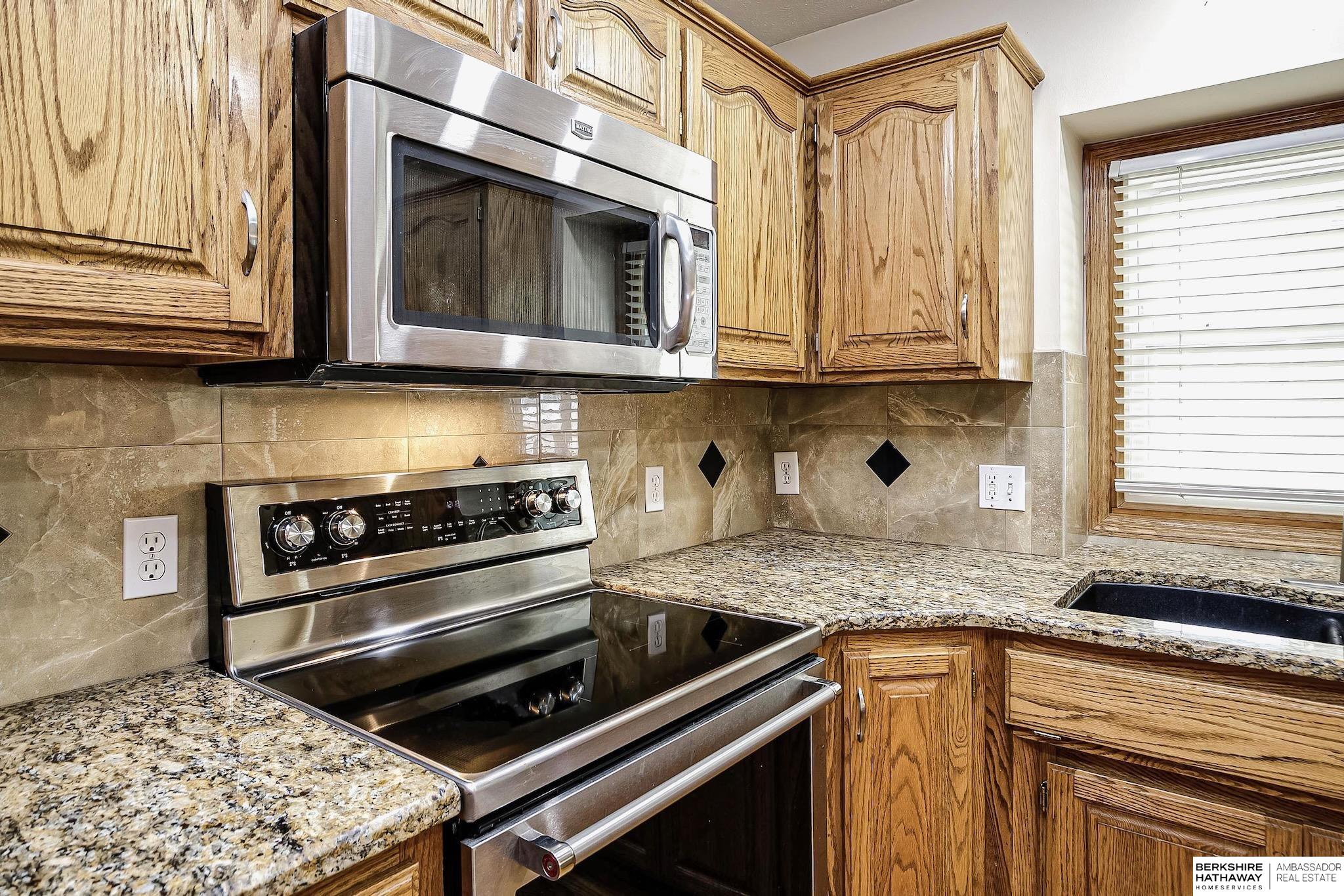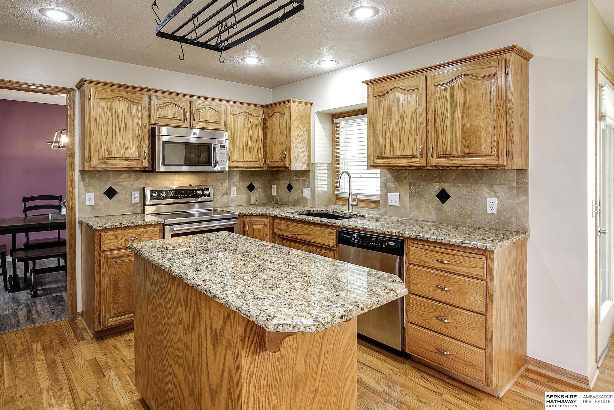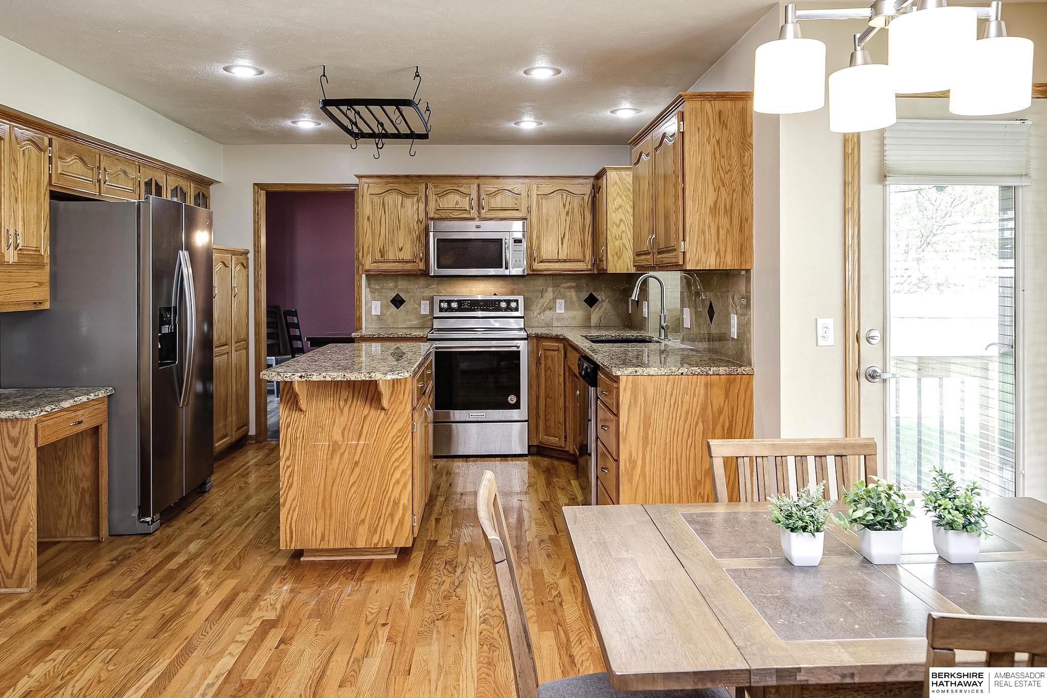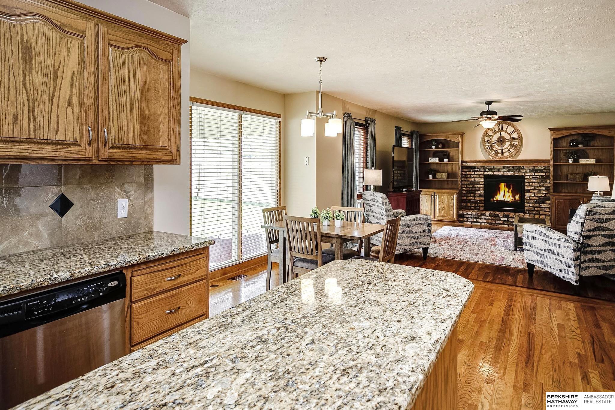 This well-appointed 2 story in Millard, sits on a corner lot directly across from Black Elk Elementary. This home boasts vinyl siding, gutter guards and a sprinkler system for a low maintenance exterior. There are 4 bedrooms with walk-in closets on the second floor and the laundry room is on the same level. The main and 2nd floor bathrooms have all been updated. There is new LVP in the living and dining rooms along with new tile in the foyer and main 1/2 bath. The doors and trim on the 2nd level have also been updated. Entertain in the backyard with a new 6ft fence or under the covered patio. The kitchen holds stainless steel appliances and granite countertops. This home is conveniently located close to schools, parks and shops.