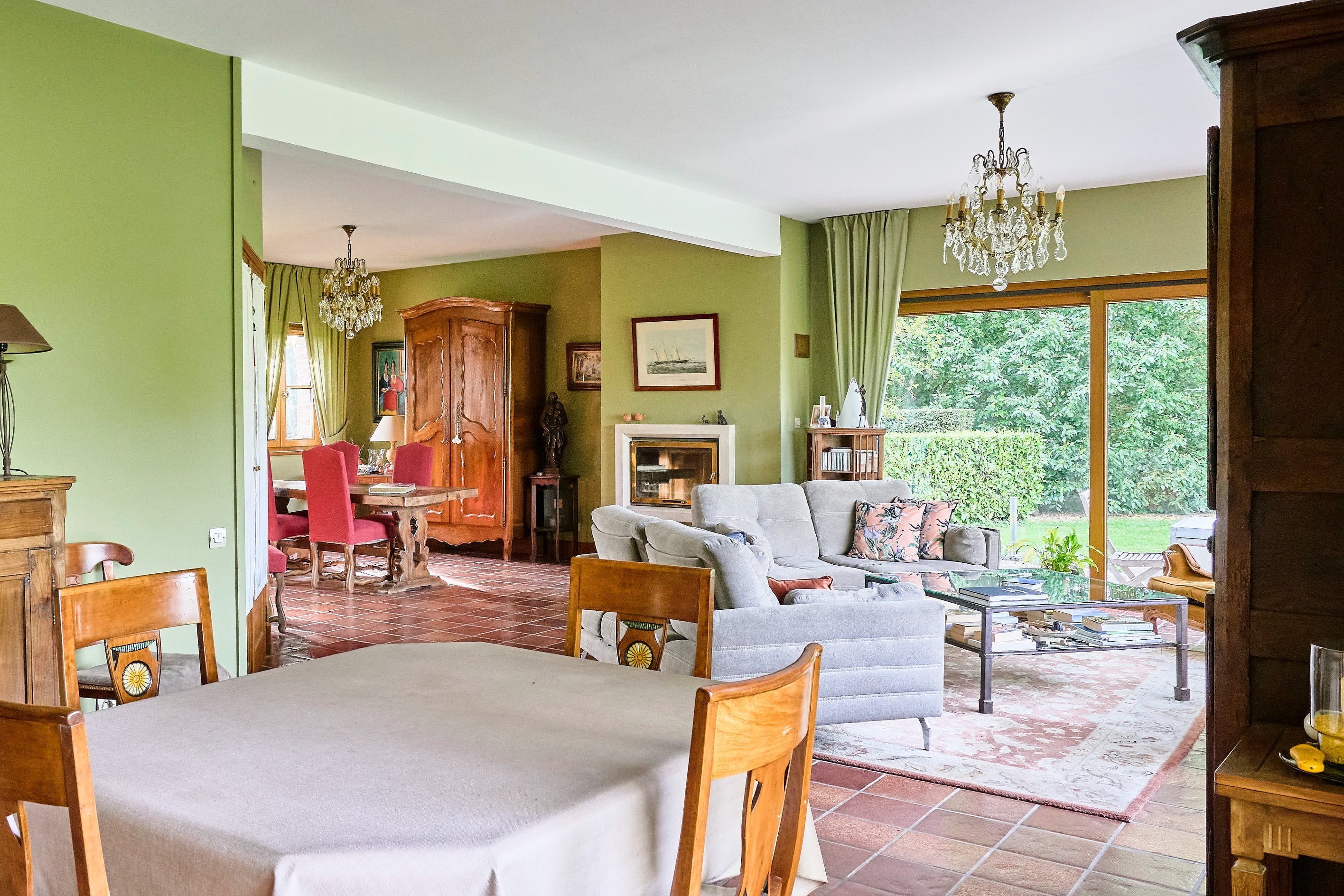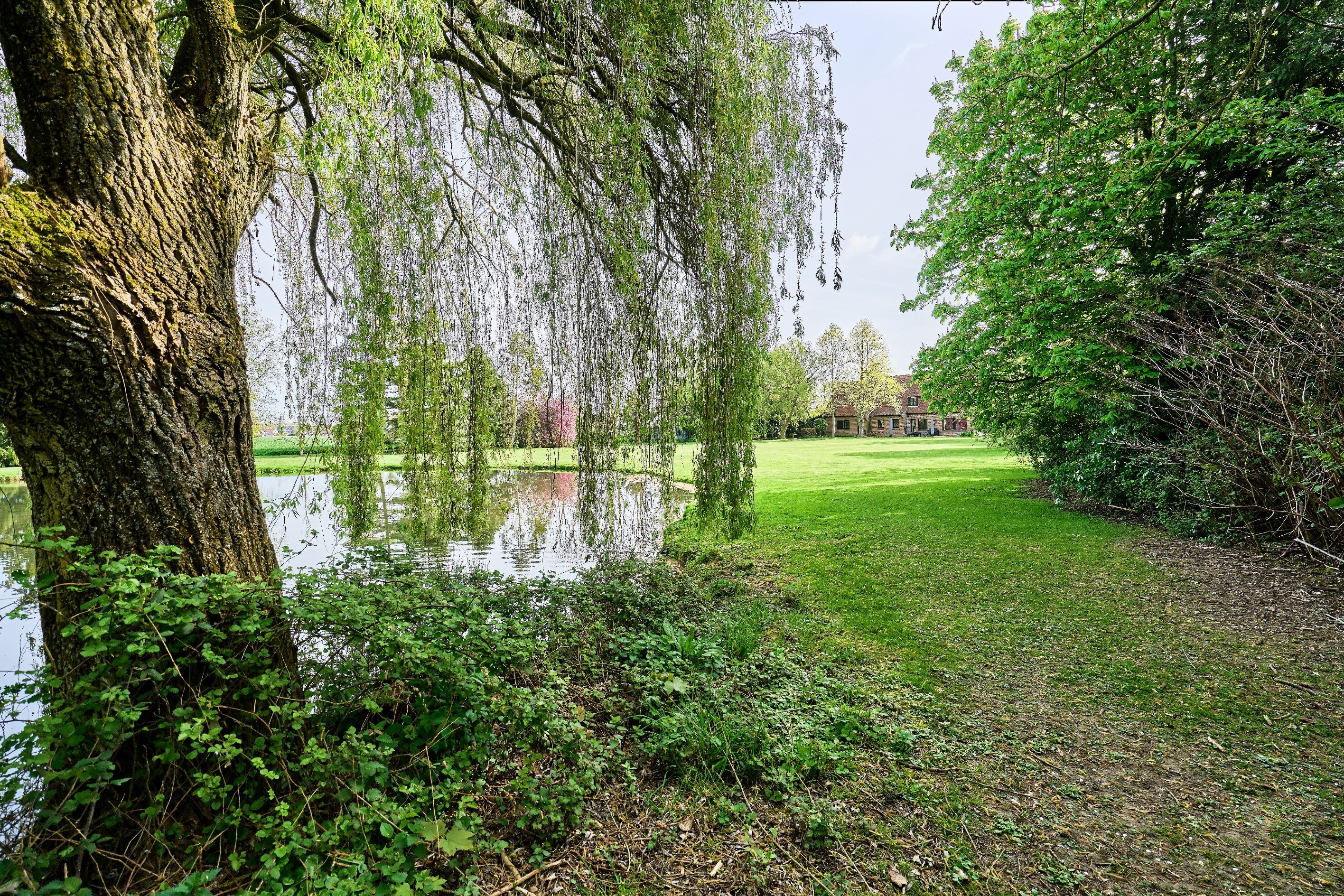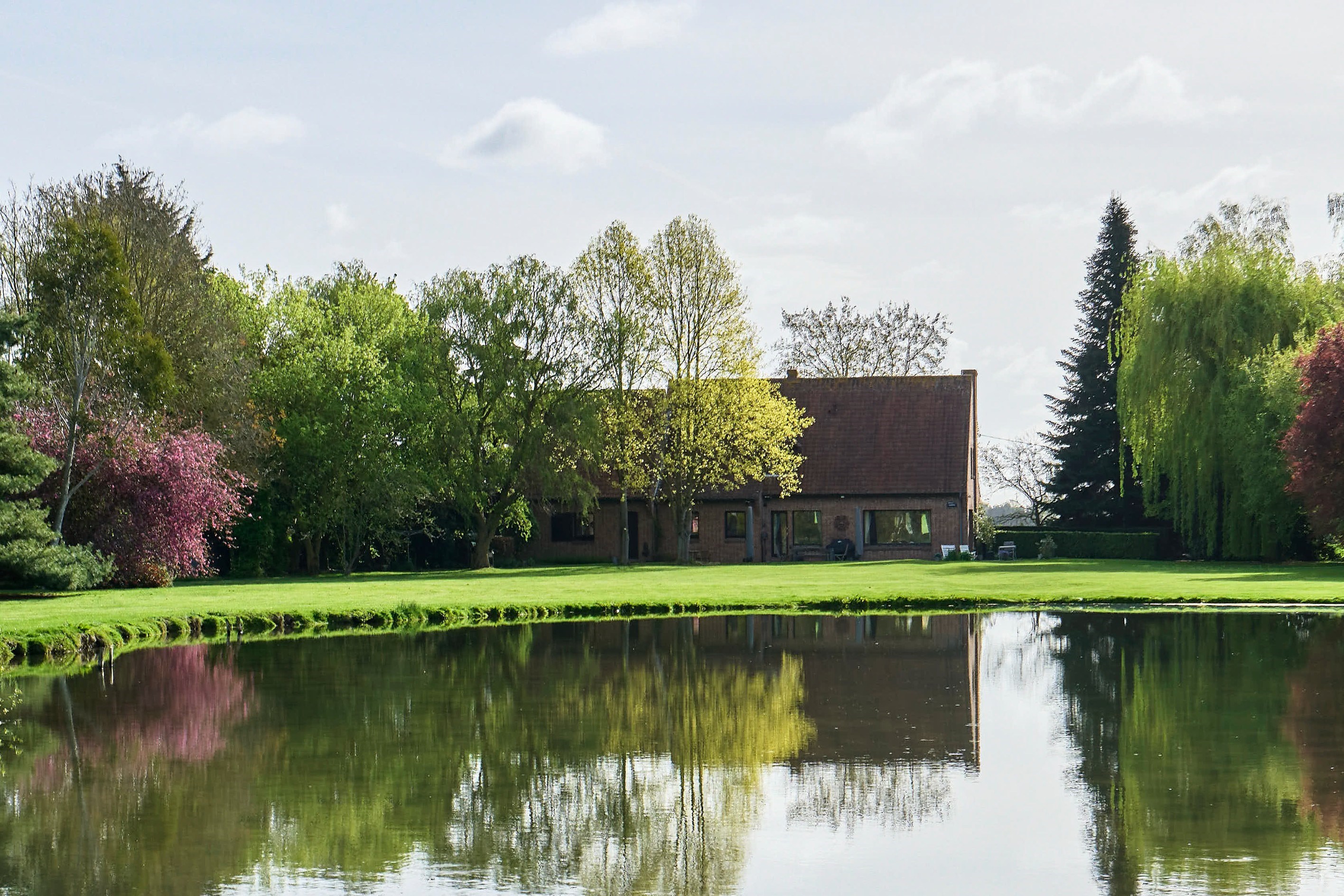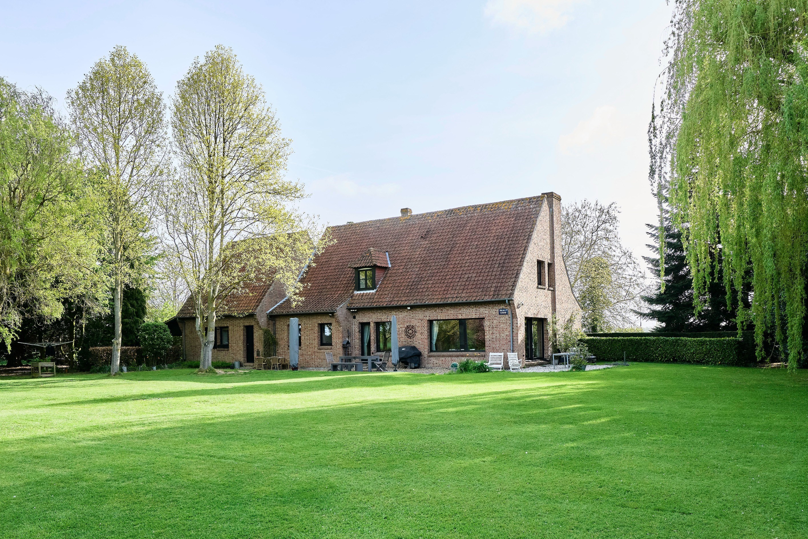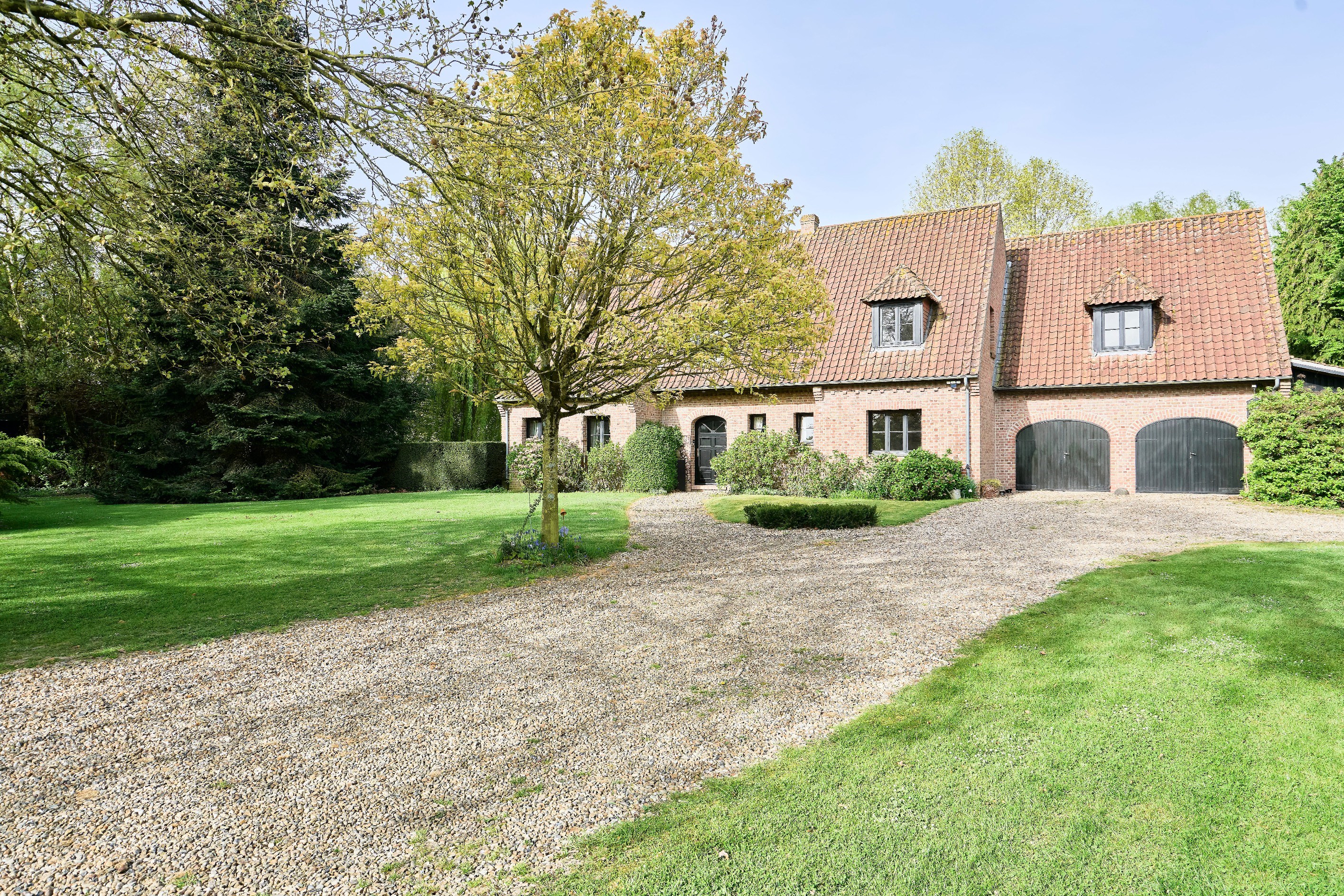 Steenwerck — set in the heart of the countryside while remaining in close proximity to urban hubs, this superb architect-designed residence, built in 1989, offers 242 sqm of living space within an exceptional environment on a beautifully landscaped plot of approximately 1.5 hectares. From the moment you enter, the tone is set with a spacious hall enhanced by a vestibule and separate guest facilities. The living area, particularly bright, is distinguished by its large bay windows offering uninterrupted views over the property. It features an elegant lounge with a wood-burning fireplace fitted with an insert, extended by a welcoming dining area. The fully equipped independent kitchen combines functionality and practicality. The ground floor also includes a room currently arranged as an office, a shower room, and a laundry room. Upstairs, the night area offers generous volumes, including a vast principal bedroom with two adjoining storage rooms, a landing arranged as a reading space or TV lounge, three additional bedrooms, and a fully appointed bathroom. A large garage accommodating two vehicles, a carport, and a cellar complete the amenities of this property. Outside, a beautiful terrace invites relaxation while offering stunning views over the sumptuous landscaped park, planted with rare species and centered around a superb pond, creating a rare and preserved living environment. An exceptional property combining architectural quality and art de vivre in a breathtaking setting, just 10 minutes from Armentières and 25 minutes from Lille.