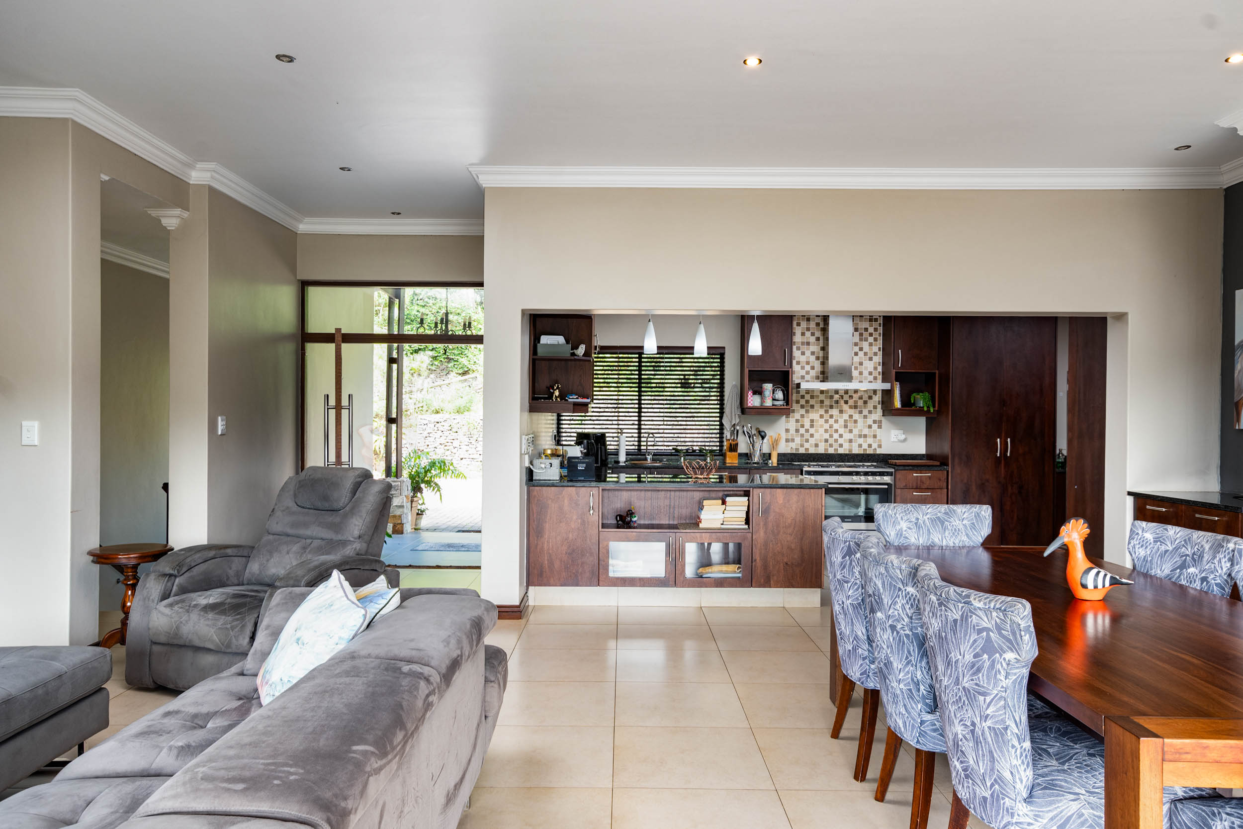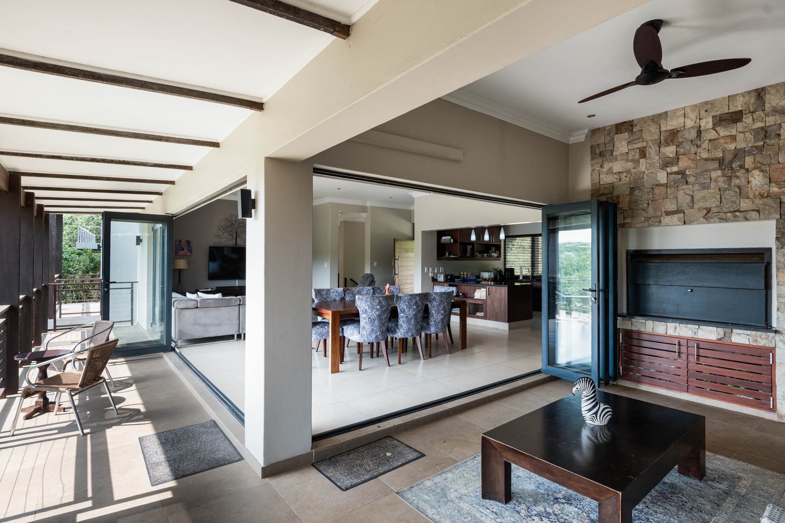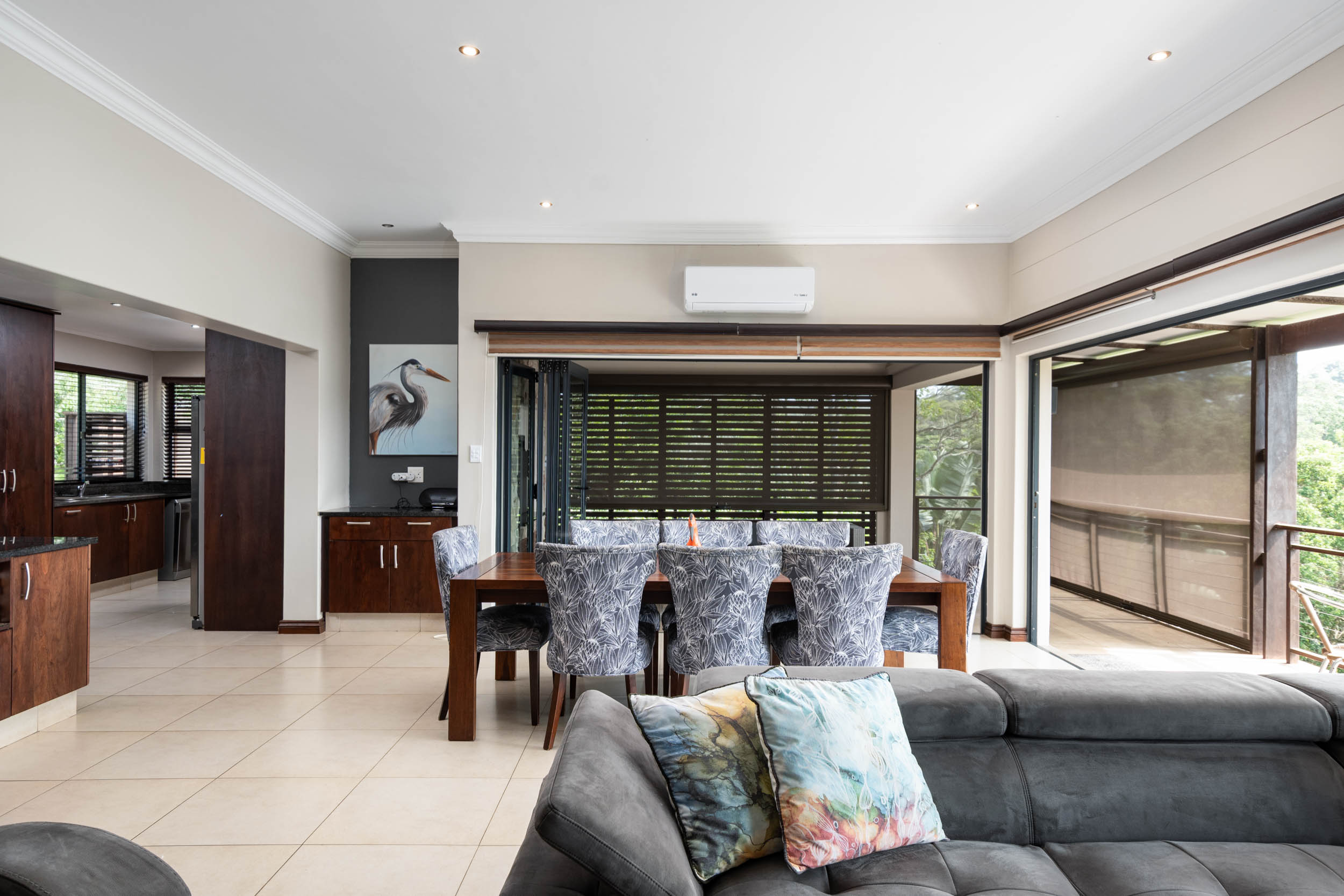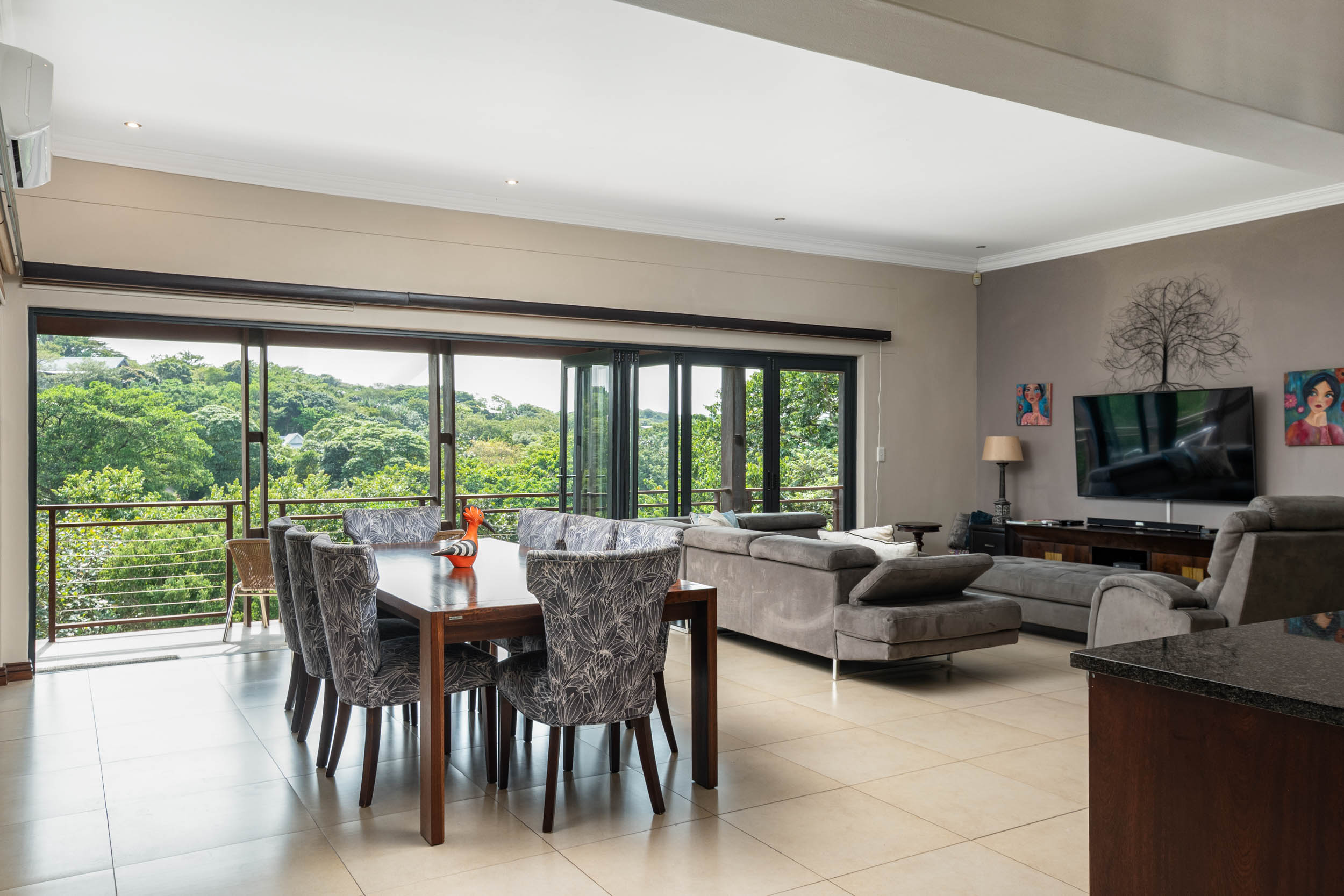 This elegant double-storey residence is set within the prestigious Simbithi Eco Estate, offering refined living surrounded by indigenous forest and tranquil dam views.
