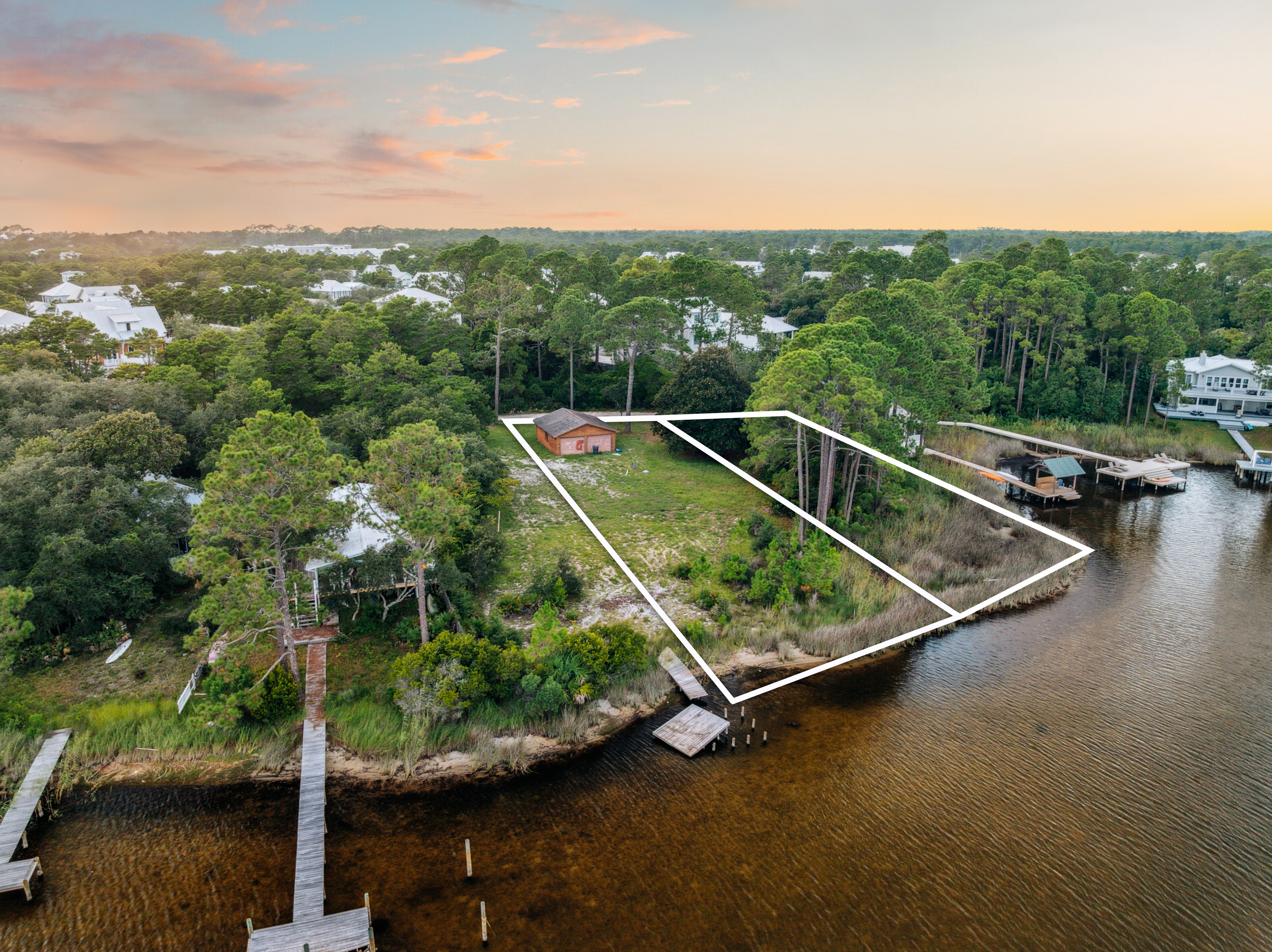 A rare opportunity to own two premier lakefront homesites on iconic Eastern Lake, this offering includes Lots 9 and 10—creating an expansive and private setting rarely available south of Scenic Highway 30A.With over 200 feet of direct frontage along one of 30A’s rare coastal dune lakes, the property offers a serene blend of natural beauty, scale, and potential. Gently positioned along the water’s edge, these homesites capture tranquil lake views framed by mature trees and native landscape, creating an ideal backdrop for a custom coastal retreat.Eastern Lake provides a unique connection to both freshwater and the Gulf, allowing for paddleboarding, kayaking, and boating from your future backyard. Whether enjoying quiet mornings on the water or evenings by the shoreline, the setting offers a relaxed and timeless coastal lifestyle.Located in the heart of Seagrove Beach along the eastern corridor of 30A, the property is just moments from the charm of Seaside, the architecture of Alys Beach, and the vibrant dining and lifestyle offerings of WaterColor and Rosemary Beach—while still maintaining a sense of privacy and escape.Together, Lots 9 and 10 present a unique opportunity to create a thoughtfully designed waterfront residence or a private compound with room to expand. A rare combination of location, scale, and natural surroundings, this offering represents an exceptional canvas for a legacy property along one of 30A’s most sought-after settings.