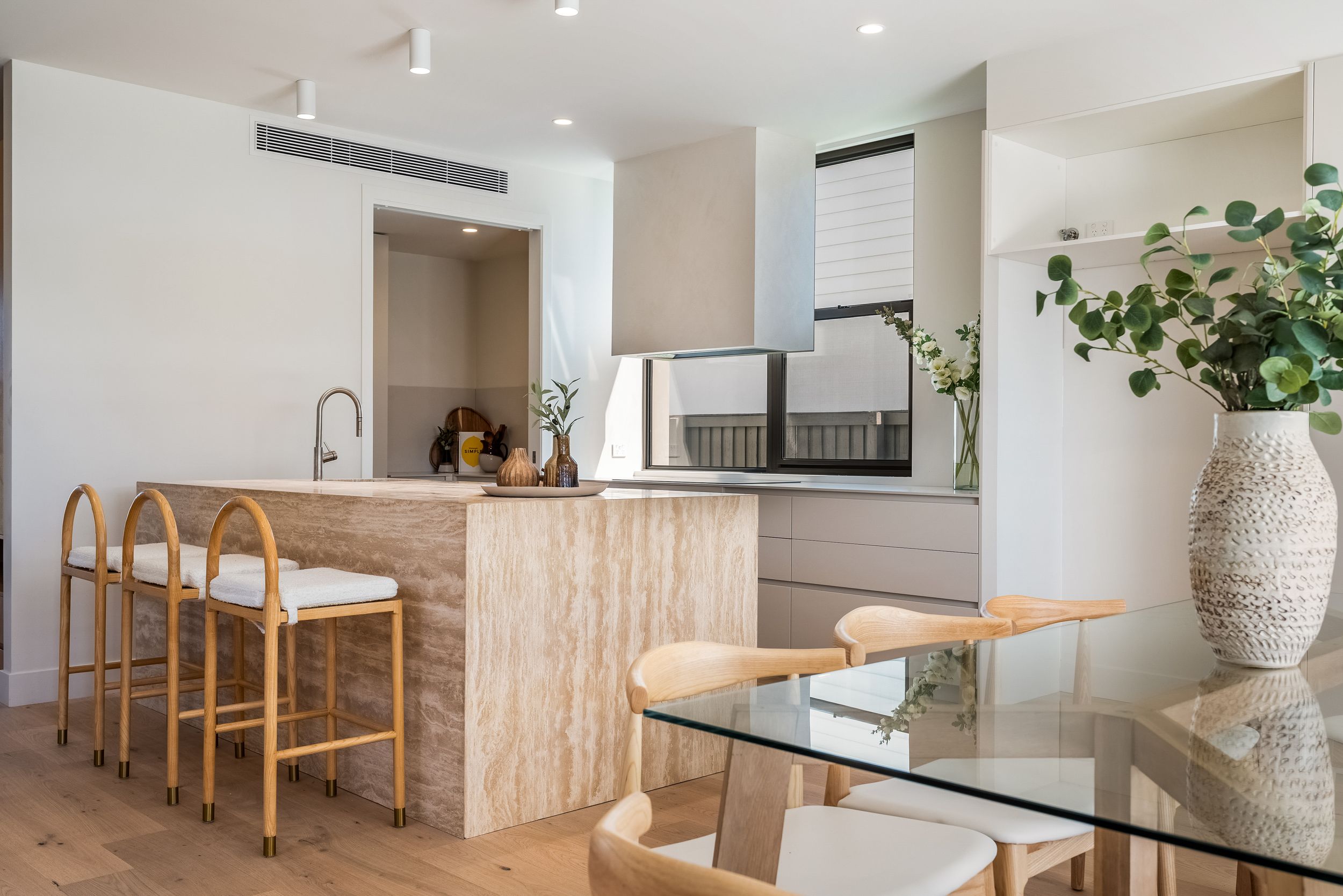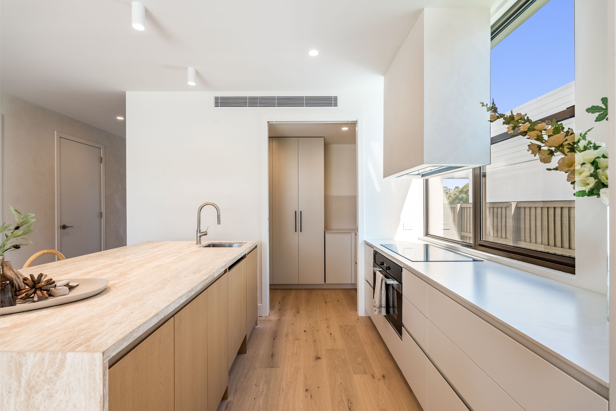 - Designer kitchen with travertine island, bespoke 2Pac joinery, butler's pantry and premium Miele & Fisher & Paykel appliances