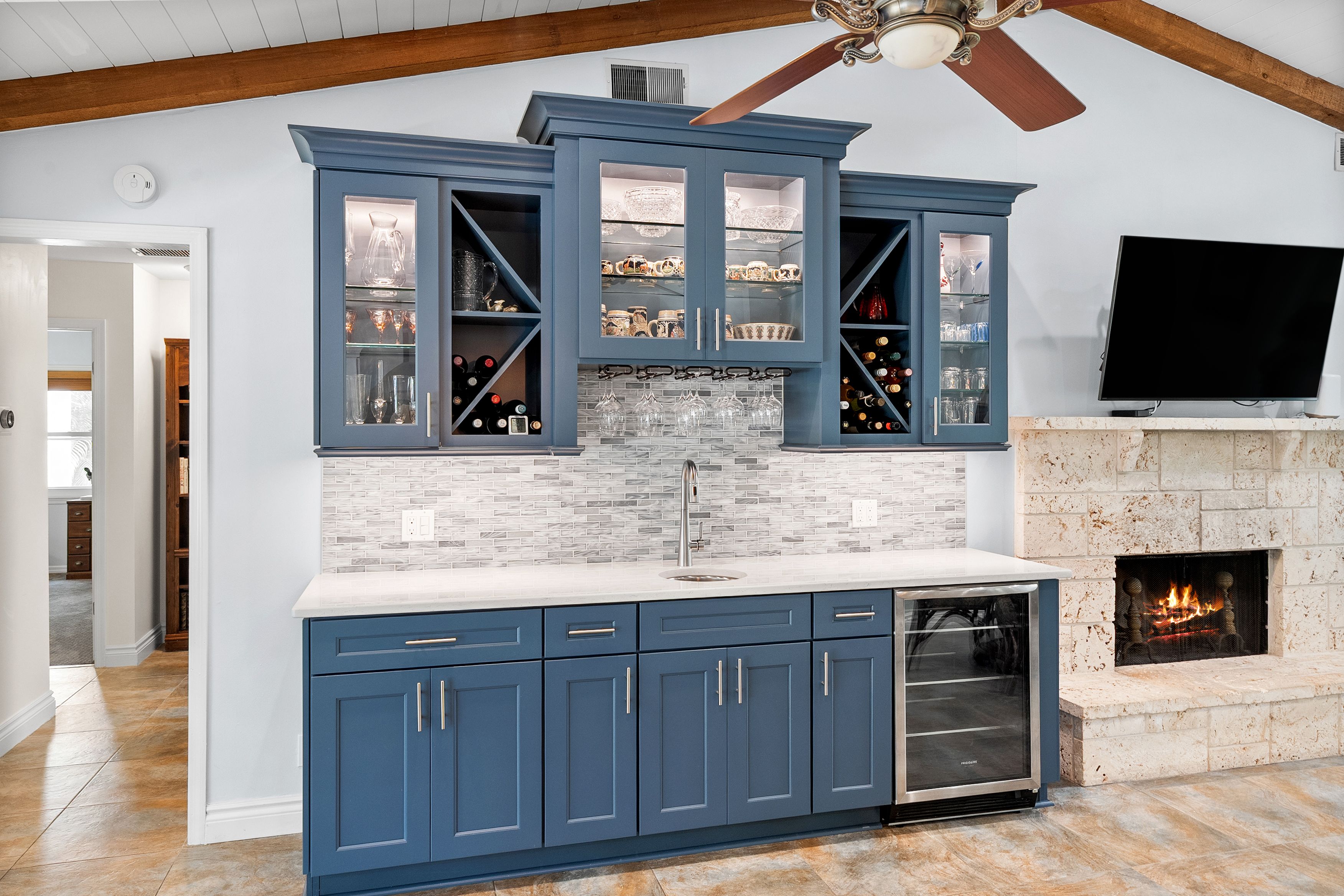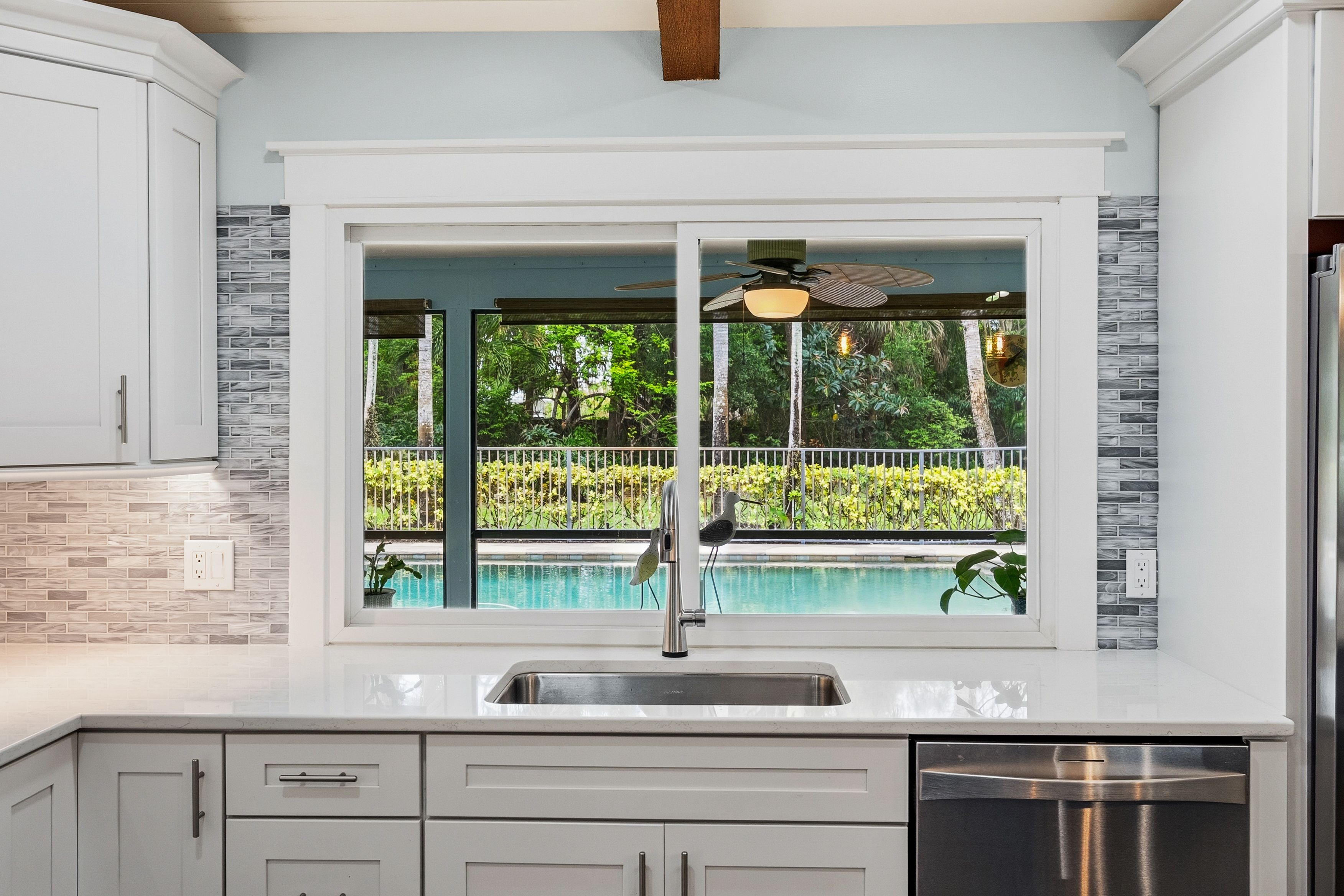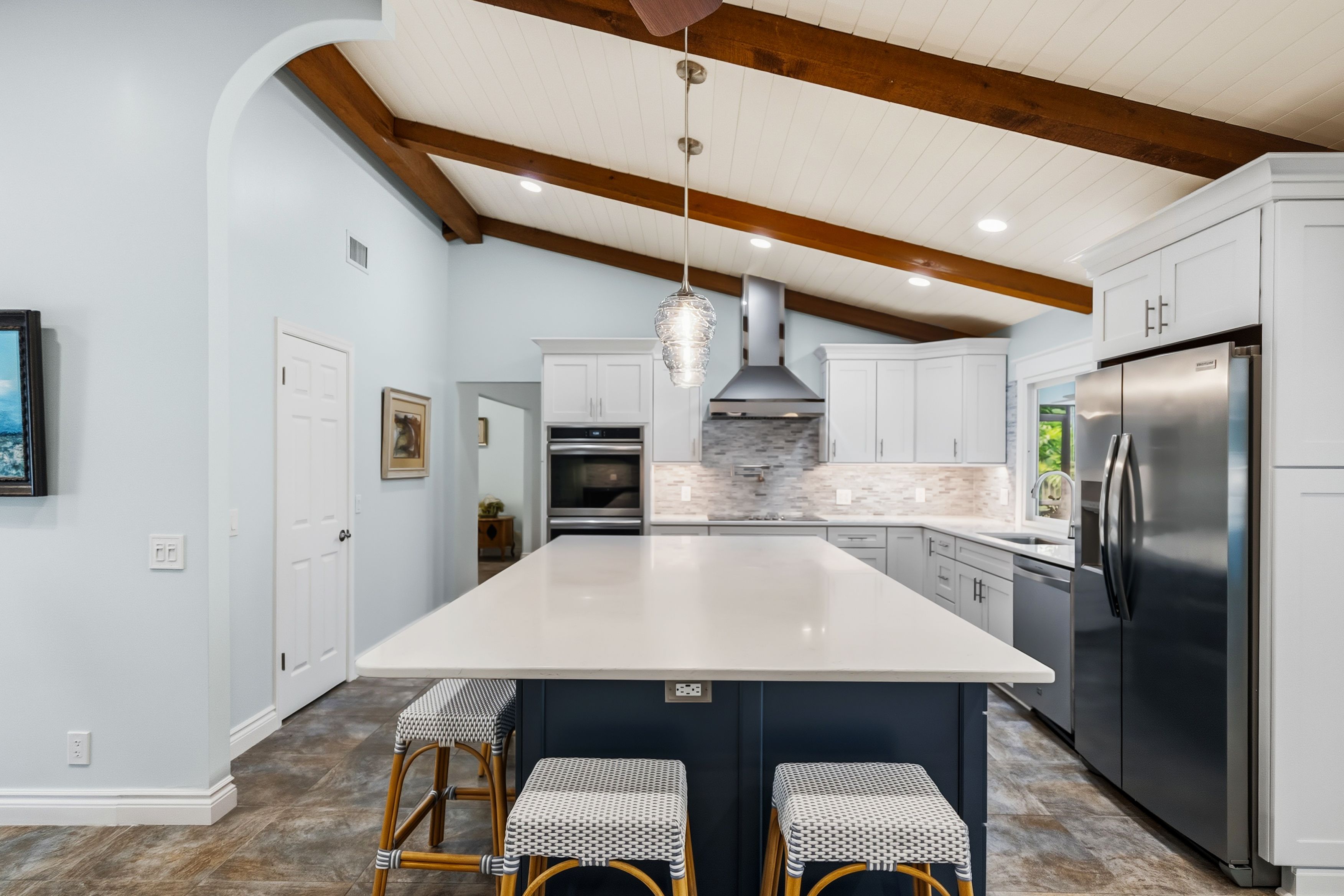 Located in one of Jupiter's most desirable neighborhoods, Imperial Woods, known for its rare one-acre lots east of I-95, this beautifully updated home offers a combination of space, privacy, and thoughtful design that's hard to find. Major updates have already been completed, including a metal roof (2019 and 2024), 2020 AC, complete impact windows and sliders, a newer water heater, and completely renovated kitchen and baths, giving buyers confidence in a truly move-in ready home. Inside, the layout is open, bright, and designed for how people actually live. The kitchen is a standout feature, centered around a large island and equipped with double ovens, a pot filler, drawer microwave, wine fridge, and a striking vent hood. It offers exceptional storage, including a walk-in pantry with built-ins, and flows seamlessly into the dining and living areas. Wood beam and shiplap ceiling details add warmth and character, while the fireplace anchors the main living space. Multiple living areas provide flexibility, including a formal dining room, living room, and a casual kitchen seating area. A wet bar adds both function and an easy entertaining element. In addition, the home offers a significant amount of bonus living space that can easily be adapted to fit your needs, including the potential to create a fourth bedroom without compromising the flow of the home. The primary suite is spacious and well-designed, featuring dual sinks, a walk-in shower, and a custom walk-in closet with built-ins. Two additional bedrooms and two full bathrooms offer flexibility for guests or family. Outdoor living is just as inviting, with a screened-in patio with ceiling fans overlooking a chlorine pool with a PebbleTec finish. The fenced one-acre lot offers both privacy and usable space, something increasingly hard to find in this part of Jupiter.