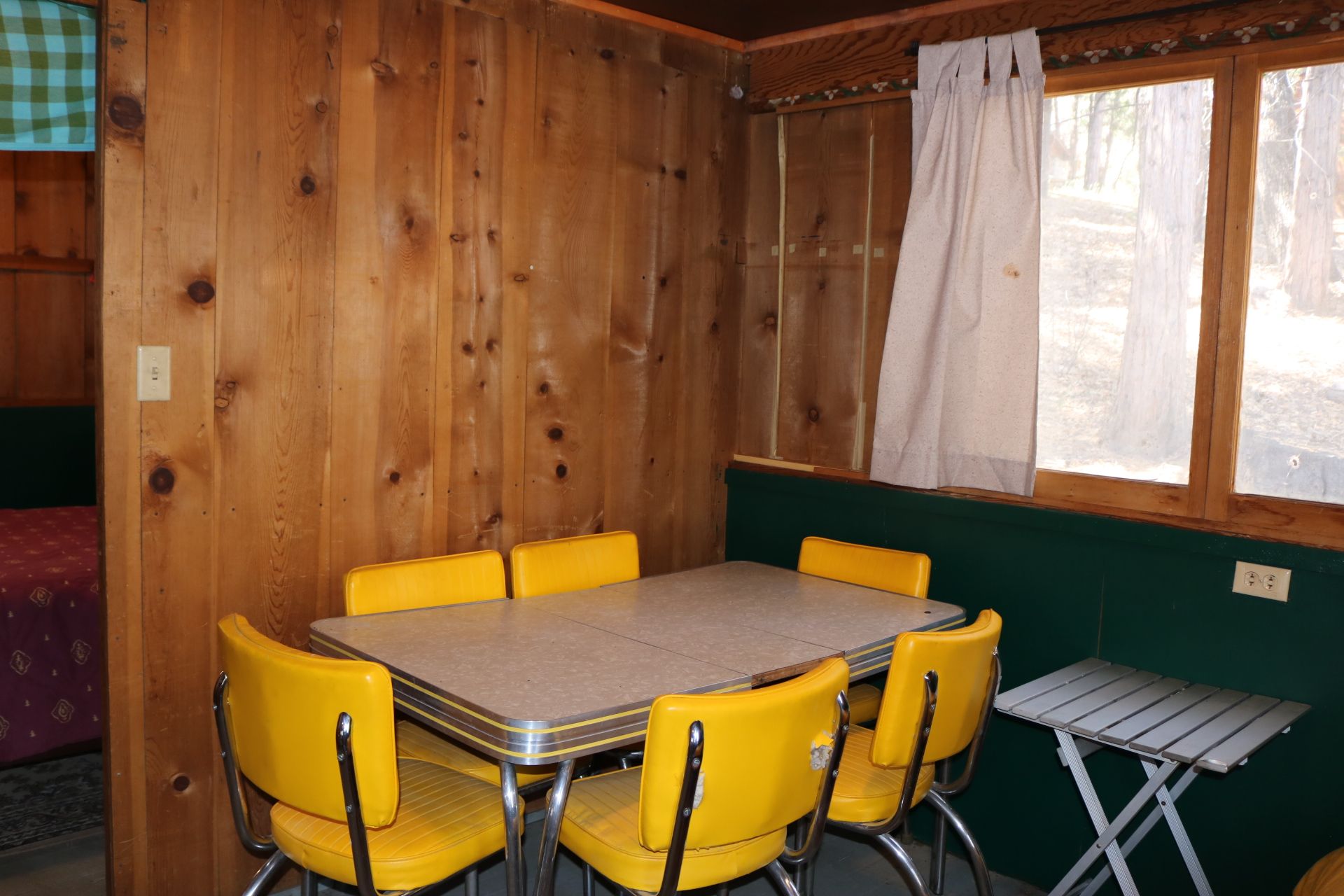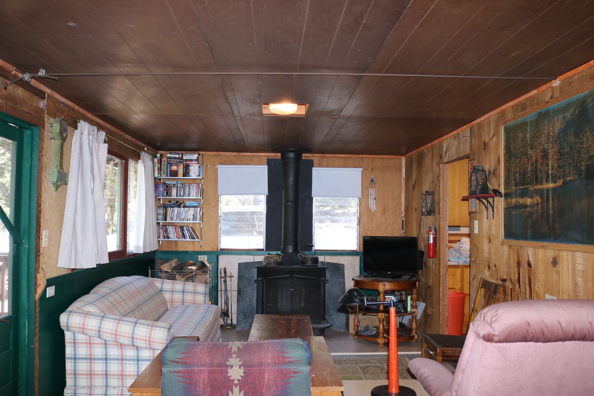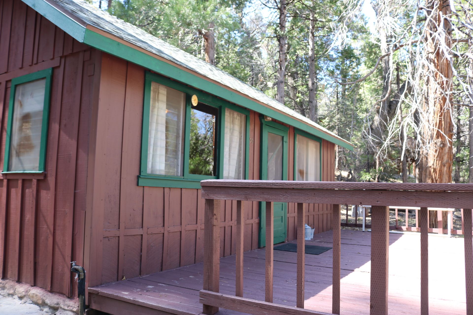 The cabin sits in a peaceful, treed setting near the Santa Ana River with level terrain and plenty of parking. The expansive deck captures mountain views and is an ideal spot to unwind while listening to the wind through the pines and the local songbirds. Inside, the family room features open-beamed ceilings and may offer potential for a loft addition. A diesel-fueled heater warms this space, with a ¾ bath conveniently located at the back. The upgraded kitchen provides generous counter and cabinet space. The living room includes a Ben Franklin–style wood-burning stove for cool fall evenings. A dining area sits at the rear of the living room and includes a vintage 1950s dinette set. A futon opposite the dining area provides additional sleeping space. The bedroom is a standard size and includes a closet. This cabin sits on National Forest land under a Special Use Permit, which is scheduled for renewal in January 2029 for an additional 20 years. If you’re looking for a quiet escape from traffic, noise, and city stress, this is the kind of solitude that makes a difference. A great opportunity to enjoy a classic mountain retreat. Don't wait. Plan a day to come see it.