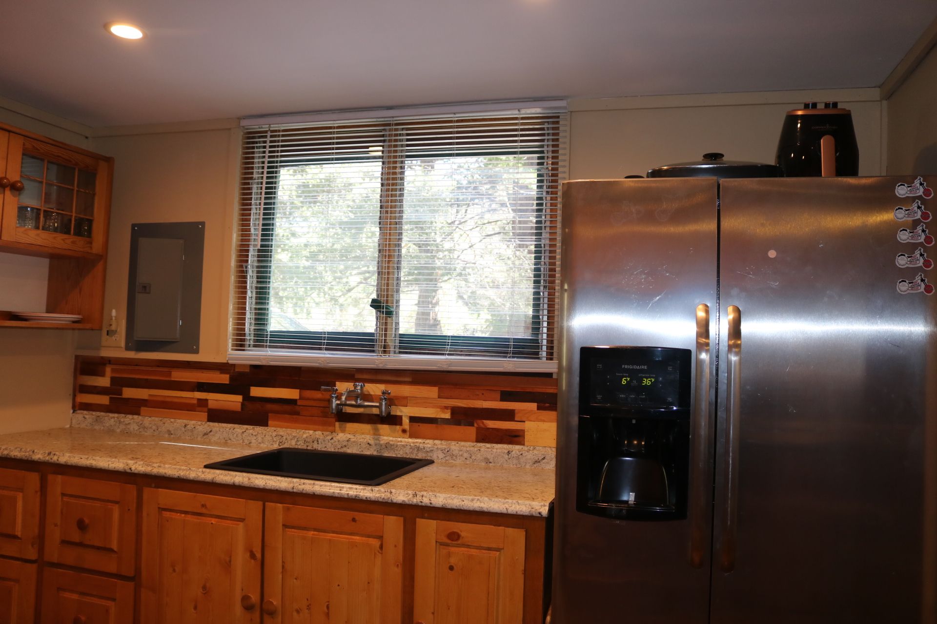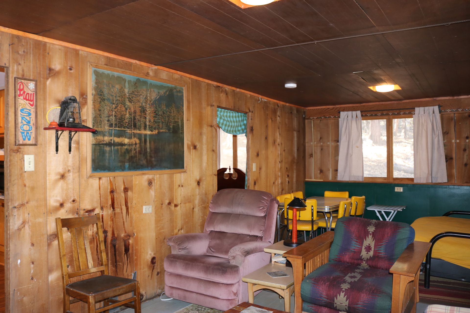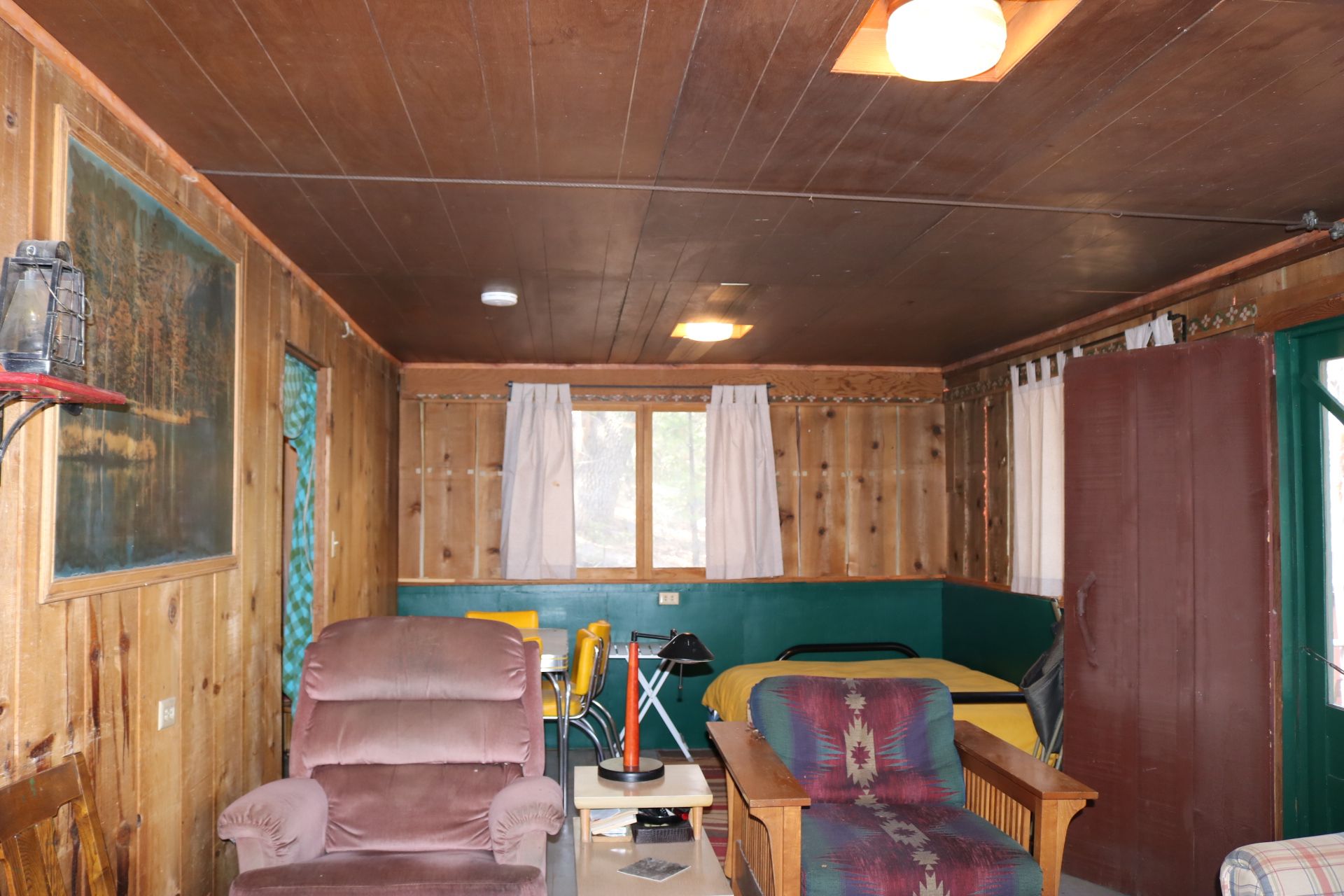 The cabin sits in a peaceful, treed setting near the Santa Ana River with level terrain and plenty of parking. The expansive deck captures mountain views and is an ideal spot to unwind while listening to the wind through the pines and the local songbirds. Inside, the family room features open-beamed ceilings and may offer potential for a loft addition. A diesel-fueled heater warms this space, with a ¾ bath conveniently located at the back. The upgraded kitchen provides generous counter and cabinet space. The living room includes a Ben Franklin–style wood-burning stove for cool fall evenings. A dining area sits at the rear of the living room and includes a vintage 1950s dinette set. A futon opposite the dining area provides additional sleeping space. The bedroom is a standard size and includes a closet. This cabin sits on National Forest land under a Special Use Permit, which is scheduled for renewal in January 2029 for an additional 20 years. If you’re looking for a quiet escape from traffic, noise, and city stress, this is the kind of solitude that makes a difference. A great opportunity to enjoy a classic mountain retreat. Don't wait. Plan a day to come see it.