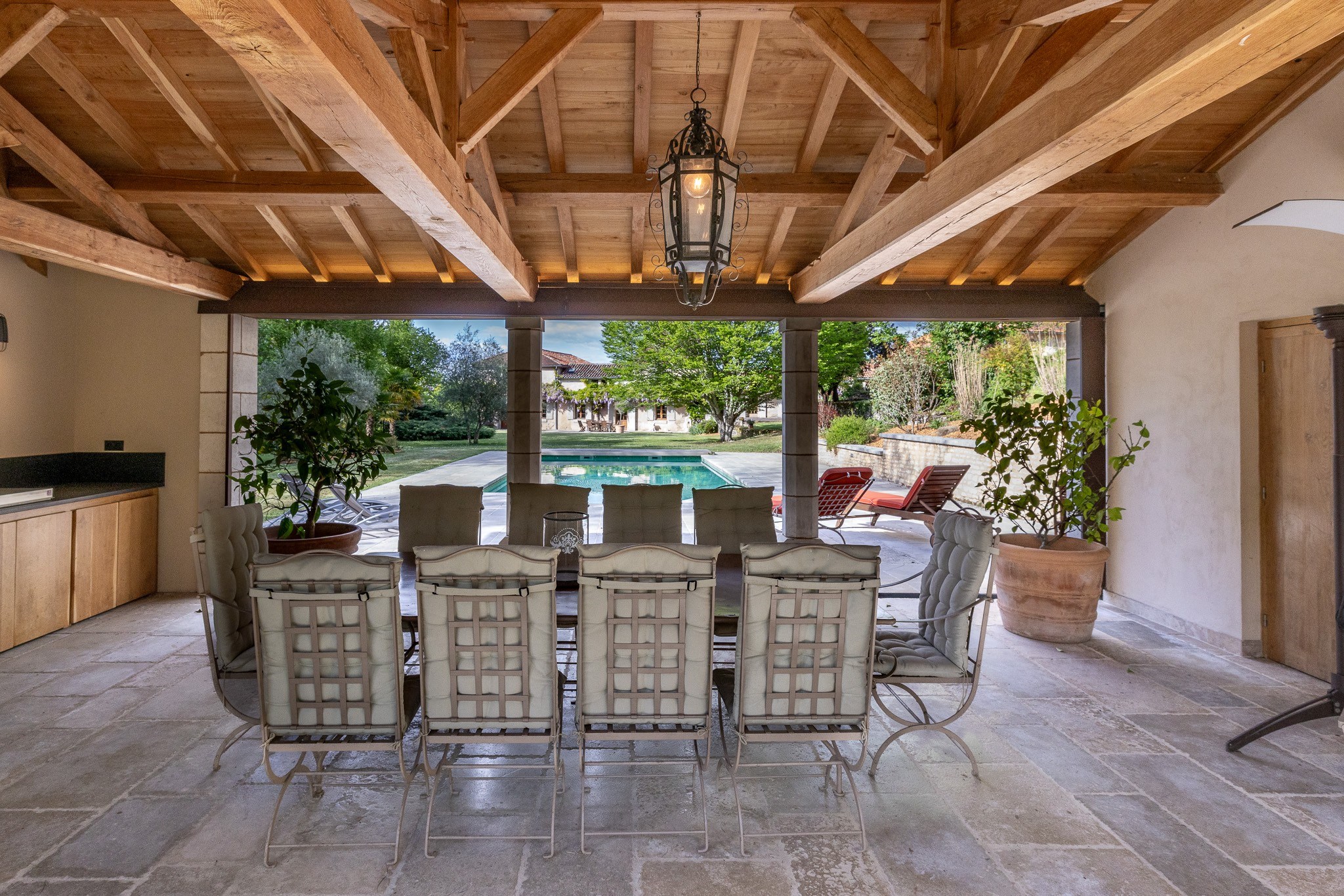 Just 10 minutes from the heart of Périgueux, this magnificent character house of approximately 485 sqm, dating back to 1739, is set within a lush green haven, where time seems to stand still, yet remains close to all amenities and schools. From the very first glance, the façade draped in majestic wisteria evokes the charm of timeless country homes. A sunlit terrace, elegant swimming pool, refined pool house, barn, caretaker’s house and garages complete this rare and harmonious estate. At the heart of the property, an Italian-inspired courtyard, delicately adorned with blooming roses, invites quiet contemplation. Generous volumes reveal a sense of timeless elegance: period fireplaces, stoves, libraries and a succession of reception rooms create an intimate, warm and refined atmosphere. Arranged over two levels, the residence offers seven bedrooms and six shower rooms, including a sumptuous master suite with bathroom and dressing room — a true sanctuary of serenity. From the entrance, natural light guides you towards a kitchen opening onto the courtyard. The reception rooms flow gracefully from one to another: library with fireplace, dining room, then living room, each offering soothing views over the garden. The fitness room with view of the courtyard and its orangery complete this delicate lifestyle. A private and enchanting property, ideal as a family home or a refined guesthouse project, where every detail tells a story. Périgord Sotheby’s International Realty – Ref: AS8-300