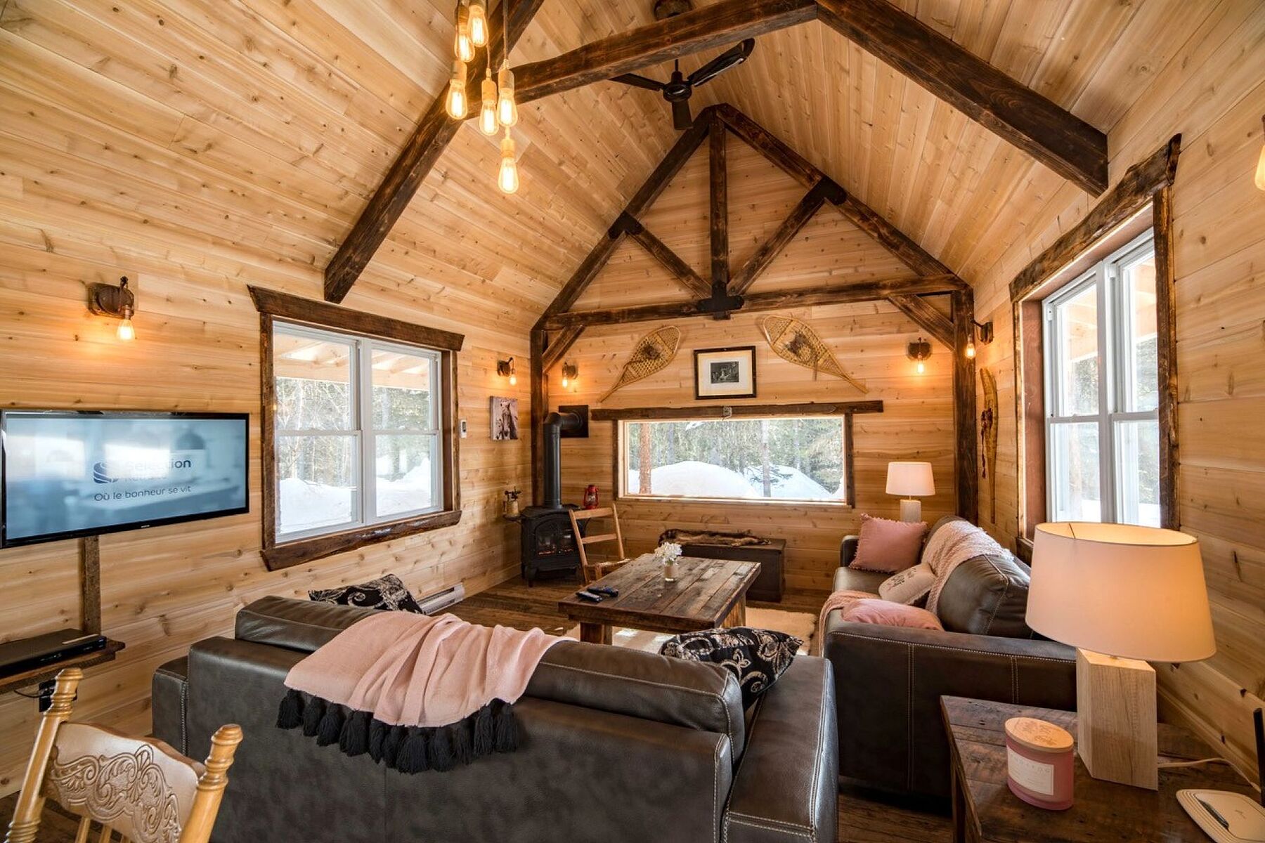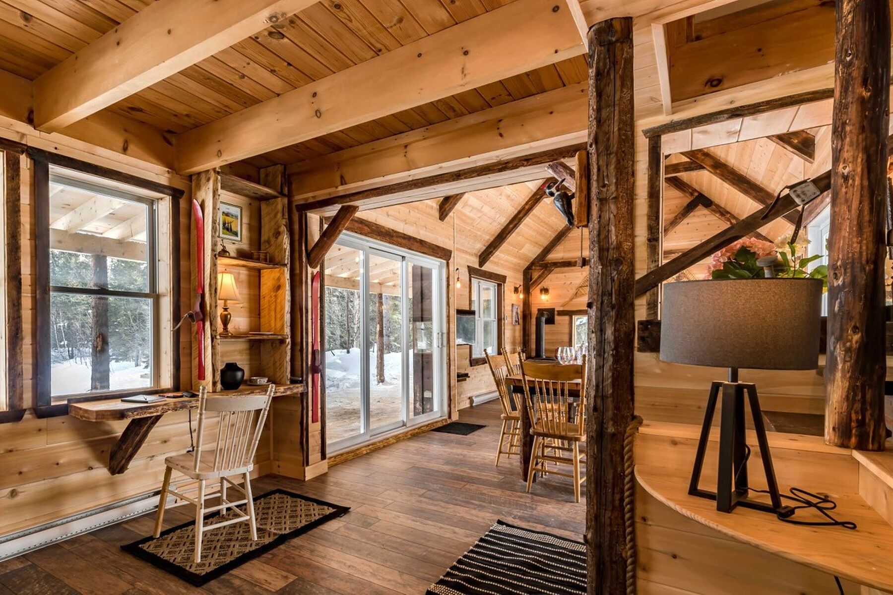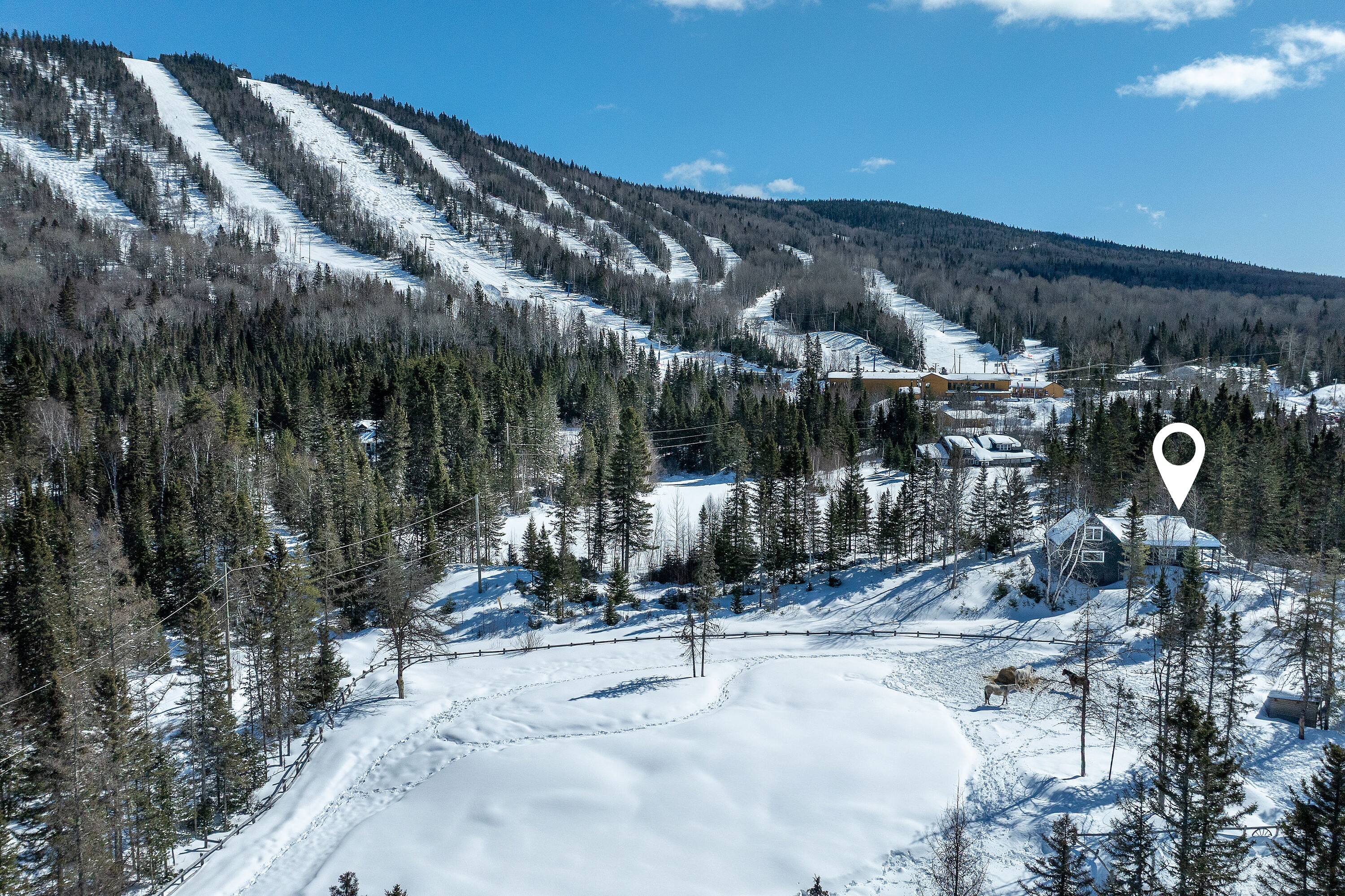 In a serene atmosphere, the Chalet is nestled in a tranquil natural setting on the shores of a peaceful lake. A true haven for outdoor enthusiasts, the property boasts a prime location just minutes from the slopes of Mont Grand-Fonds and an extensive network of snowmobile trails. The main floor features a stunning open-concept living area encompassing the living room, dining room, kitchen, and a common area, with generous windows flooding the space with natural light. The ambiance is warm, inviting, and welcoming. The chalet offers three bedrooms and a full bathroom. The basement can easily be converted into a family room to suit your needs. Tourist rentals are permitted, offering excellent income potential in addition to an exceptional living environment. NOTE: The sale of 1010 Chemin des Loisirs must be done with the sale of 1008 Chemin des Loisirs for a total amount of $1,940,000, a portion of which is taxable on the sale price of $745,000 for 1010 Chemin des Loisirs.