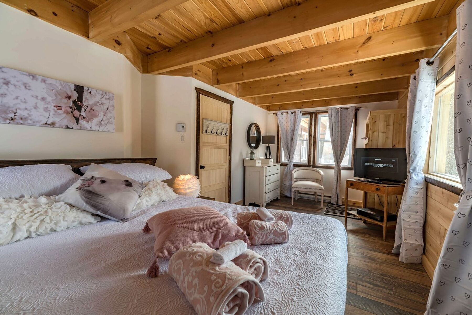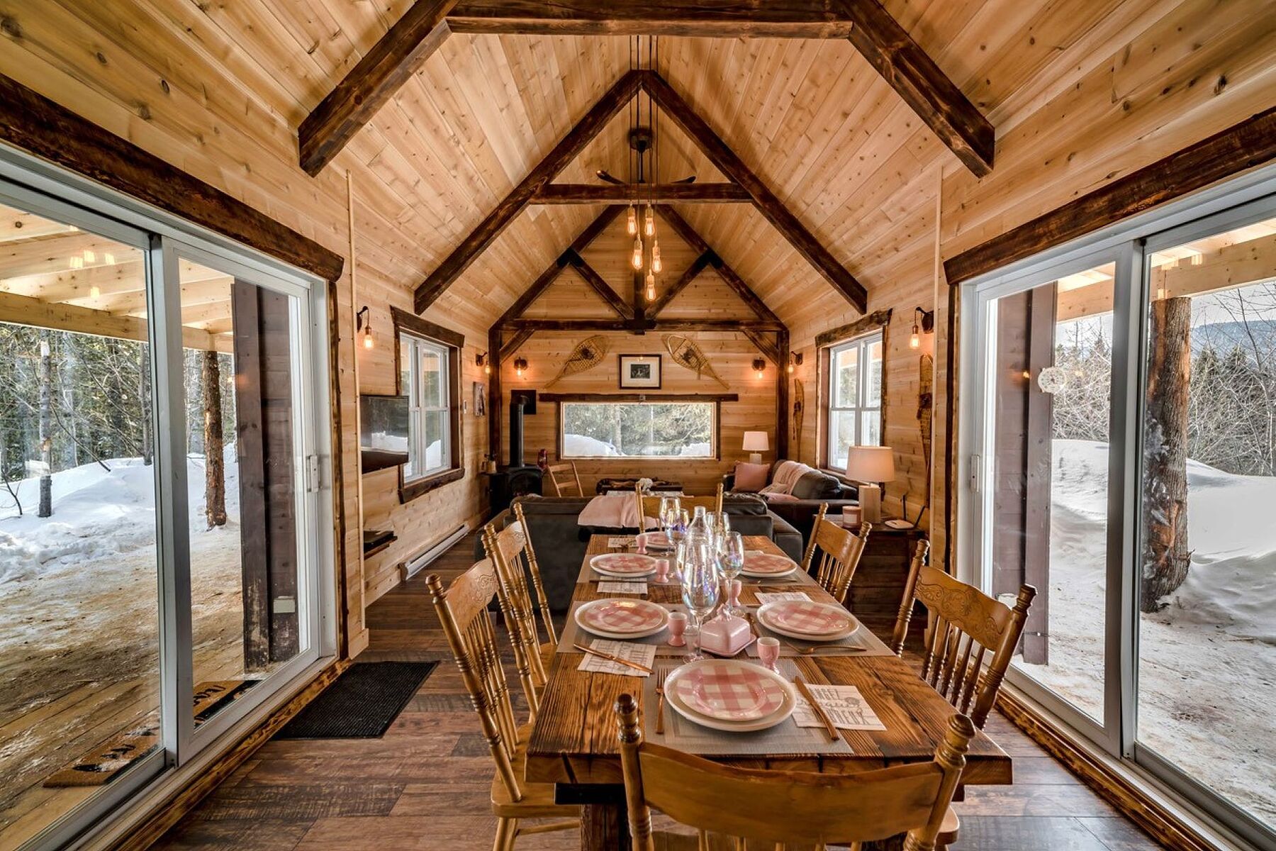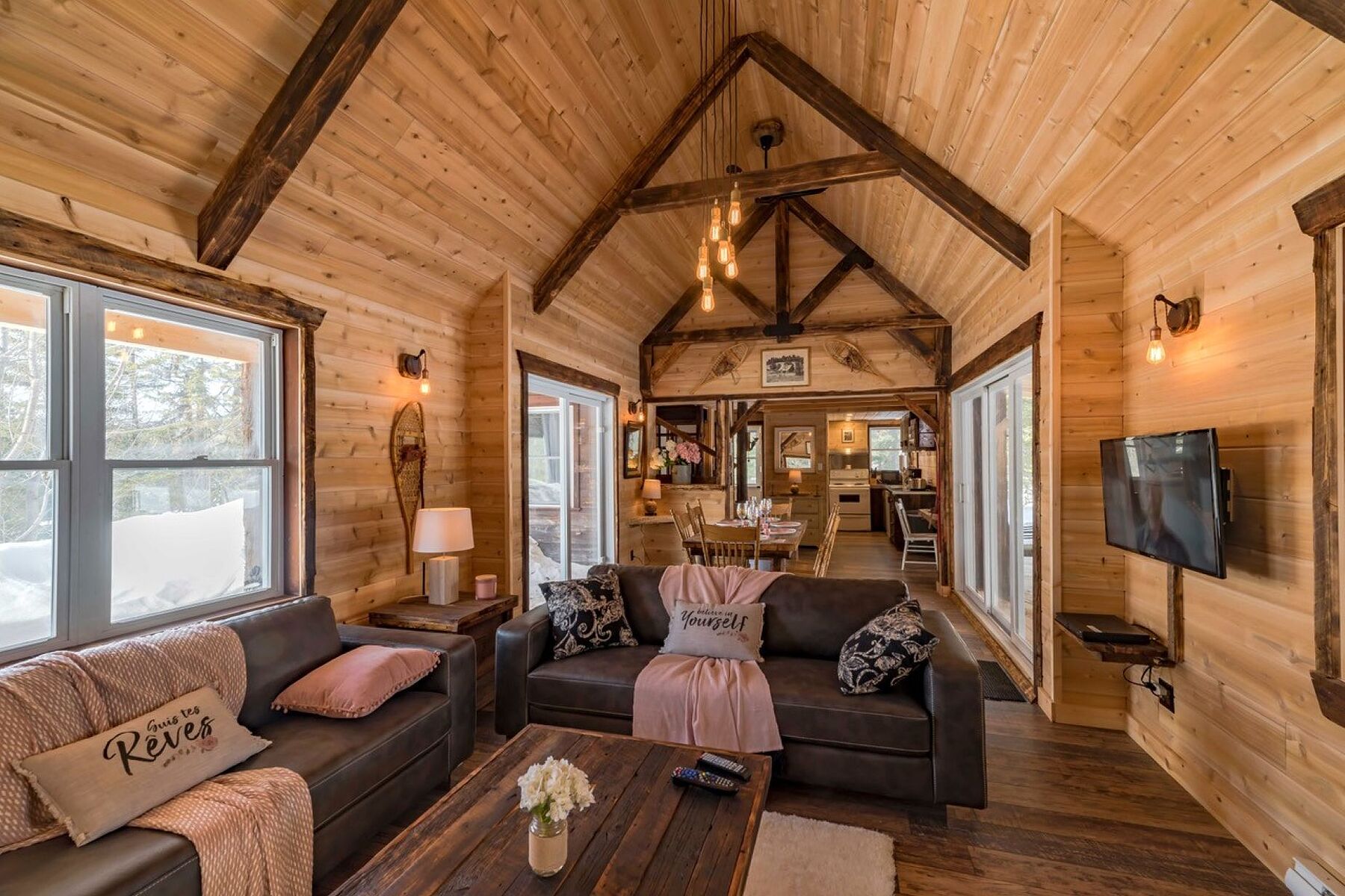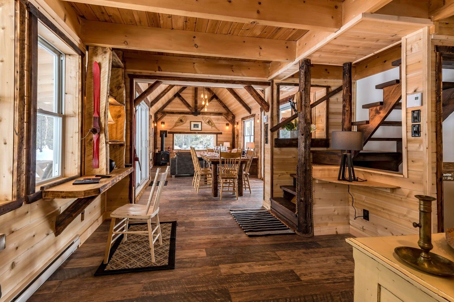In a serene atmosphere, the Chalet is nestled in a tranquil natural setting on the shores of a peaceful lake. A true haven for outdoor enthusiasts, the property boasts a prime location just minutes from the slopes of Mont Grand-Fonds and an extensive network of snowmobile trails. The main floor features a stunning open-concept living area encompassing the living room, dining room, kitchen, and a common area, with generous windows flooding the space with natural light. The ambiance is warm, inviting, and welcoming. The chalet offers three bedrooms and a full bathroom. The basement can easily be converted into a family room to suit your needs. Tourist rentals are permitted, offering excellent income potential in addition to an exceptional living environment. NOTE: The sale of 1010 Chemin des Loisirs must be done with the sale of 1008 Chemin des Loisirs for a total amount of $1,940,000, a portion of which is taxable on the sale price of $745,000 for 1010 Chemin des Loisirs.