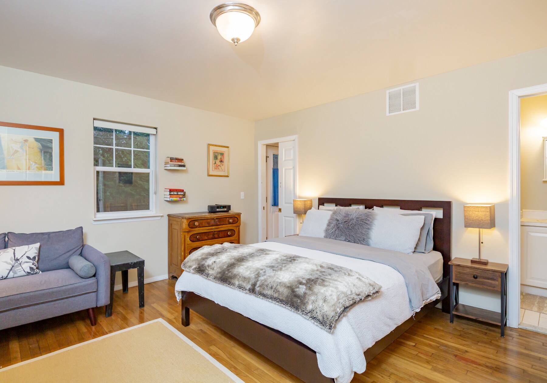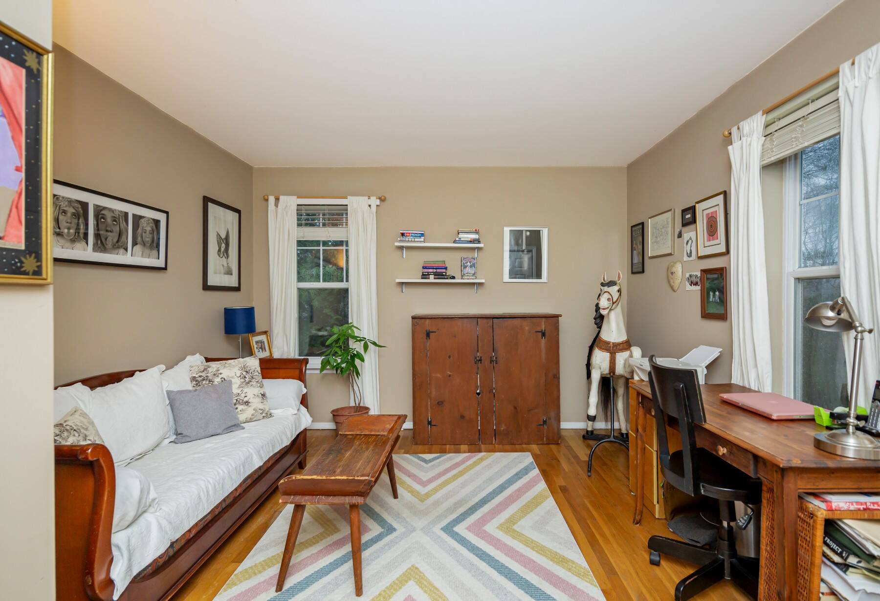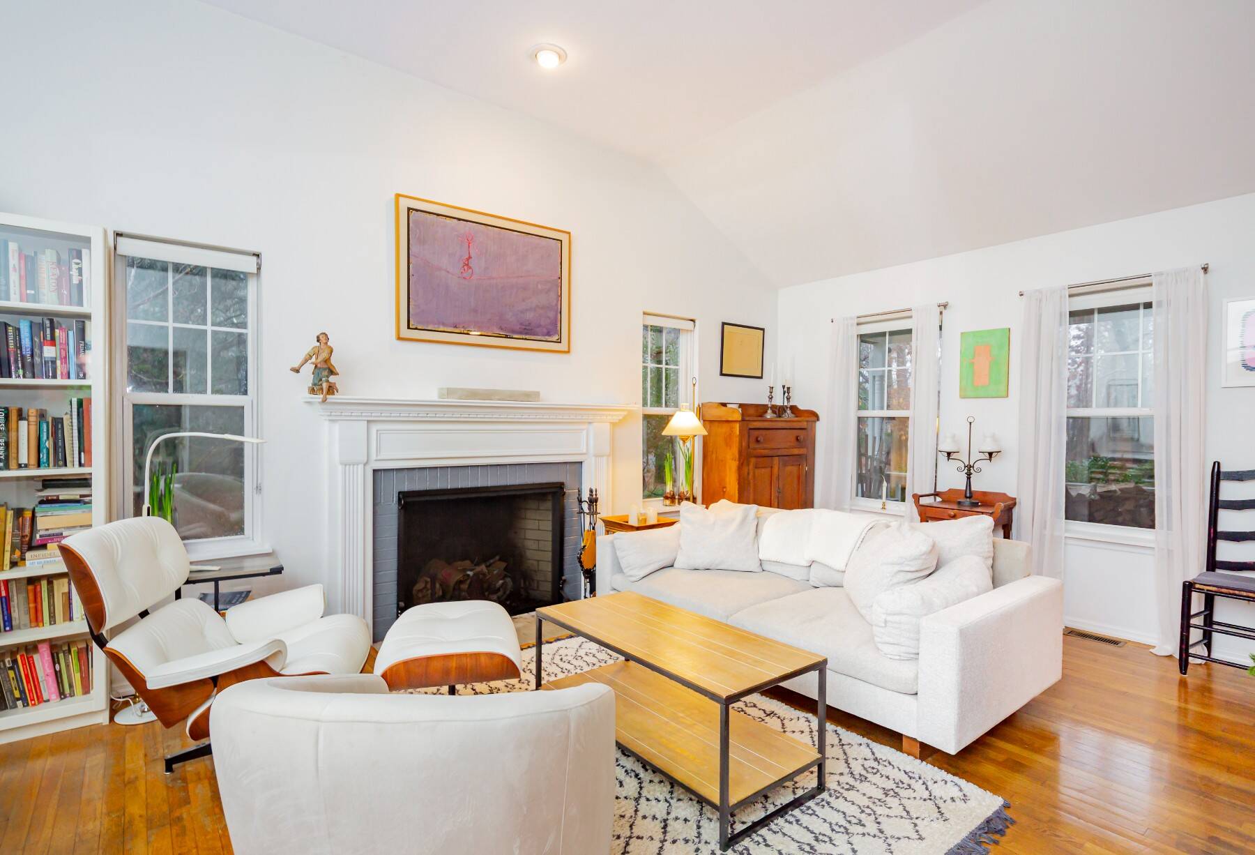 Now available for summer 2026 and sited on a tree-lined street about a mile from the ocean, this lovely traditional farmhouse is ideally located "Between the Villages" of Amagansett and East Hampton. Tasteful amenities of the first floor include a large primary bedroom with en-suite bath, an open living/dining area complete with a wood-burning fireplace, a spacious kitchen with a working island, and a separate laundry room. The second floor has two guest bedrooms (one currently used as an office) and another full bath. There is a covered front porch at the front of the house and a garden with patio area in the back, complete with an outdoor shower and a barbecue for summer entertaining. The secluded locale offers the dual advantage of privacy while remaining close to Amagansett and East Hampton village restaurants, shops, transportation and beautiful ocean beaches.