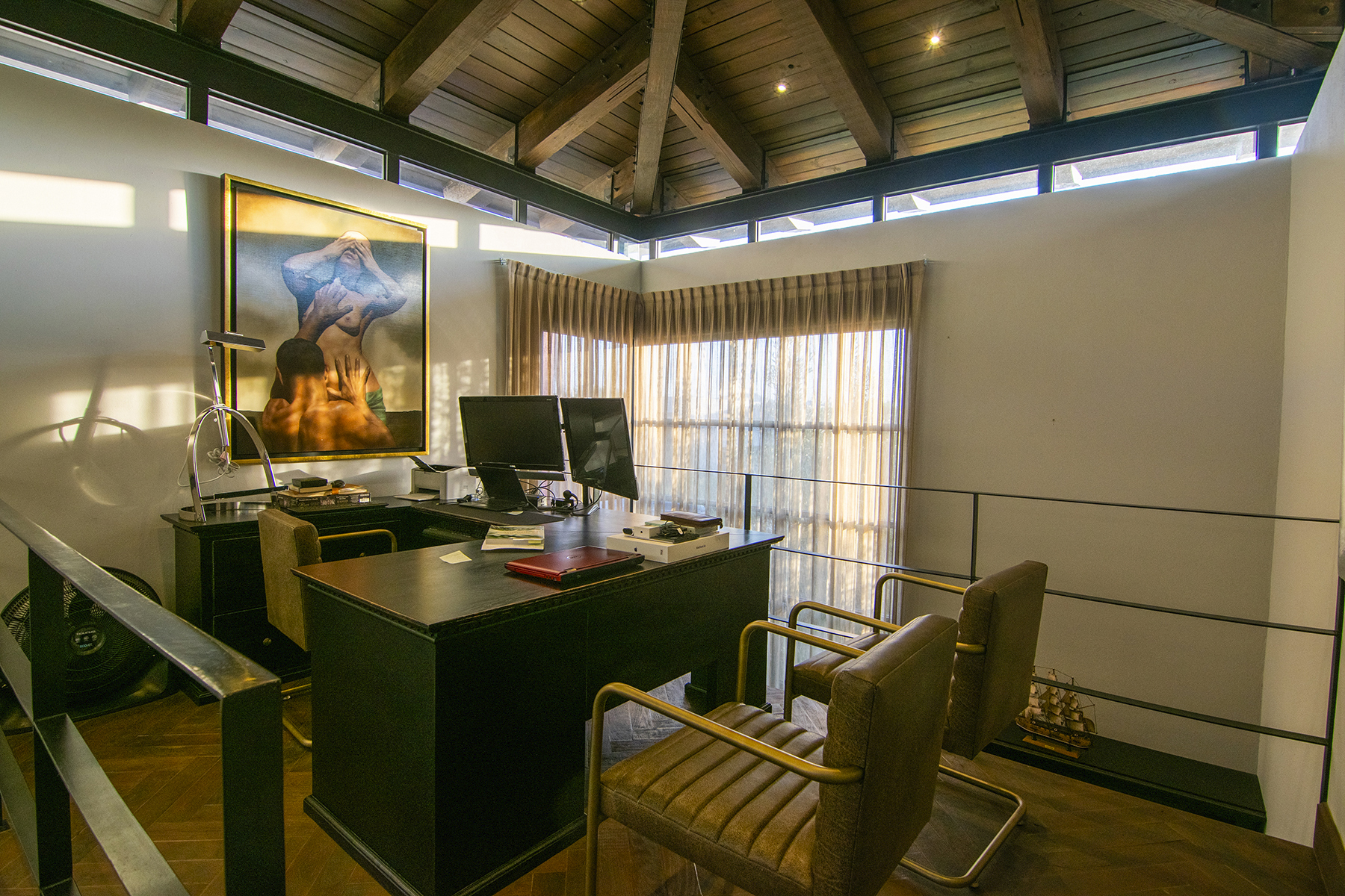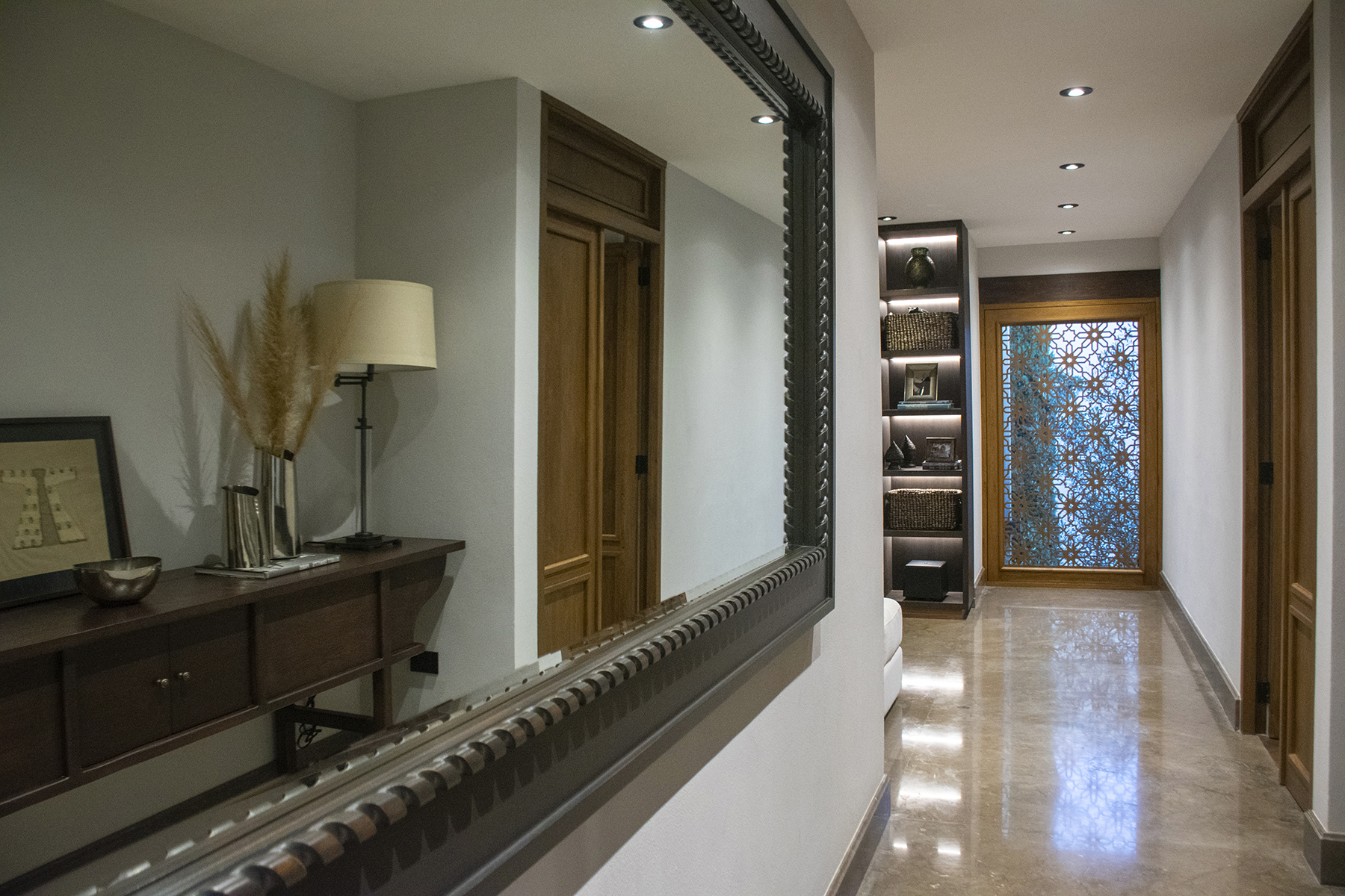 The four rooms are located on the upper floor, three of them with views of the spectacular garden and golf course. Bathrooms with luxury finishes. It is worth highlighting the carpentry, a reflection of meticulous work in which the artisanal imprint is clearly noticeable.