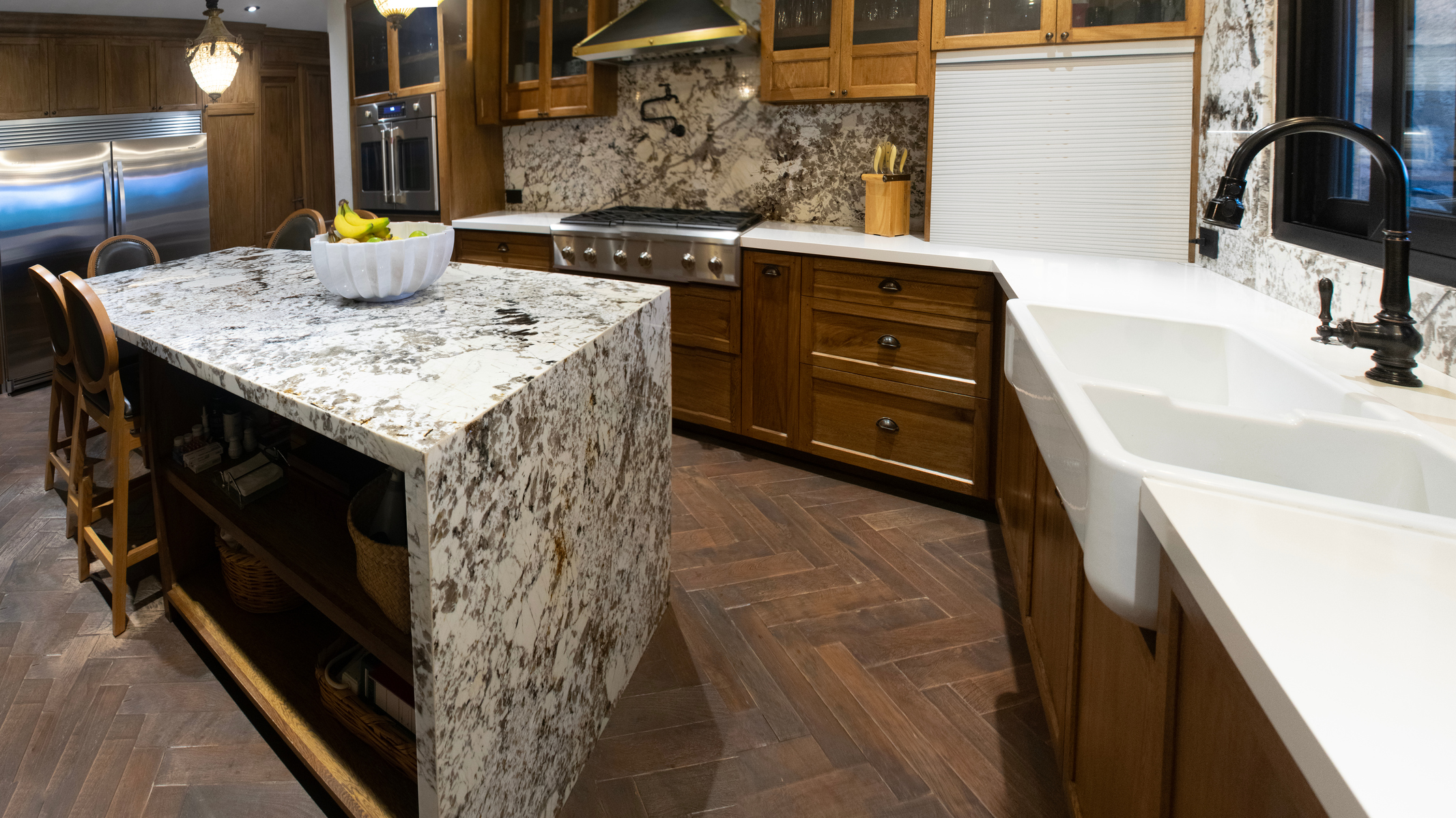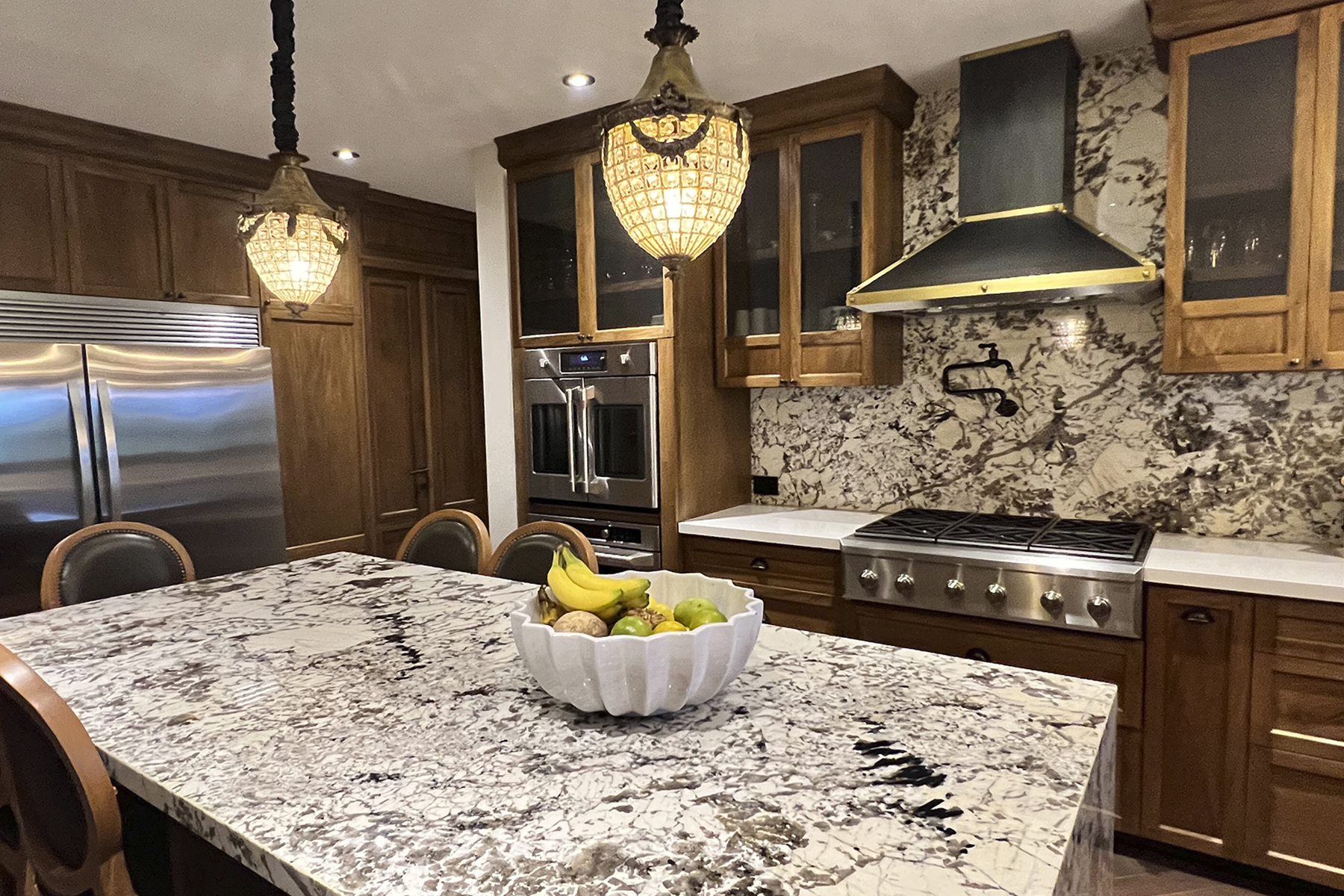 Materials and textures inside include wood accents, mesquite floors, marble surfaces and natural stone elements.