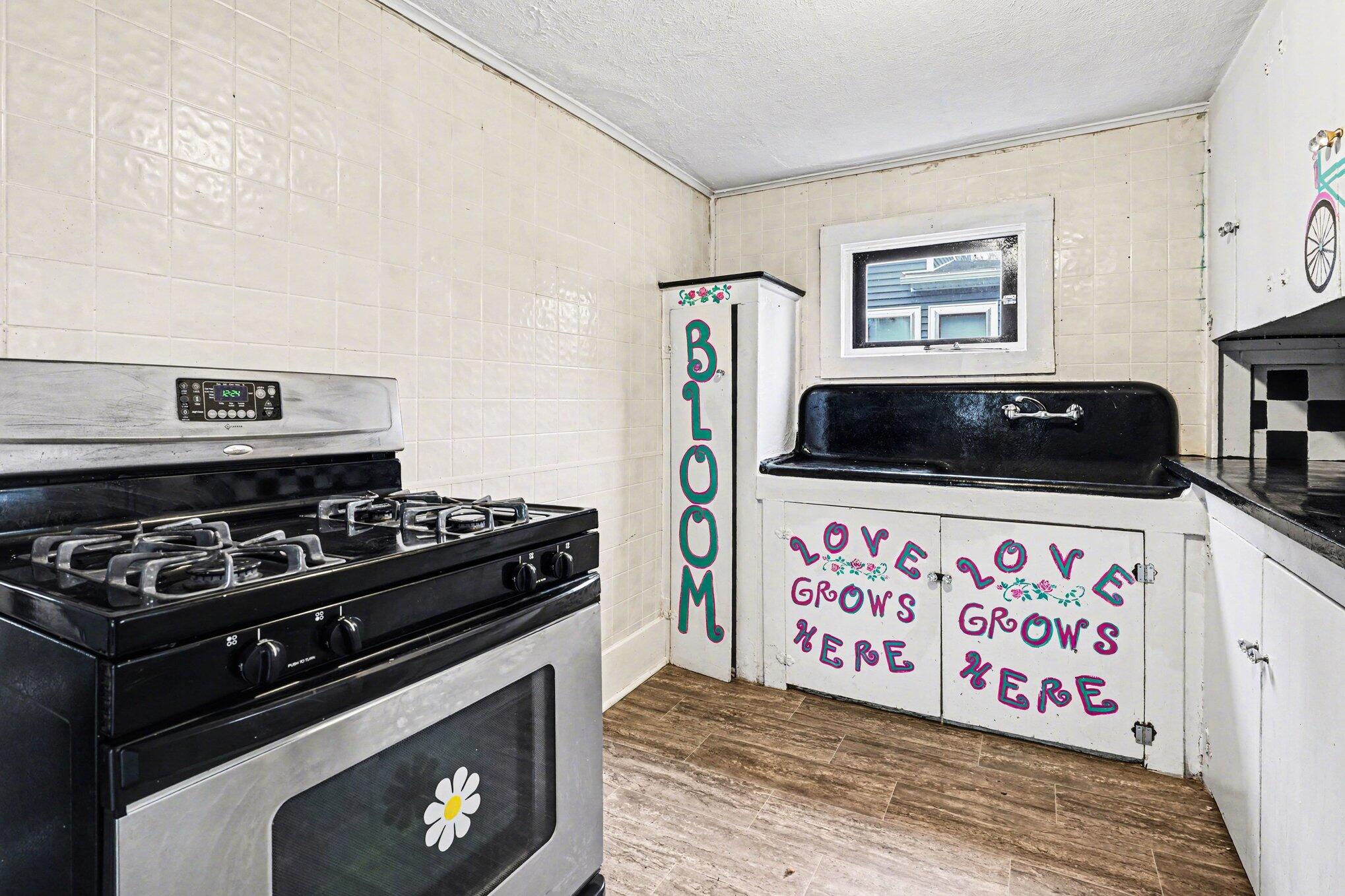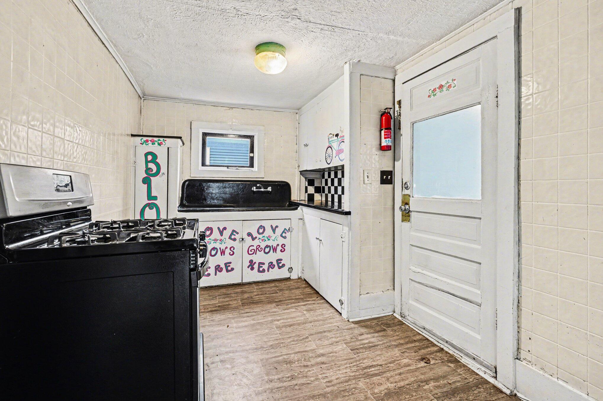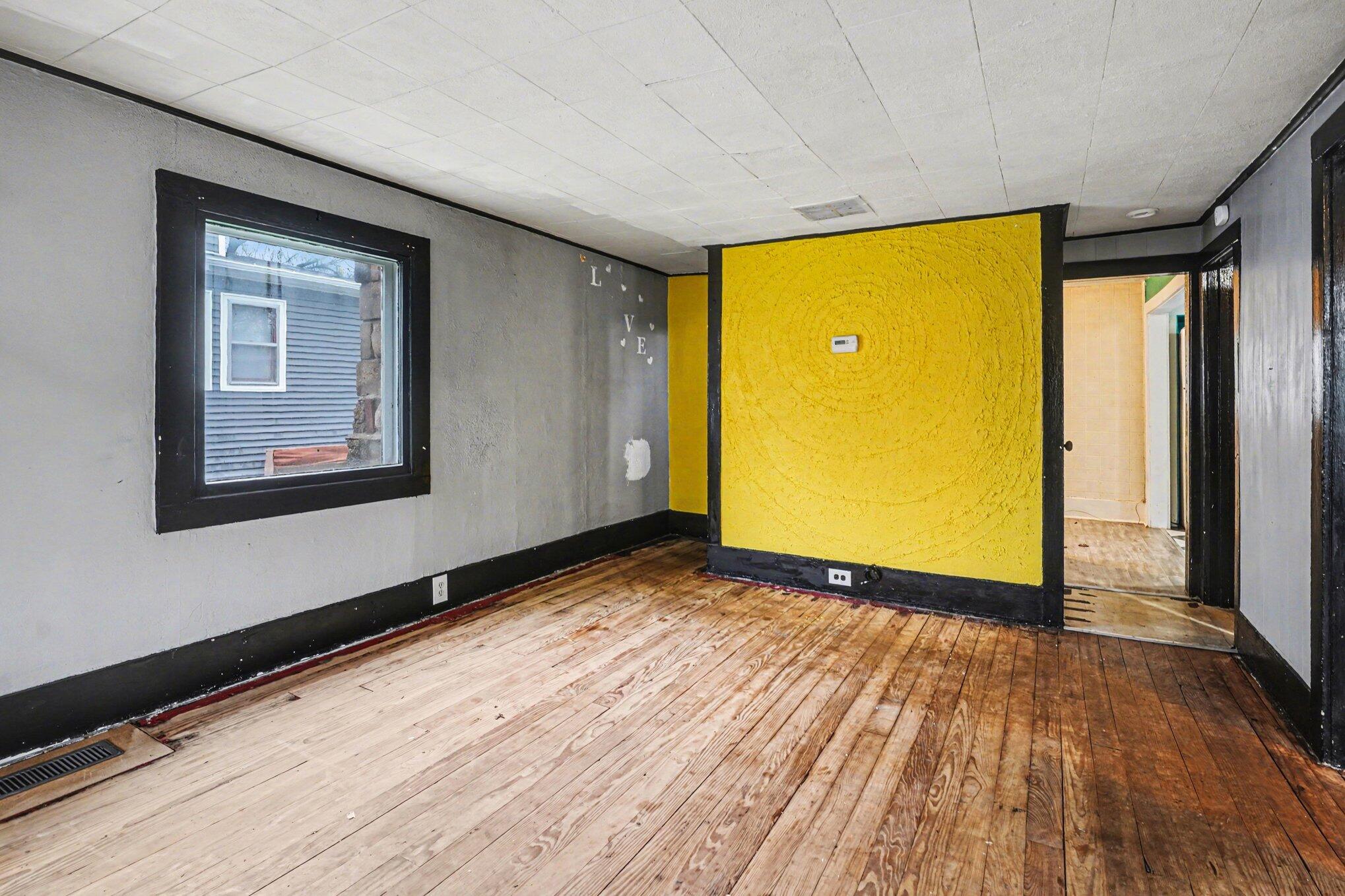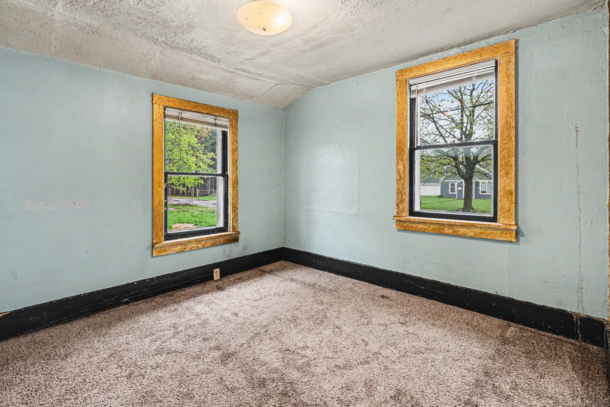 Three bedroom fixer upper in Oakwood neighborhood. One bedroom on the main level and two upstairs. Kitchen with eating area and stove and refrigerator. Two car detached garage. Large back yard is partially fenced. Home is being sold as is.