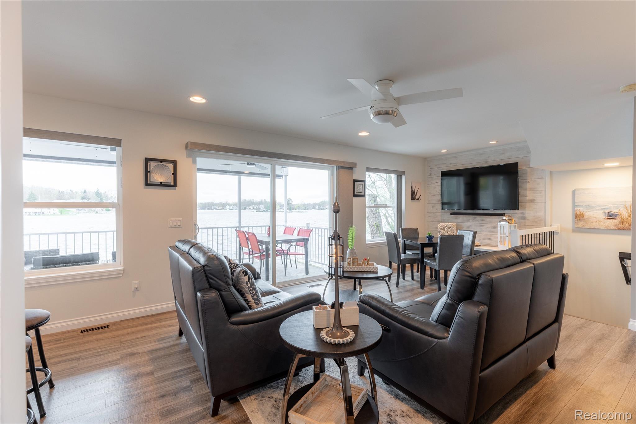 You've dreamt it, now do it! Live LIFE on the LAKE! Just built in 2016, this sparkling clean and gorgeous 1915 sq ft home is located on a narrow spit of land overlooking 2 large bays of Lake Orion allowing you to see both sunrises and sunsets! Inside, the floor plan was well thought out to take advantage of the views while keeping the home open and bright. Each level provides an area to enjoy the outdoors: the ground floor offers a patio with a lounging area, brick fire pit and boat docks. The mid level includes the living, dining and kitchen areas along with one bedroom, full bath and a covered deck. The top floor is devoted to the amazing primary suite with a sitting area, office nook, hot tub area, walk in closet with organizers, bath, laundry and sundeck. Pull the cars & toys out of the oversized garage, open the French doors to the patio and it becomes the perfect party room to entertain on the easy to clean & beautiful Polyaspartic coated floor. It is truly move in ready since the sellers are open to selling it fully furnished & will also include the 2 boat lifts for the right price. (With the covered boat lifts you don't have to move the boats seasonally to storage, just winterize and turn on the bubbler that is also included in the sale saving storage fees.) In addition, there is plenty of room for parking which can be an issue with some lake homes. Finally, since there is no grass to mow, give away that lawn mower and spend your time relaxing on one of the decks wondering why you didn't do this sooner!