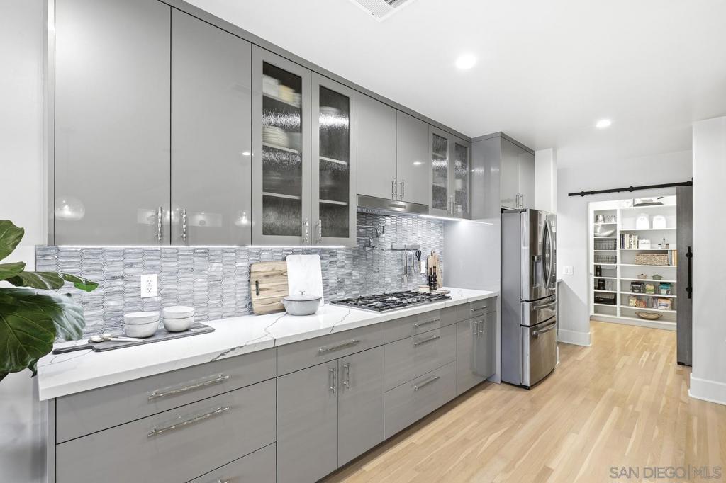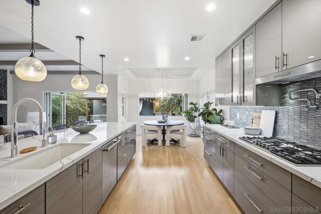 Situated on one of Coronado's most coveted streets, this exceptional 5-bedroom, 3.5-bath residence showcases pride of ownership and meticulous attention to detail throughout. Thoughtfully maintained and beautifully appointed, the home offers a seamless blend of timeless design and modern convenience. This property has been extensively upgraded to include a state-of-the-art smart home system, whole-house water filtration with softener, and a metal roof, just to name a few. The gourmet kitchen is a true centerpiece, featuring high-end appliances, generous prep space, and an expansive walk-in pantry. Indoor-outdoor living is elevated with La Cantina doors that open to a stunning private backyard retreat. Soak in the hot tub, or relax with your favorite beverage at the custom bar with beautiful cabinetry, accent lighting, and integrated heaters. Other outdoor options, include unwinding around a fire pit on the front patio, or enjoying breathtaking skyline views from the rooftop terrace. Additional highlights include, main floor bedroom, handmade tiles in the bathrooms, upstairs laundry, street-to-alley access and a three-car garage, providing both convenience and ample storage. This is a rare opportunity to own a turnkey home in one of Coronado's most desirable locations, where quality, comfort, and lifestyle come together effortlessly.