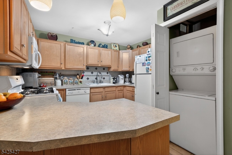 Welcome to this Beautifully Maintained and Move in Ready 2 Bedroom 2 Full Bathroom Condo in Falcon Ridge. Step right into the Open Floor plan with Vaulted Ceilings in the Living Room with Gas Fireplace and Sliders to the Deck, Separate Dining Room, and Kitchen with Peninsula Seating. Down the hallway you will find the spacious Master Bedroom with a Walk in Closet and En-Suite Bathroom. The 2nd bedroom has ample closets with the 2nd bathroom across the hall. Bonus - The washer and dryer are located in the kitchen inside the cabinets for seamless functionality. The beautiful new carpet throughout and a New A/C unit was installed in 2025. Located at the end of the complex and within walking distance to the Clubhouse and Swimming Pool.