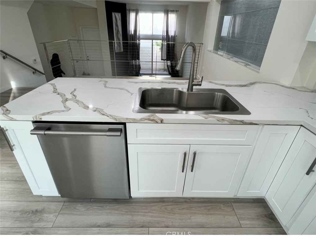 Welcome to this stunning, newly renovated corner unit, with abundant natural light flooding the space and showcasing the designer finishes throughout. The home is fully turnkey and has been meticulously updated with exceptional taste and attention to detail. The living room features vaulted ceilings, recessed lighting, a fireplace, and a sliding door that opens to a private patio. It boasts newer flooring throughout and smooth ceilings with recessed lighting. The open kitchen features custom cabinetry and quartz countertops, along with stainless steel appliances, including a side-by-side refrigerator. It includes a large breakfast bar that flows into a spacious dining room. Furthermore, the laundry room, which is equipped with a washer and dryer, is conveniently located adjacent to the kitchen. The custom staircase leads to a spacious primary suite upstairs, complete with ample closet space, picture windows adorned with custom shutters, and an en-suite bathroom featuring double sinks and vanities. The upper level also includes a second and third bedroom, as well as a beautifully remodeled full bathroom. Additionally, there is direct access to a two-car garage that offers plenty of storage space. This sought-after location highlights everything that Woodland Hills has to offer, including a wealth of entertainment options. It is conveniently located just a short distance from Westfield Village, Topanga Mall, and Warner Center Park. Residents can enjoy top-notch shops, fine dining, upscale grocery stores, and the soon-to-be-completed Los Angeles Rams Headquarters and Training Facility. Additionally, it is easily accessible via the 101 and 118 freeways and is in close proximity to the beaches of Malibu.g Facility. Additionally, it is easily accessible via the 101 and 118 freeways and is in close proximity to the beaches of Malibu.