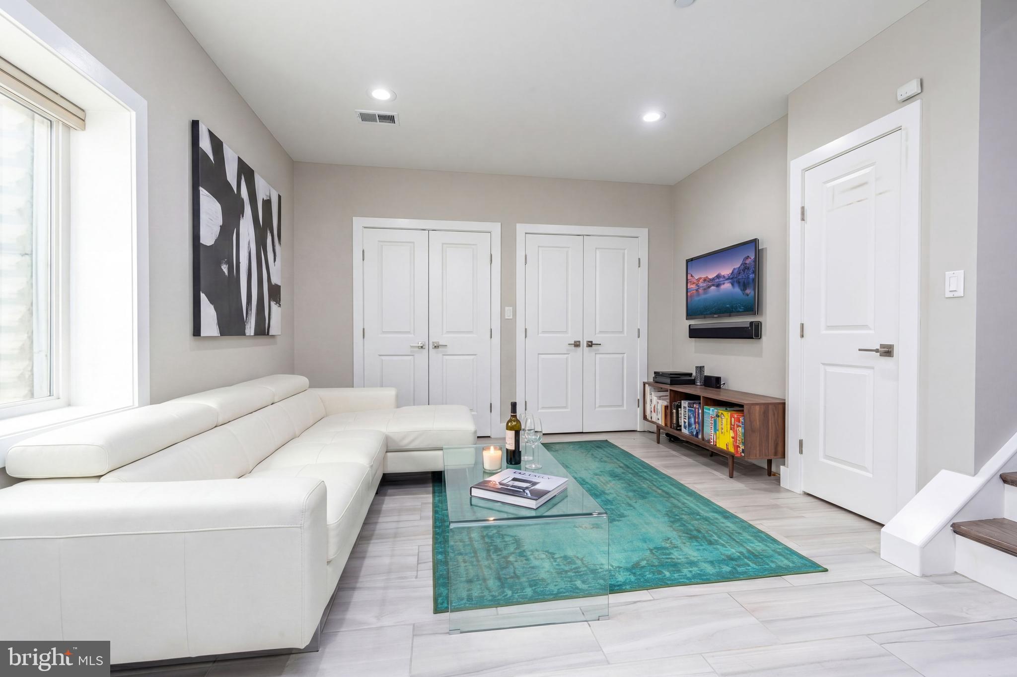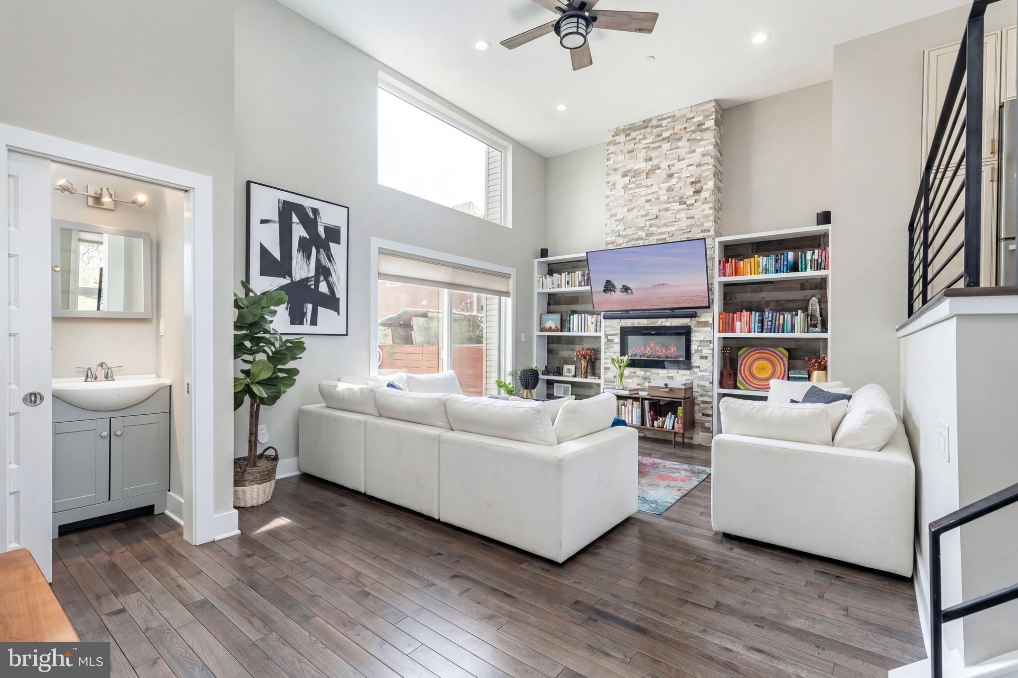 Set along a quiet, tree-lined street just one block from Frankford Avenue, this thoughtfully designed residence offers 4 bedrooms, 3 full and 1 half baths, and the rare convenience of garage parking - blending modern comfort with elevated city living. From the moment you enter, the home unfolds with intention, where clean architectural lines, warm wide-plank flooring, and natural light create a sense of effortless sophistication. The entry level welcomes you with a spacious and well-designed foyer, complete with a coat closet and direct access to the attached garage - bringing ease and functionality to everyday living. Just beyond, a versatile lower-level flex space offers endless possibilities, whether used as a home office, gym, or additional living area, with abundant storage ideal for bikes, sporting equipment, and more. Tax Abated until 2029 Ascending to the main living level, the home opens into a warm and light-filled living and family room, where soaring 12-foot ceilings and oversized windows create an immediate sense of volume and airiness. A custom-designed fireplace wall serves as a striking focal point, complemented by rich hardwood flooring and a ceiling fan for added comfort. Just off the living space, a private backyard extends the home outdoors, creating a seamless indoor-outdoor flow perfect for entertaining. The kitchen anchors the level with a stunning quartz island featuring a waterfall edge, complemented by sleek cabinetry and thoughtful design that balances beauty and function. A conveniently located powder room completes the space. Throughout, solid hardwood floors and beautifully crafted custom metalwork add character, texture, and a refined sense of design continuity. The next level offers two spacious bedrooms, each with large walk-in closets - an uncommon and highly desirable feature - along with a beautifully finished hall bathroom. One bedroom enjoys its own en-suite bath, while the layout overall provides comfort, privacy, and flexibility for family or guests. A conveniently located laundry area on this floor adds everyday ease. The third floor is dedicated to a truly exceptional primary suite - designed as a private retreat that feels both expansive and serene. The bedroom is remarkable in scale, with oversized windows framing treetop views and filling the space with natural light throughout the day. A thoughtfully integrated wet bar enhances the experience, offering convenience for both morning routines and evening wind-downs. The en-suite bathroom is finished with timeless materials, featuring a soaking tub, glass-enclosed shower, and double vanity. A large walk-in closet provides exceptional storage. Also located on this level is the home's fourth bedroom, currently styled as a light-filled office. Positioned to take full advantage of expansive windows, this space offers incredible flexibility - ideal for working from home, a nursery, guest room, or private lounge. Crowning the home, the rooftop level offers an exceptional outdoor experience. A built-in wet bar with beverage refrigerator creates the perfect transition to the expansive roof deck beyond - generous in scale and designed for both entertaining and everyday enjoyment. With open sky above and sweeping views of the surrounding neighborhood, the space easily accommodates lounging, dining, and gathering, delivering a rare and elevated outdoor lifestyle. From this vantage point, the connection to the neighborhood becomes part of the experience - tree-lined streets, open green space, and city skyline elements all coming into view. Just beyond, the neighborhood itself is a destination, with Shissler Recreation Center and park directly across the street, a short 3-minute walk to Berks Station, and some of Philadelphia's most celebrated dining at your doorstep, including Suraya, James Beard-nominated Kalaya, and La Colombe.