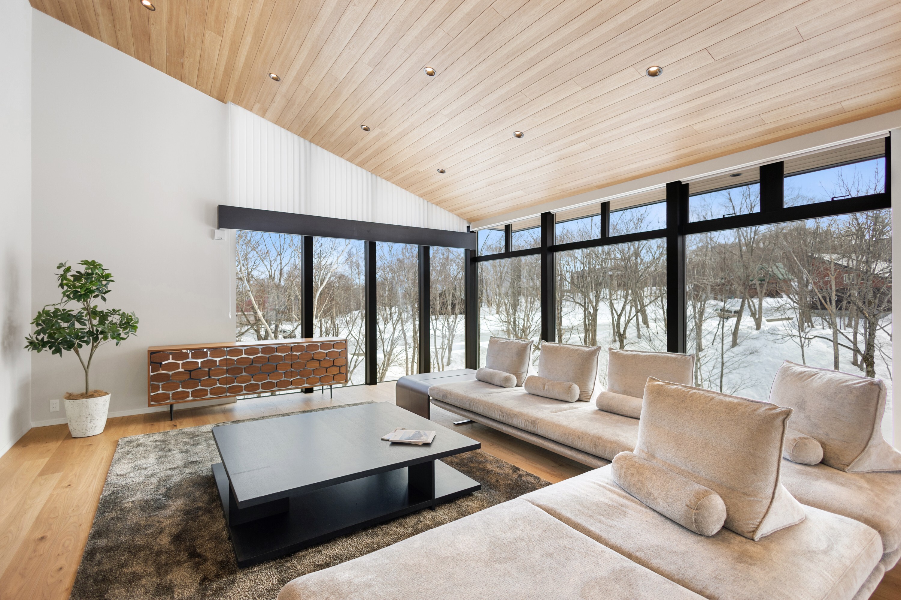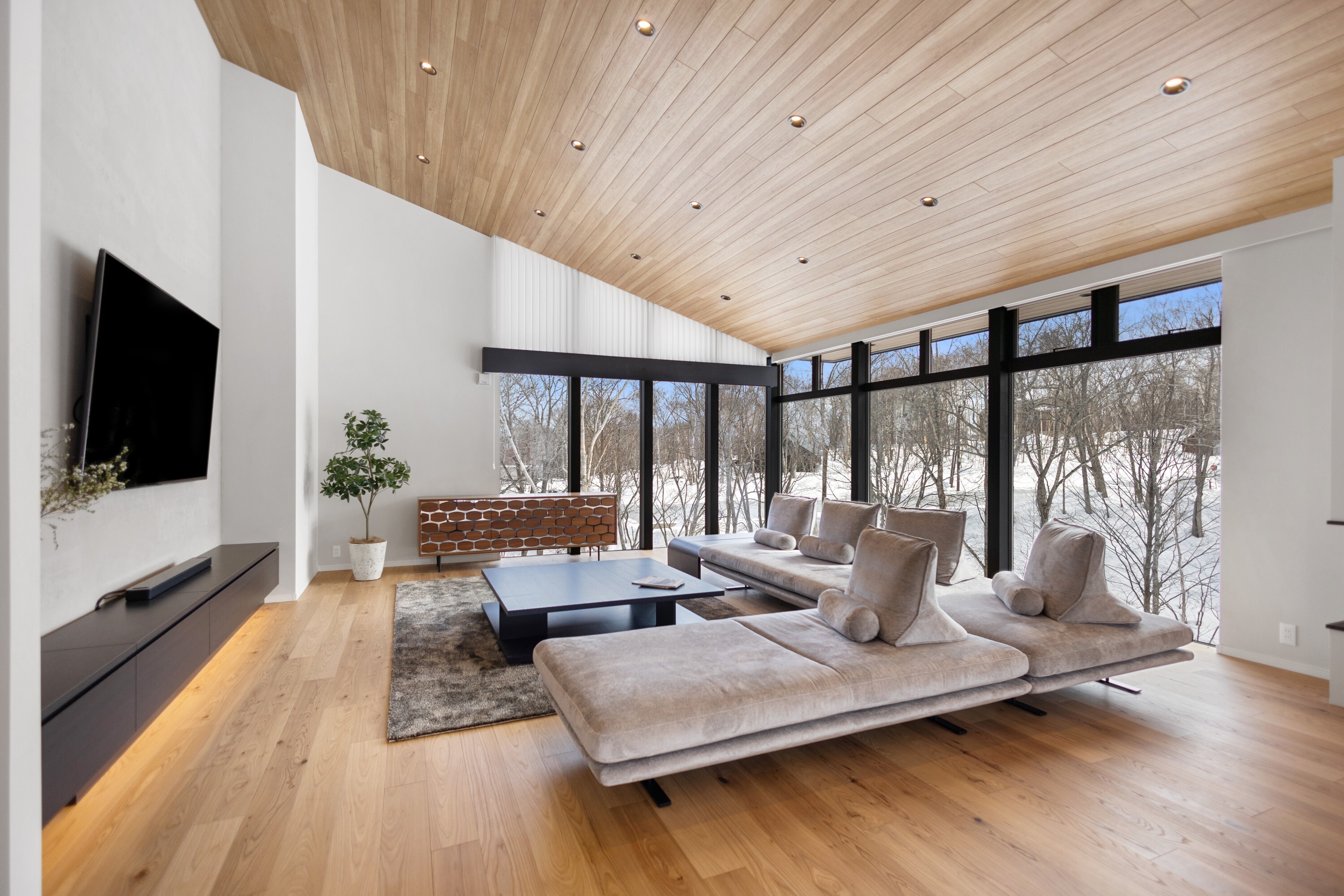 Etsuzan is a newly completed luxury villa set within the prestigious North Hills enclave near Hanazono Niseko Resort, thoughtfully designed for large or multi-generational living. This exceptional five-bedroom, five-bathroom residence offers approximately 400 sqm of refined interior space, blending hotel-style comfort with contemporary alpine sophistication.