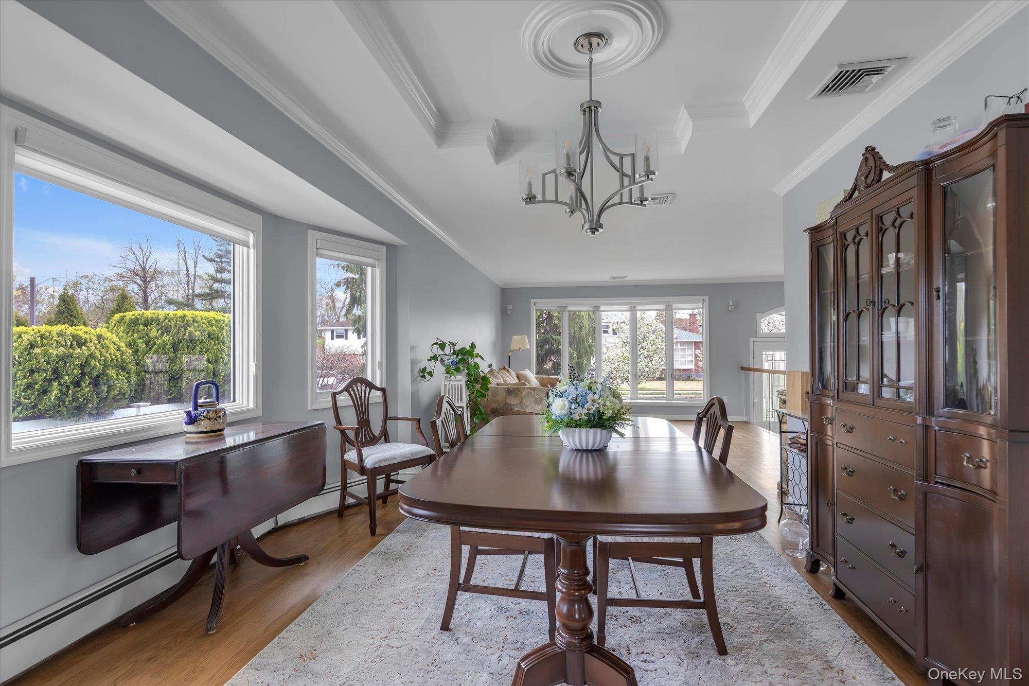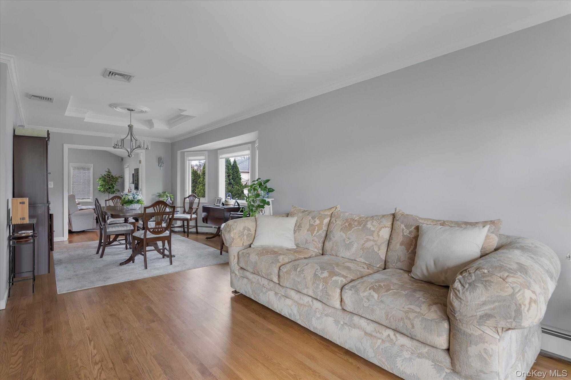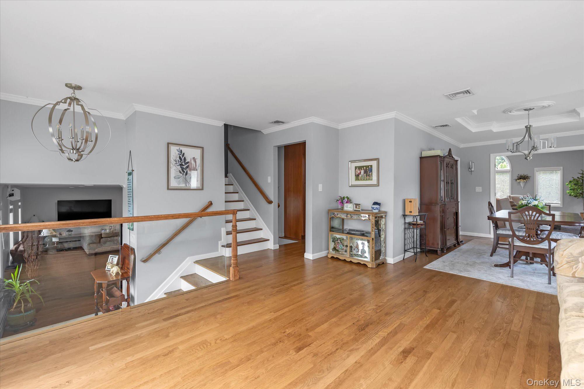Introducing a meticulously renovated and thoughtfully expanded split-level residence in the heart of Jericho, offering refined luxury, exceptional craftsmanship, and a seamless blend of elegance and modern living across multiple levels. Upon entry, a welcoming foyer leads to the main level of the home, featuring a formal living room with a floor to ceiling bay window, a fully updated eat-in kitchen complete with granite countertops, stainless steel appliances and Island. The kitchen is open to an expansive, light-filled family room with soaring cathedral ceilings. The formal dining room, enhanced with a tray ceiling, is thoughtfully positioned with French doors leading into the family room on one side and open to the formal living room on the other, creating a seamless flow ideal for both everyday living and elegant entertaining. The upper level is anchored by a luxurious primary suite complete with a spacious walk-in closet and a spa-inspired bath featuring a soaking tub and separate glass-enclosed shower. Two additional well appointed bedrooms and a beautifully updated full bath complete this level. The first level presents a richly appointed den with a fireplace, along with a laundry area, powder room, and direct access to the garage, offering both comfort and convenience. The outdoor space is a private retreat, thoughtfully designed with a semi in-ground pool, expansive paver patio, and beautifully proportioned grounds, perfect for both intimate gatherings and large-scale entertaining. Additional highlights include gas heating and cooking, in-ground sprinklers and a full basement offering further possibilities for recreation, storage, or customization. A rare offering that embodies luxury, functionality, and sophisticated living, this home is not to be missed.
