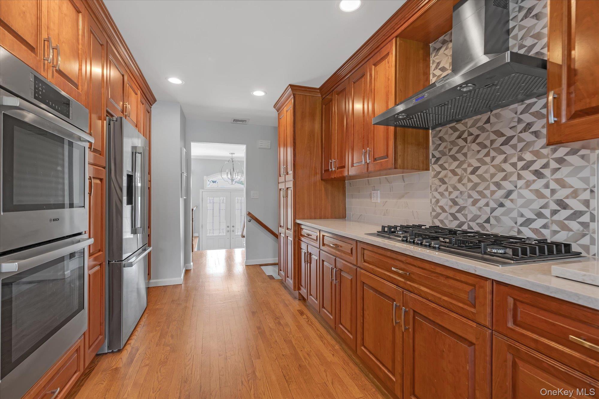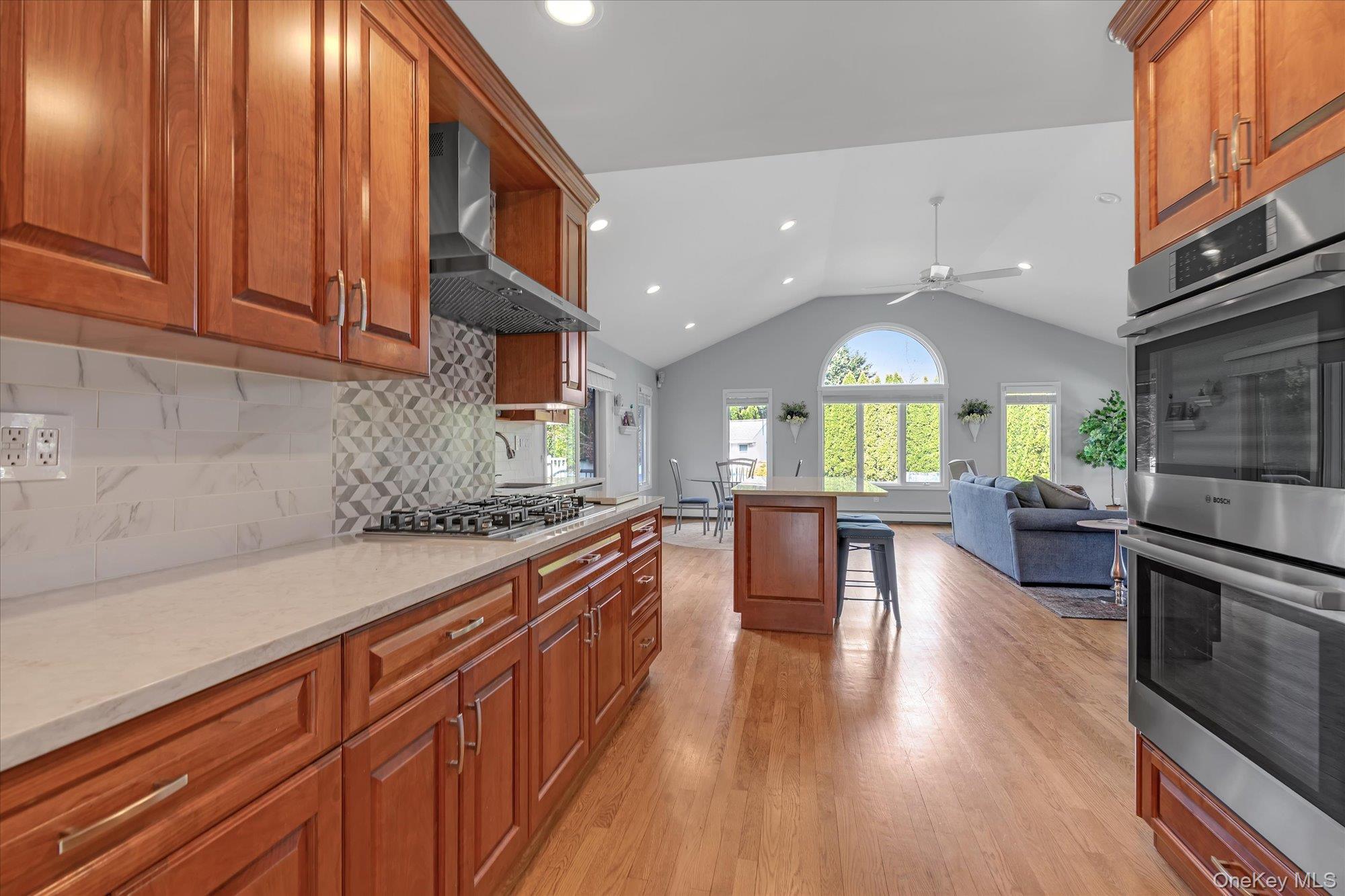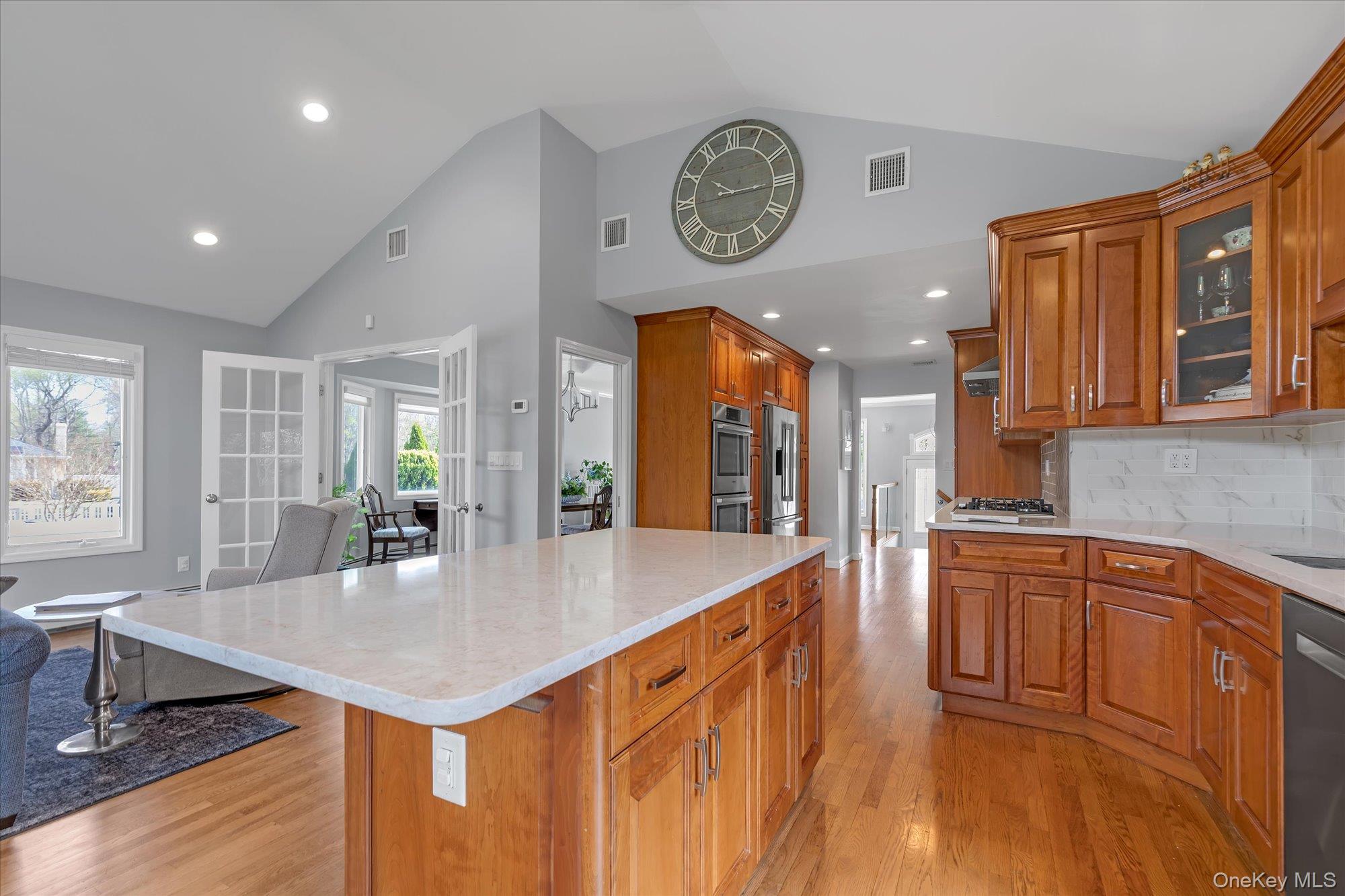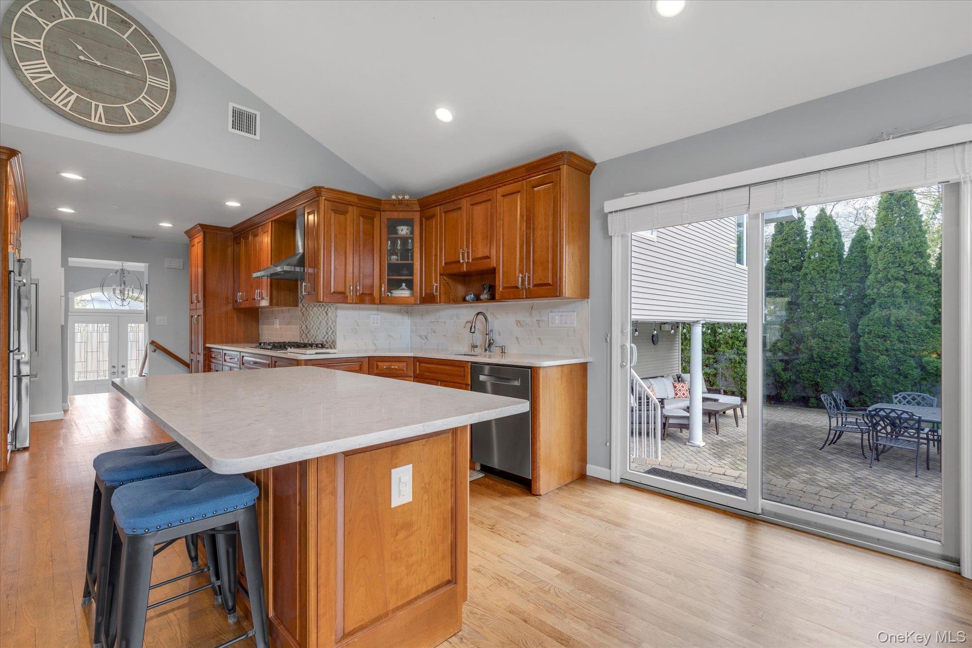 Introducing a meticulously renovated and thoughtfully expanded split-level residence in the heart of Jericho, offering refined luxury, exceptional craftsmanship, and a seamless blend of elegance and modern living across multiple levels. Upon entry, a welcoming foyer leads to the main level of the home, featuring a formal living room with a floor to ceiling bay window, a fully updated eat-in kitchen complete with granite countertops, stainless steel appliances and Island. The kitchen is open to an expansive, light-filled family room with soaring cathedral ceilings. The formal dining room, enhanced with a tray ceiling, is thoughtfully positioned with French doors leading into the family room on one side and open to the formal living room on the other, creating a seamless flow ideal for both everyday living and elegant entertaining. The upper level is anchored by a luxurious primary suite complete with a spacious walk-in closet and a spa-inspired bath featuring a soaking tub and separate glass-enclosed shower. Two additional well appointed bedrooms and a beautifully updated full bath complete this level. The first level presents a richly appointed den with a fireplace, along with a laundry area, powder room, and direct access to the garage, offering both comfort and convenience. The outdoor space is a private retreat, thoughtfully designed with a semi in-ground pool, expansive paver patio, and beautifully proportioned grounds, perfect for both intimate gatherings and large-scale entertaining. Additional highlights include gas heating and cooking, in-ground sprinklers and a full basement offering further possibilities for recreation, storage, or customization. A rare offering that embodies luxury, functionality, and sophisticated living, this home is not to be missed.