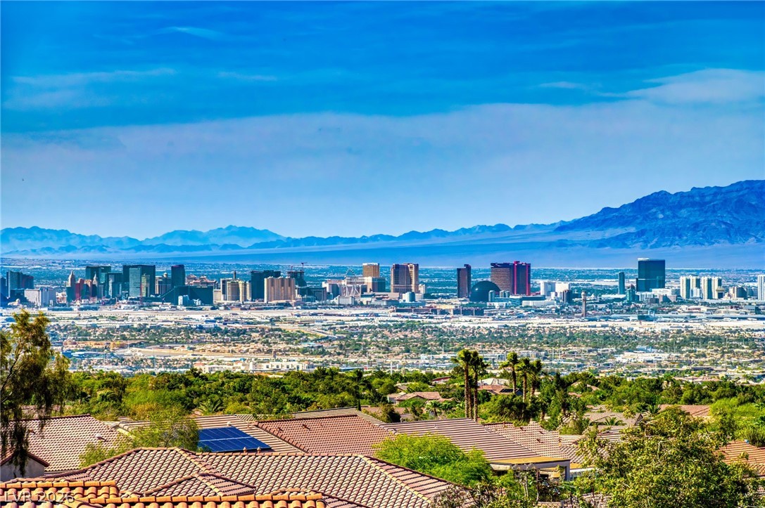 This stunning single-story Saratoga model sits on a premium corner lot and welcomes you with breathtaking, unobstructed views of the Las Vegas Strip the moment you enter. Enjoy strip views from the backyard, family room, and primary suite. Located just minutes from the Liberty Center clubhouse, the home features dual primary suites, an expansive kitchen with a breakfast nook, a dedicated office, and a spacious entertaining area filled with natural light.