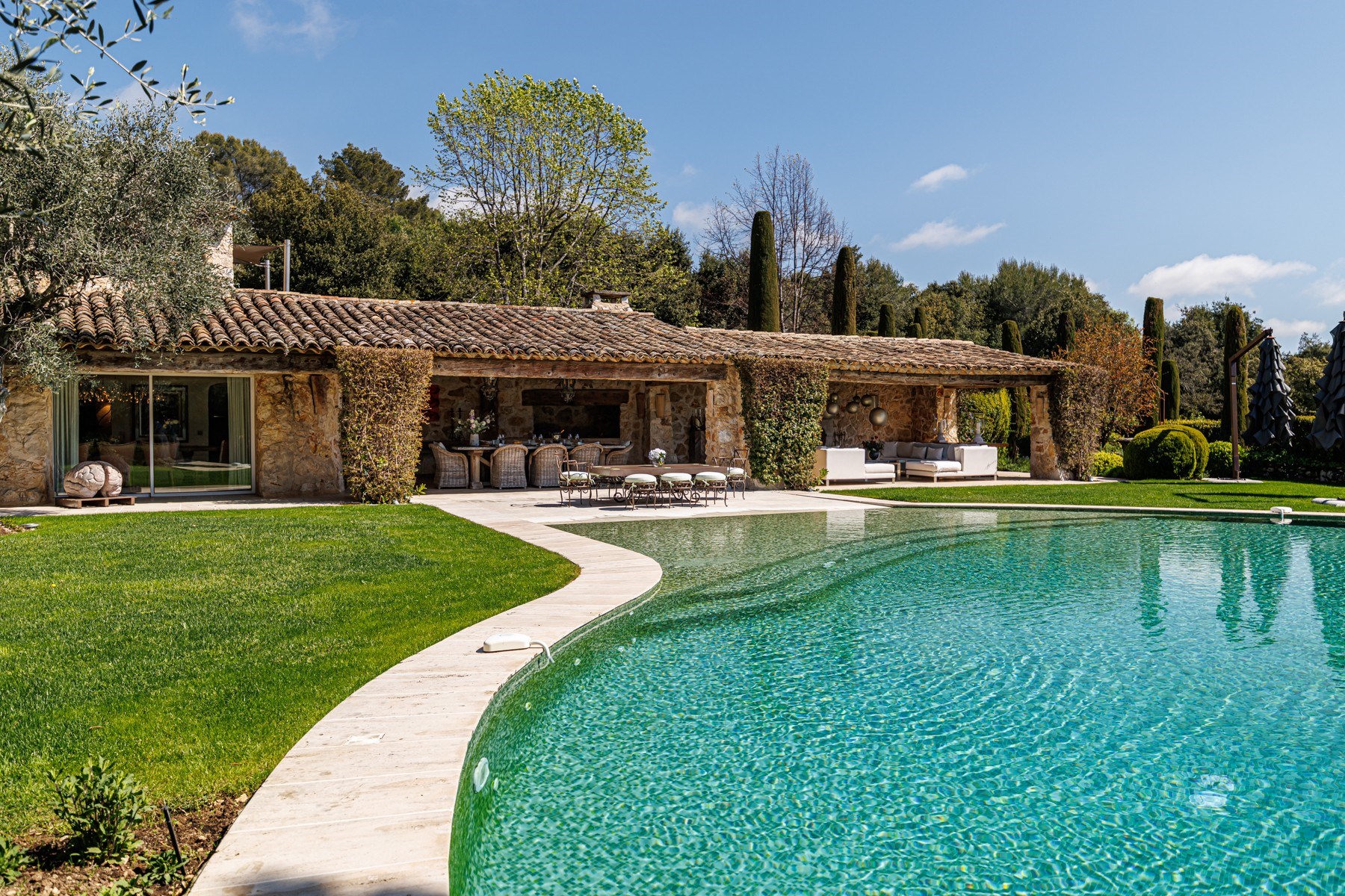 This stunning property features a magnificent main villa set across three levels, complemented by an elegant annex and a guardian’s house. Originally designed and built in the 1990s by architect Louis Sorridente, the estate has been meticulously renovated to the highest standards, preserving the authentic character and refined elegance of a luxurious Provençal bastide. The residence offers seven beautifully appointed bedroom suites, each designed for ultimate comfort. The interiors include a spacious professional kitchen, refined dining and breakfast areas, and multiple terraces boasting breathtaking views over the sea and landscaped gardens. A serene inner courtyard with a fountain enhances the property’s tranquil atmosphere. The main living room, complete with a fireplace, opens onto a furnished terrace. The master suite is a true sanctuary, featuring its own fireplace and both indoor and outdoor bathrooms, including a Jacuzzi. Additional living spaces include a fully equipped office with video conferencing facilities, a TV and games room, and an authentic wine cellar designed for tastings. Every detail has been carefully considered, including custom-made wardrobes crafted by an Italian carpenter. The landscaped garden, designed by Jean Mus, is a true highlight, adorned with white roses, purple lavender, and lush greenery. The estate also features 50 olive trees producing its own olive oil, as well as a herb garden, vegetable garden, citrus orchard (lemons, oranges, and kumquats), and a chicken coop for fresh eggs. Outdoor amenities are equally impressive, including a heated infinity swimming pool, gym, tennis court, and pétanque pitch. Several terraces provide inviting spaces for relaxation and entertaining, complete with fireplaces and heating. A charming tea house adds to the unique appeal of the grounds. The property is accessed via a beautiful entrance and includes a garage for three cars, a carport for four vehicles, and a caretaker’s house with office and terrace. Set on approximately 8,531 m² of land, the estate offers around 689 m² of living space and 160 m² of terraces. Premium materials are used throughout, including underfloor-heated stone floors, parquet, and full air conditioning. A Bose sound system is installed both indoors and outdoors. Ideally located, the property combines privacy with easy access to local amenities and scenic nature walks, offering an exceptional lifestyle in the heart of Provence. For further information or to arrange a private viewing, please contact Côte d’Azur Sotheby’s International Realty.