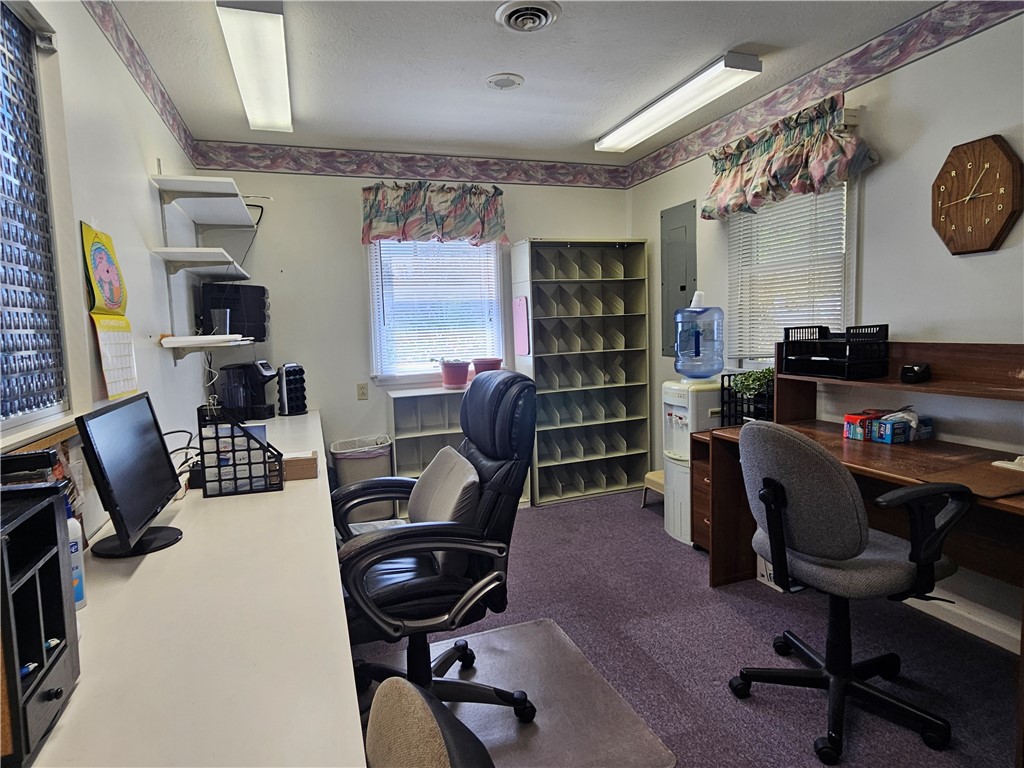 Prime brick office building offering approximately 1250 sq. ft. of well-designed professional space. Features include five exam/treatment rooms, two additional bonus rooms, a welcoming reception area, and a spacious waiting room. The property also includes one and a half baths for added convenience. Enjoy excellent accessibility with nine dedicated parking spaces and outstanding visibility in a high-traffic location. Currently configured as a chiropractor's office, this versatile space is ideal for medical, dental, insurance, accounting, or a variety of other professional uses. An exceptional opportunity to own a turnkey property in a highly desirable area!
